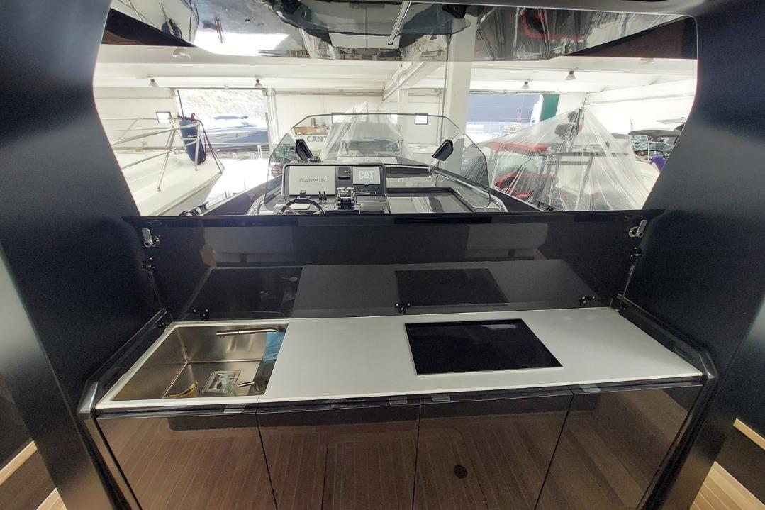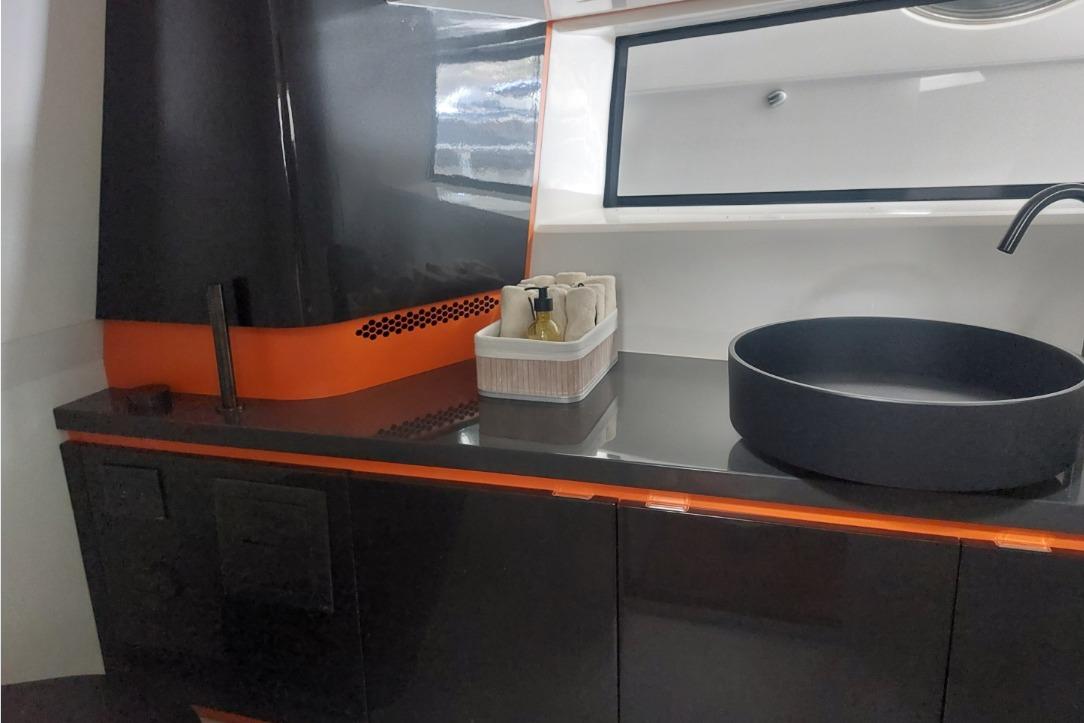 Il MAORI M46 è fedele all'eredità Maori ed è il prodotto di anni di sviluppo, con il risultato finale di un'imbarcazione ad alte prestazioni che unisce comfort e potenza. Alimentato da due motori inboard Cummins da 600 hp, ha una velocità massima impressionante di quasi 45 nodi, fantastica manovrabilità con propulsori di prua e di poppa e un pescaggio ridotto. I suoi spazi esterni sono estremamente confortevoli con aree lounge sia a prua che a poppa, un'area salotto a poppa completa di tavolo, cucina all'aperto con lavello/frigorifero/macchina per il ghiaccio e postazione di comando che può ospitare fino a 3 persone. Cuscini personalizzati si abbinano alla verniciatura grigia e al ponte in teak. Un grande hard top Bimini offre molta ombra. La passerella che si ripiega dalla spiaggetta di poppa funge da scala di accesso o da fantastico trampolino! L'interno presenta un bagno completo con doccia, WC e lavandino, area soggiorno e cuscino lounge che funge da letto, molto spazio in altezza, stoccaggio e ovviamente aria condizionata.