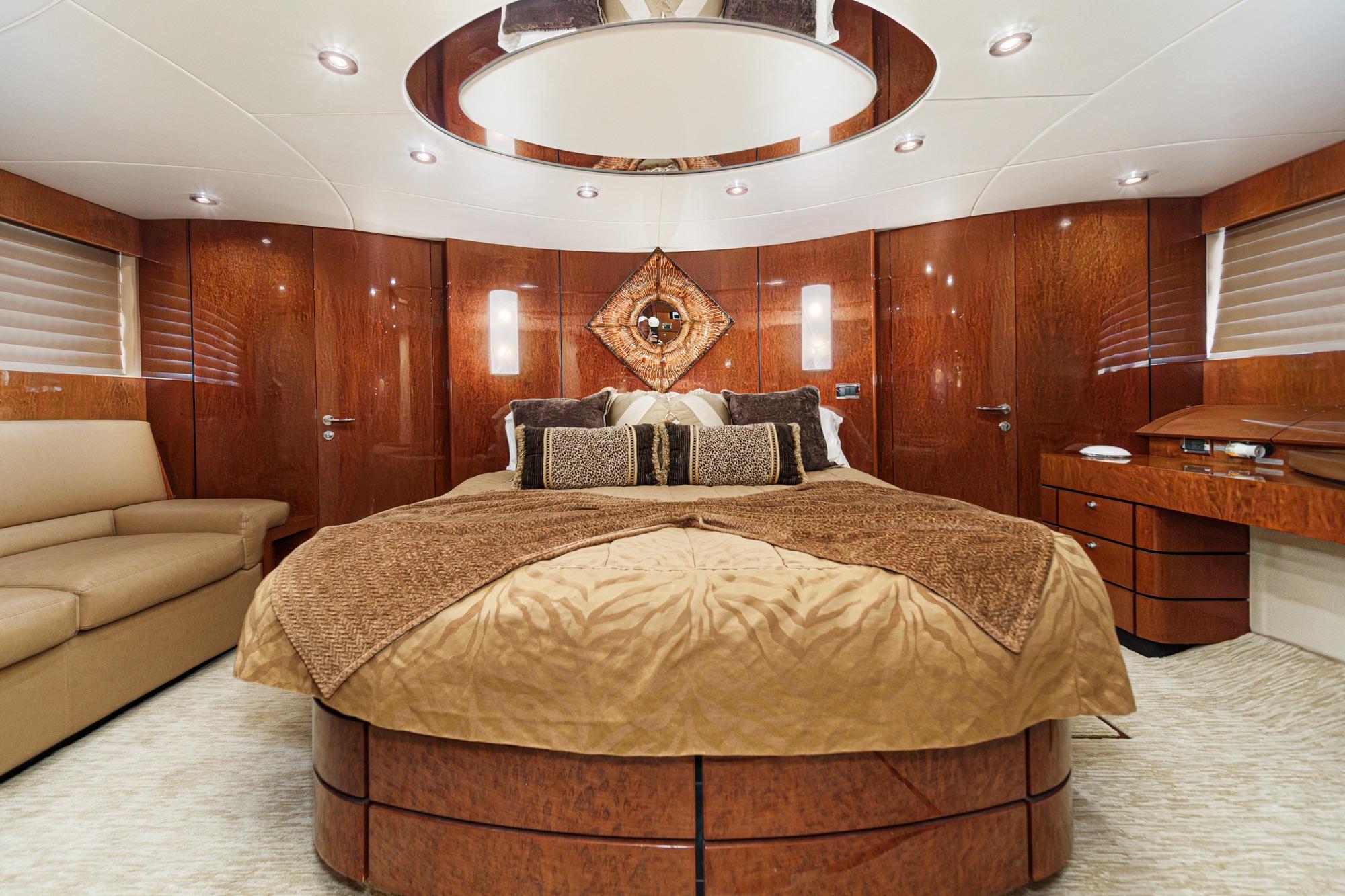 - Access by staircase from wheelhouse and by teak stairway from cockpit