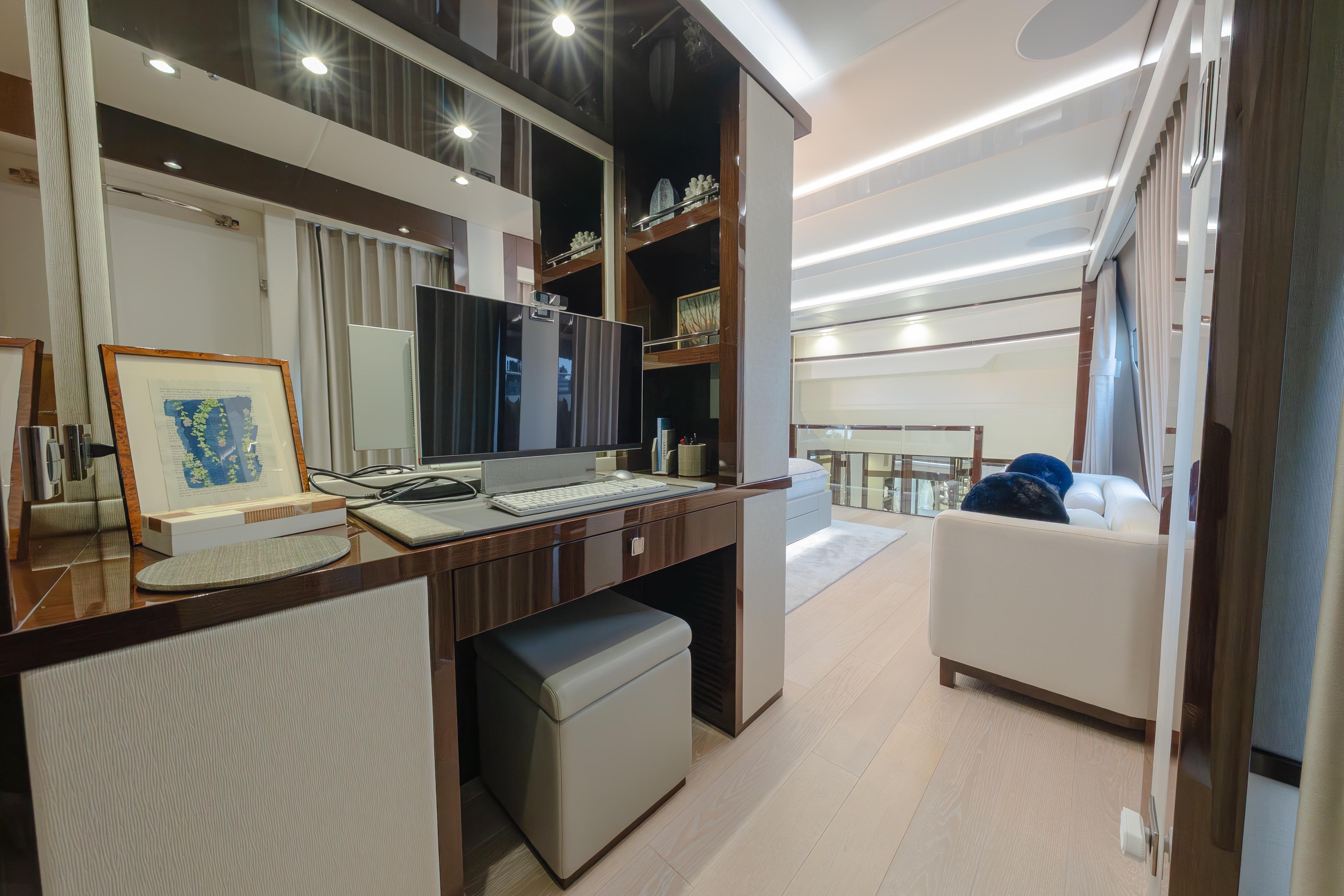 REUNION is a stunning example of the 2019 Sunseeker 95 Yacht, offering a perfect fusion of luxurious interior design and expansive exterior spaces. With thoughtful craftsmanship and modern amenities, this yacht distinguishes itself as a top-tier vessel in its class. The five-stateroom layout, including the rare feature of an on-deck master suite, delivers an exceptional blend of comfort, privacy, and convenience, an offering seldom found on yachts of this size. Every cabin is designed to meet the highest standards, ensuring an experience of refined elegance for owners and guests alike.