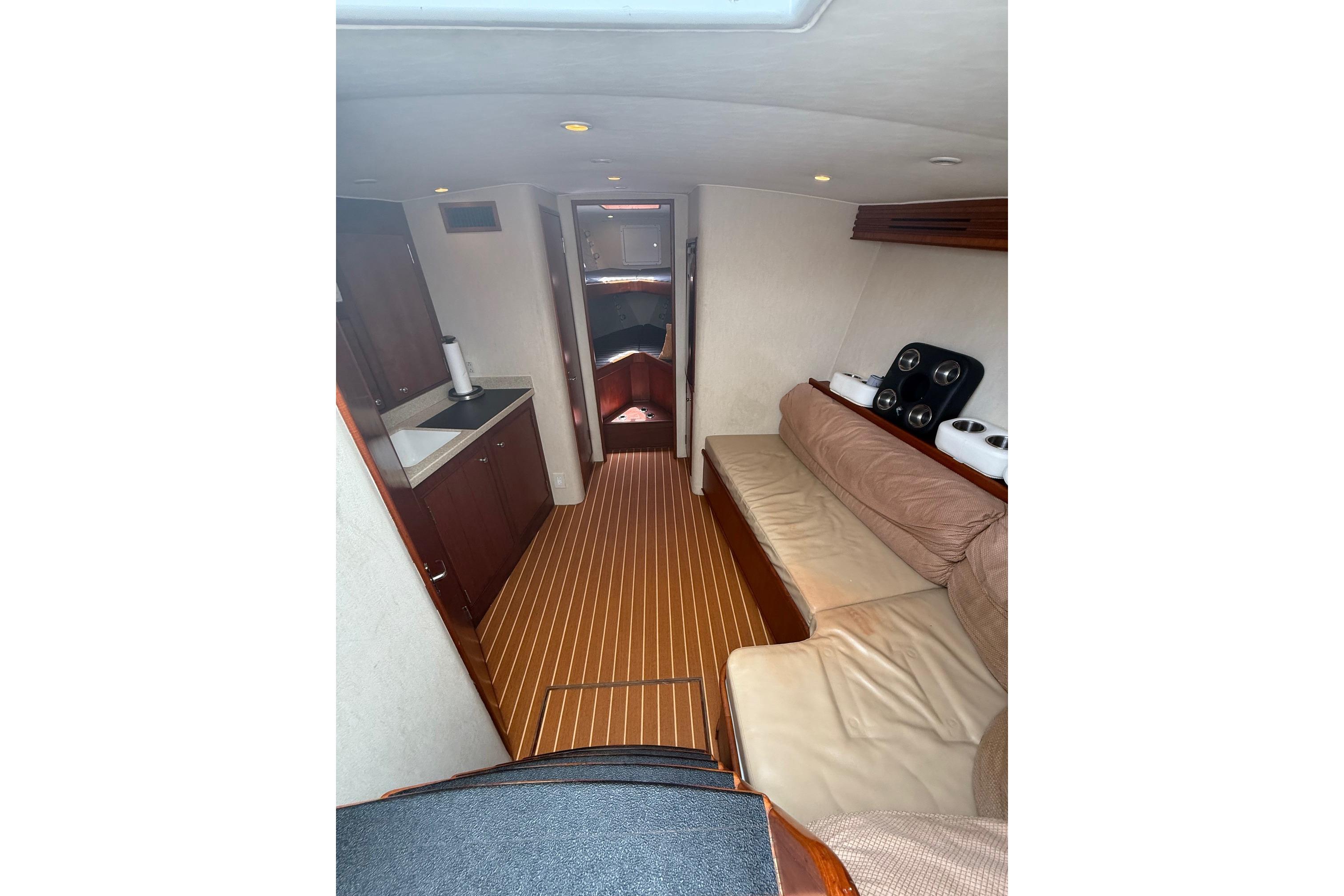 Accommodations are typical for a custom Carolina express with a small salon/ galley and head area. Forward are 4 bunks.