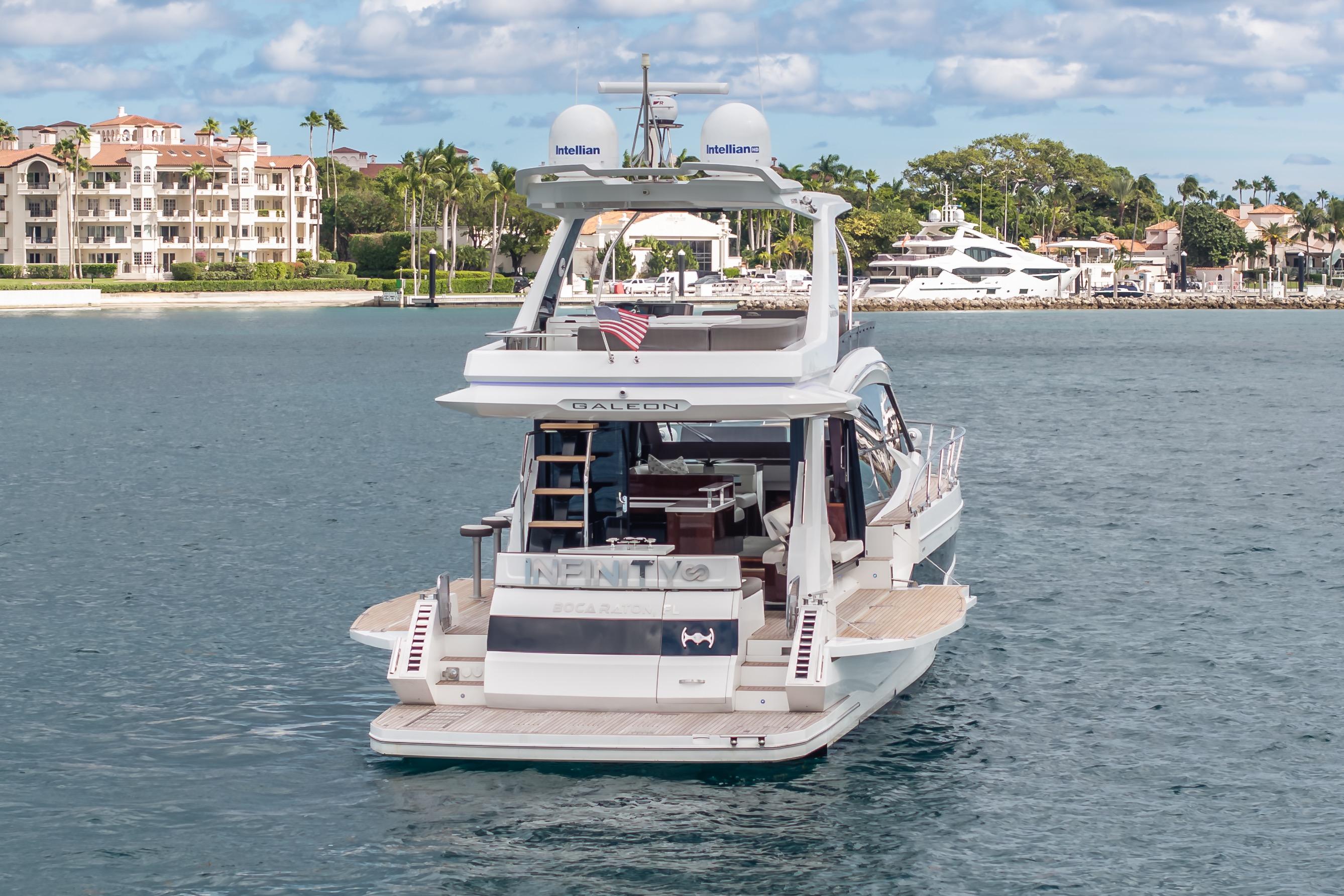 Step aboard INFINITY, an impeccably maintained 2020 Galeon 500 Fly which is a turnkey entertainer with every meaningful upgrade. She delivers show‑stopping presence and effortless memories with her signature Beach Mode that expands the cockpit to nearly a 20' social deck, recently refit upholstery and full teak decks, 28 underwater lights with starry‑night ceiling, laminated hardtop with electric soft roof and a hydraulic swim platform. Cruise in confidence and entertain in style aboard INFINITY.