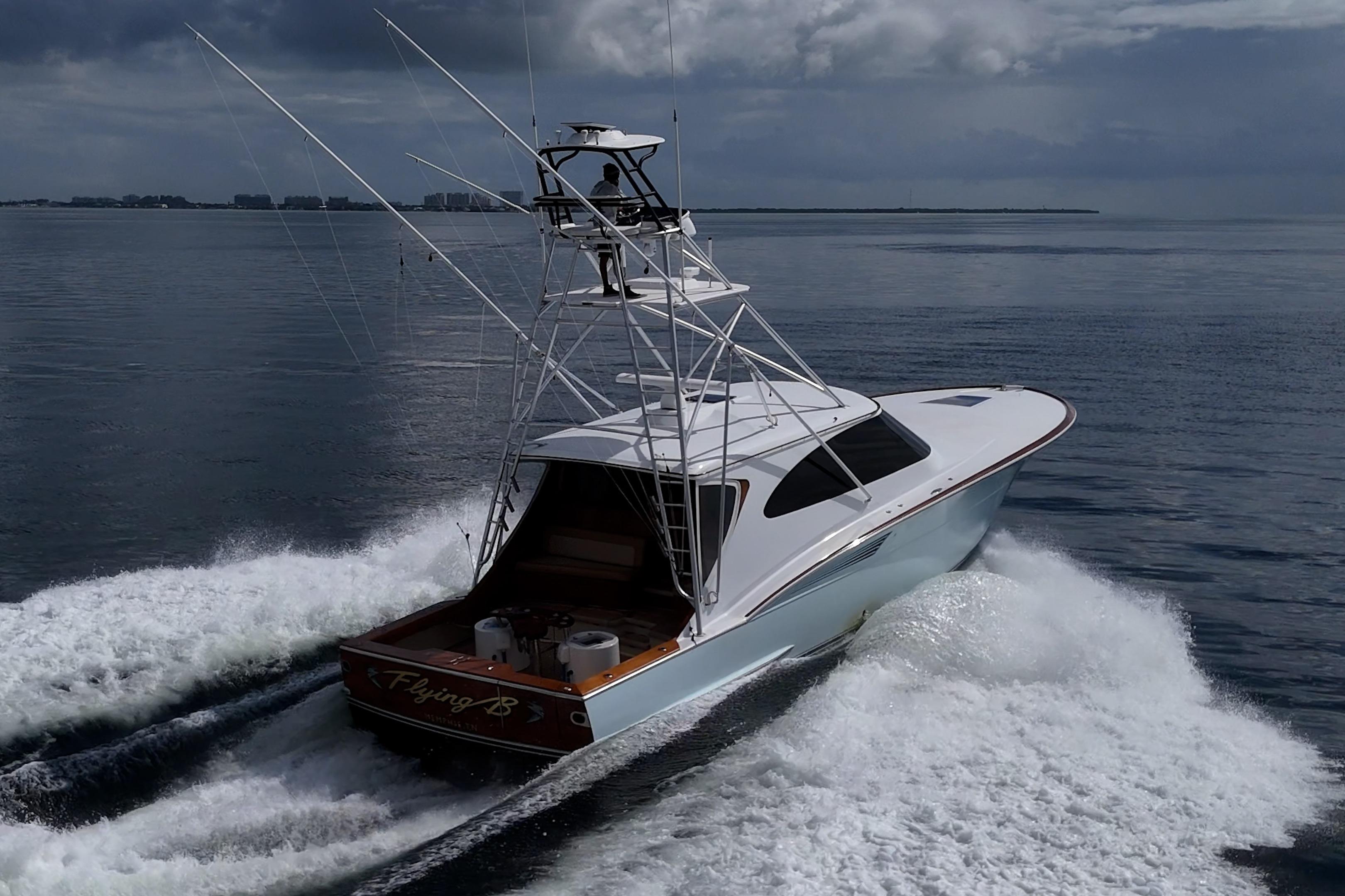 The “Flying B” is a 2017 54 ENX built by French Custom Yachts in Stuart, Florida, she offers a bridge/salon combo that is open to the action during the day while allowing an open social space for guests weather fishing or cruising. This boat was built to the highest standards in yacht construction today. The 54 ENX is fully epoxy composite with a “one piece” construction approach, the hull is infused with toughened epoxy and post cured, Monocoque construction provides the stiffest overall boat, Integral tank construction, cored stringer system and honey combed walls and soles for weight savings are just a few of her attributes. “Flying B“ is powered by reliable CAT C-18 Acerts featuring a SeaKeeper 9 Gyro 2024, and custom hydraulic carbon fiber outriggers. Every system on the boat is state of the art and engineered for easy operation and minimal maintenance allowing for an owner operator to run the boat easily.