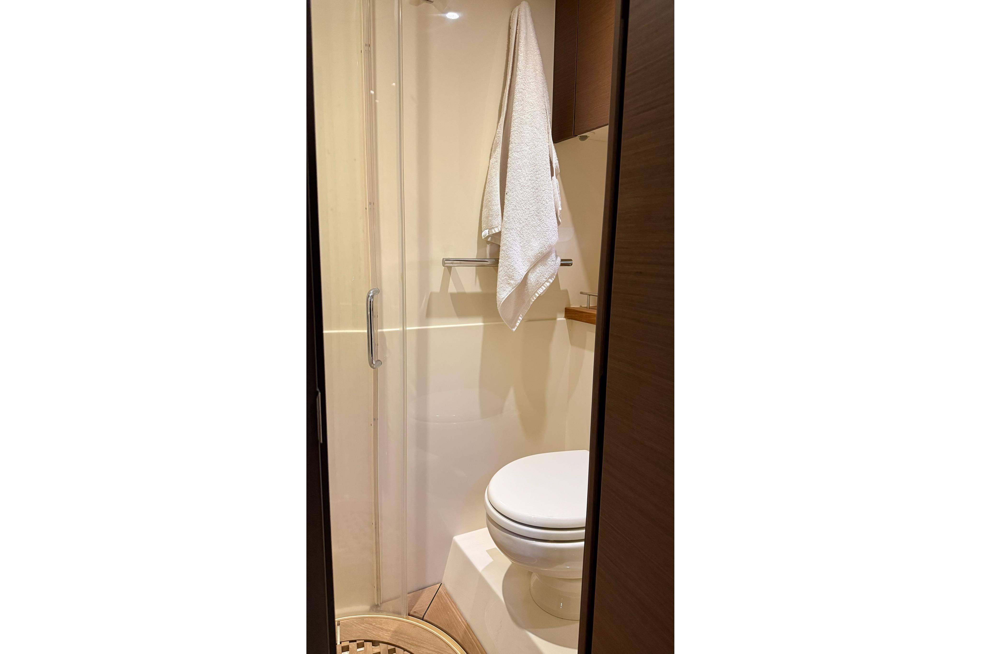 - Two-staterooms: full-beam aft master with en-suite head/shower, forward VIP or guest cabin, each thoughtfully designed for comfort and privacy