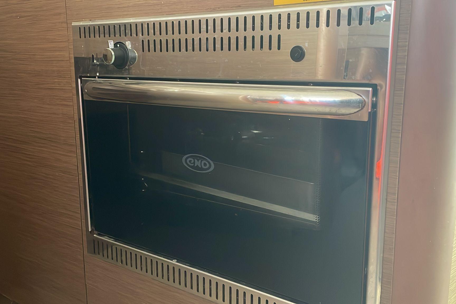 - Low storage cupboards with shelves, access from the salon; High storage cupboards