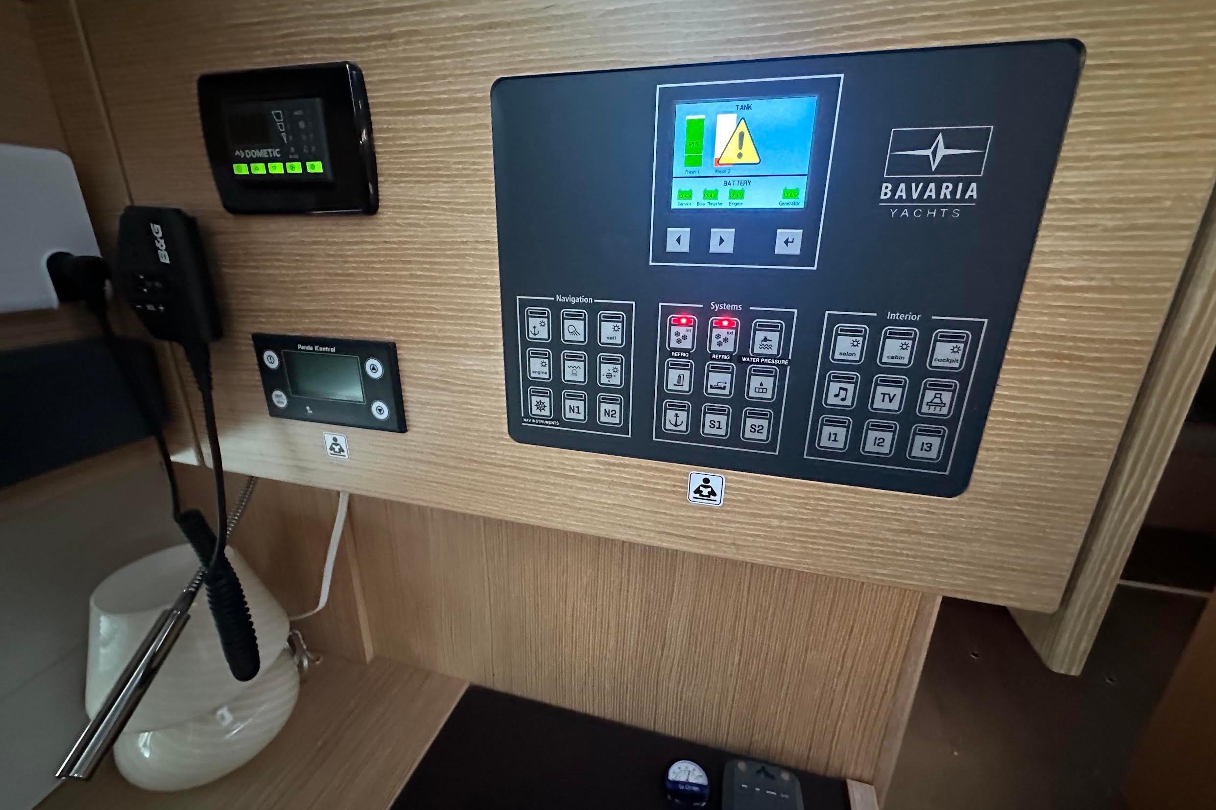 This 2022 Bavaria C45 performance cruiser has the spacious and desirable three-stateroom, two-head interior layout. She's very easy to sail single or short-hand since all controls are led to electric winches at the two helm stations. Some additional items that stand out on her inventory include: Electric drop-down transom swim step w/dinghy garage. Built in sink, grill and fridge in the stern area (never used) Roller furling main and jib. Self tacking jib system. Twin wheels as well as twin rudders for more control when it's windy and the yacht is healing. Custom bedding. Generator. Bow thruster. Bow sprit for Code 0 and asso spinnakers. Heat and air-conditioning. State-of-the-art technology, a nice Fusion entertainment system, and an abundance of B&G electronics.