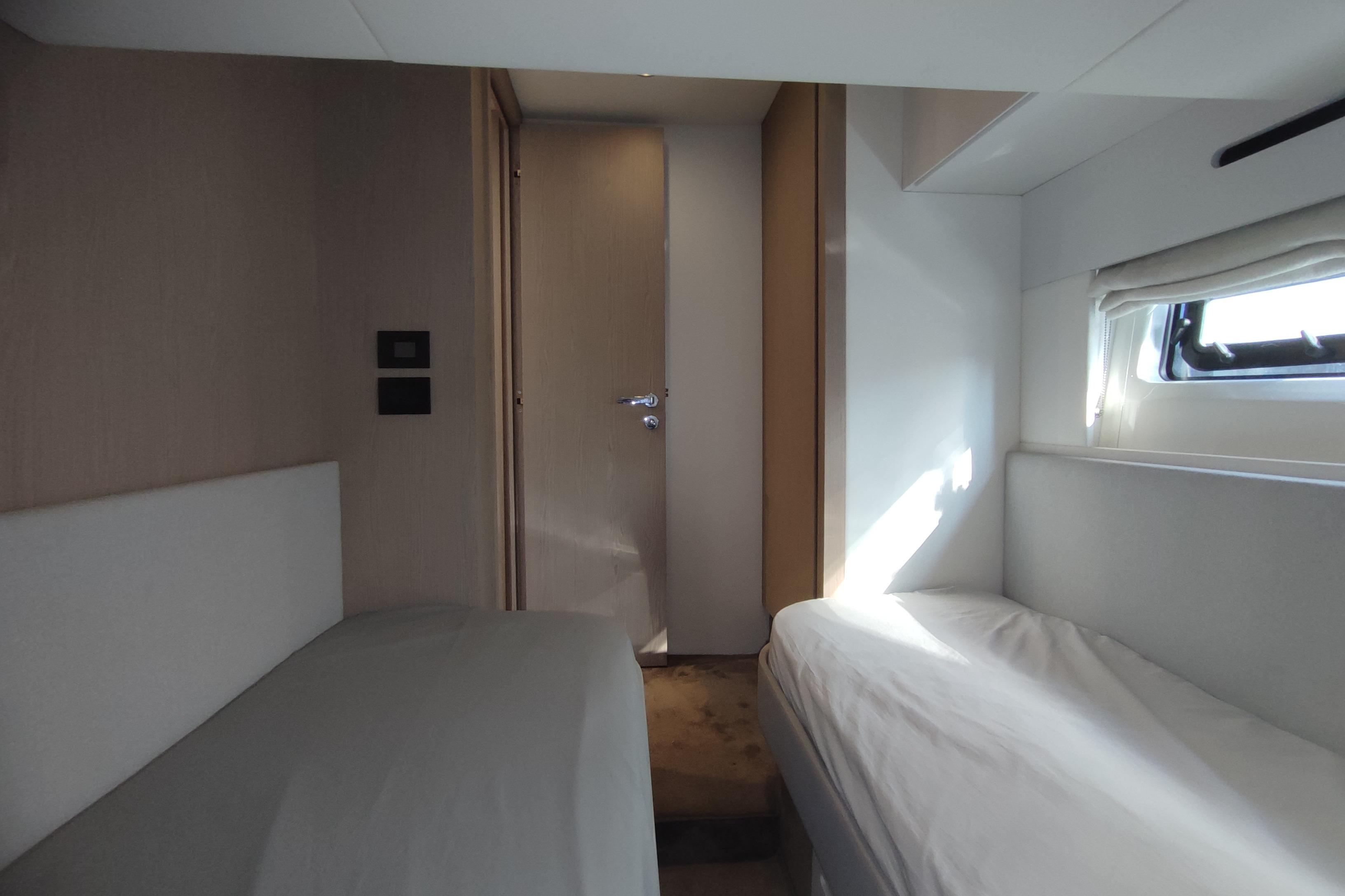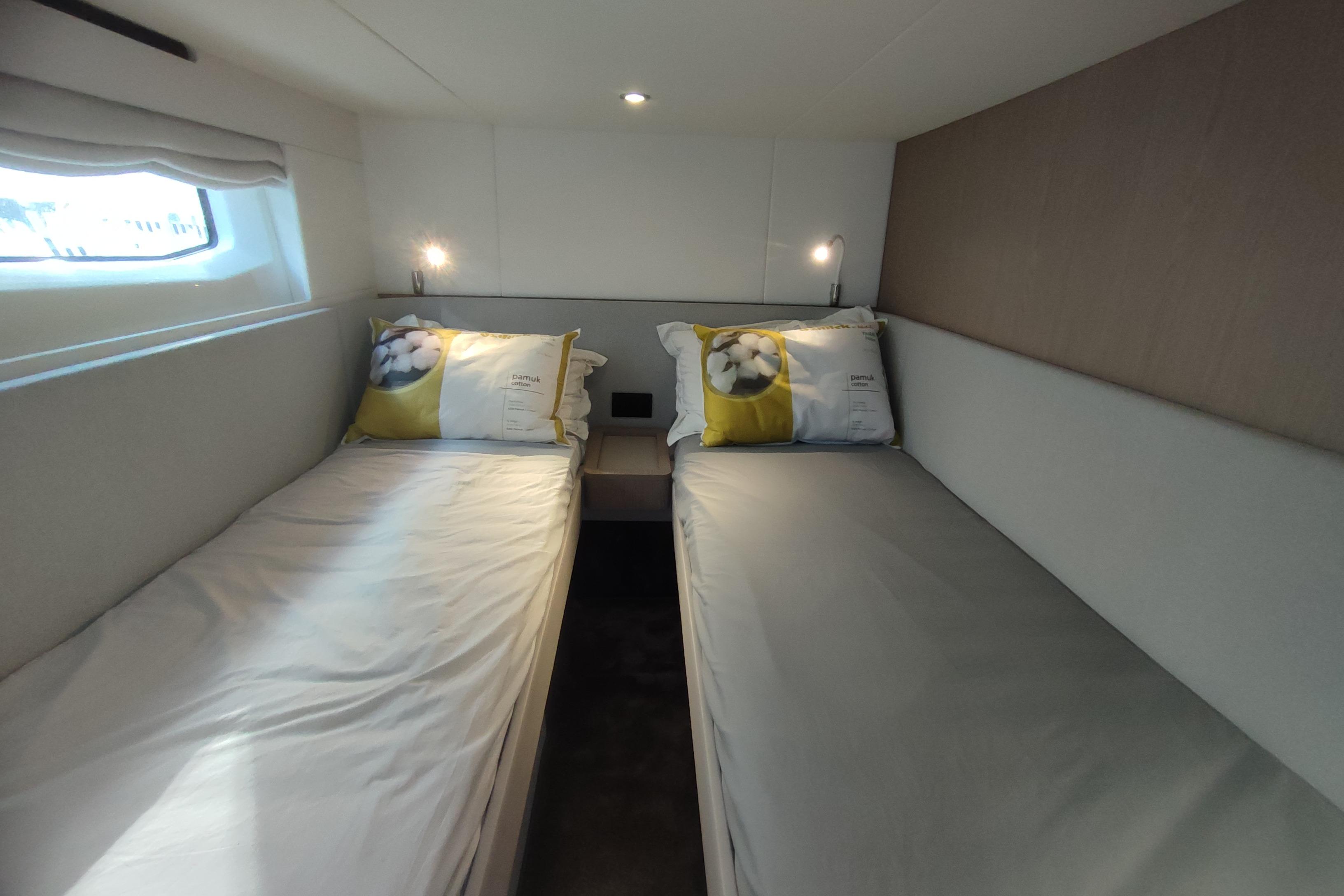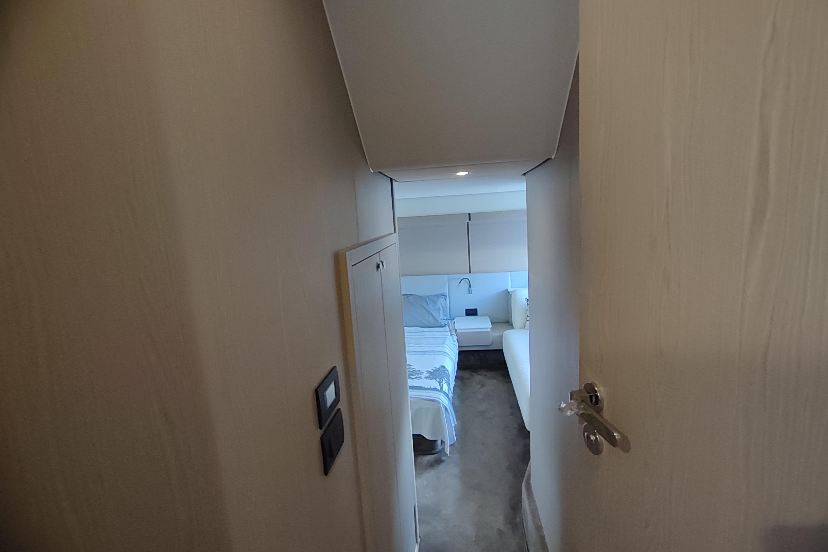 Accommodations include three guest cabins and two bathrooms, along with a separate crew cabin with private head. The master and VIP suites offer refined comfort, featuring blackout blinds, mosquito screens, and ensuite bathrooms with bidet-function toilets.
