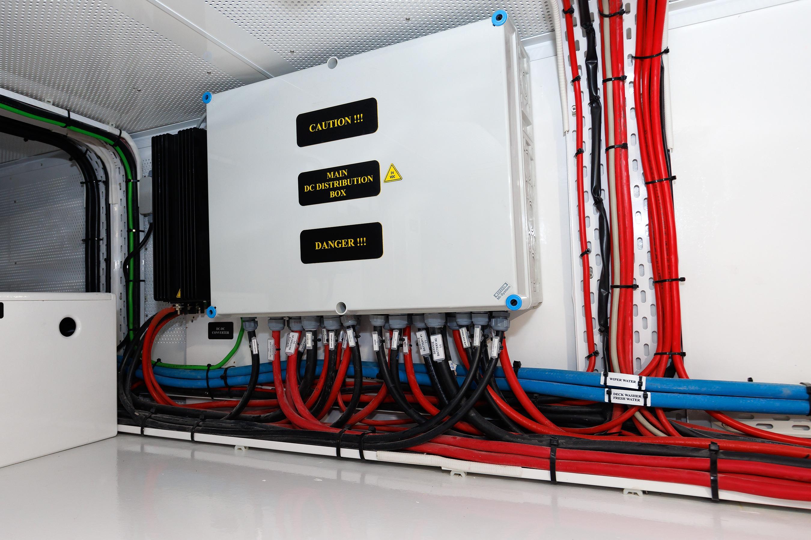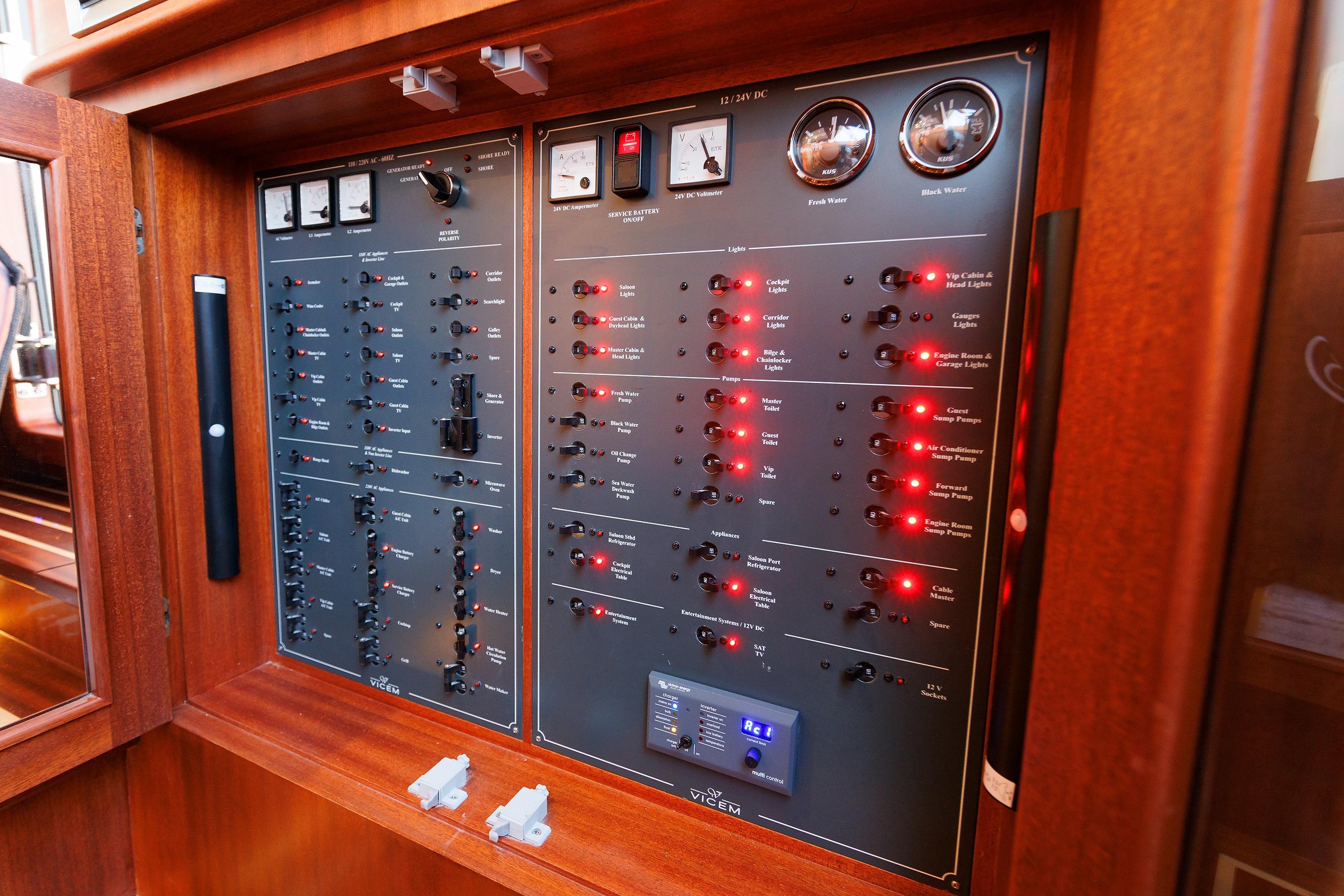 A unique design feature on MONA LISA is her lower deck configeration. A lower foyer, with the custom mosaic, provide the much needed storage often not found on this level as well as built-in separate Bosch washer and dryer units. The eye level electric panel is outboard of the staircase, making it much easier to access than other designs.