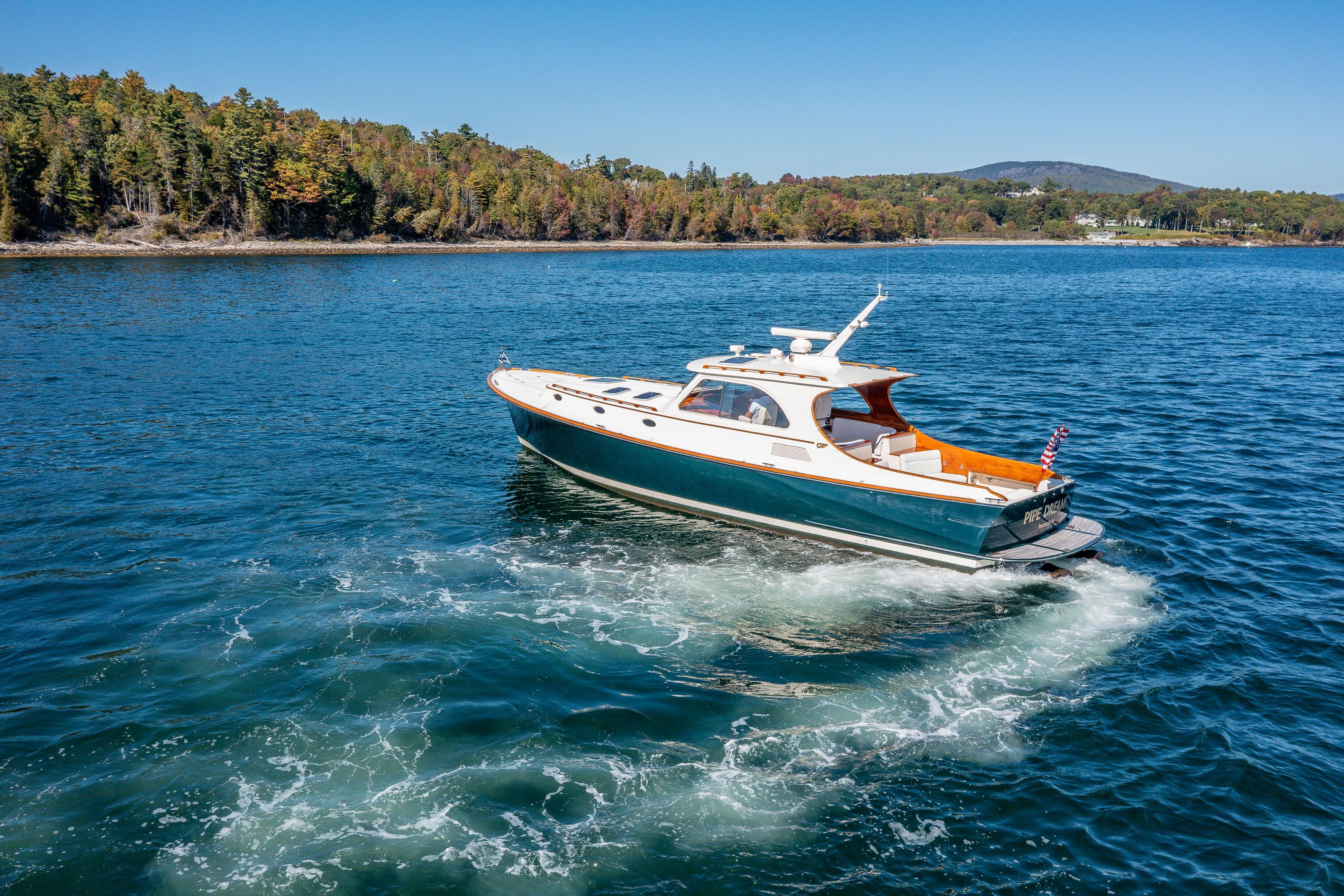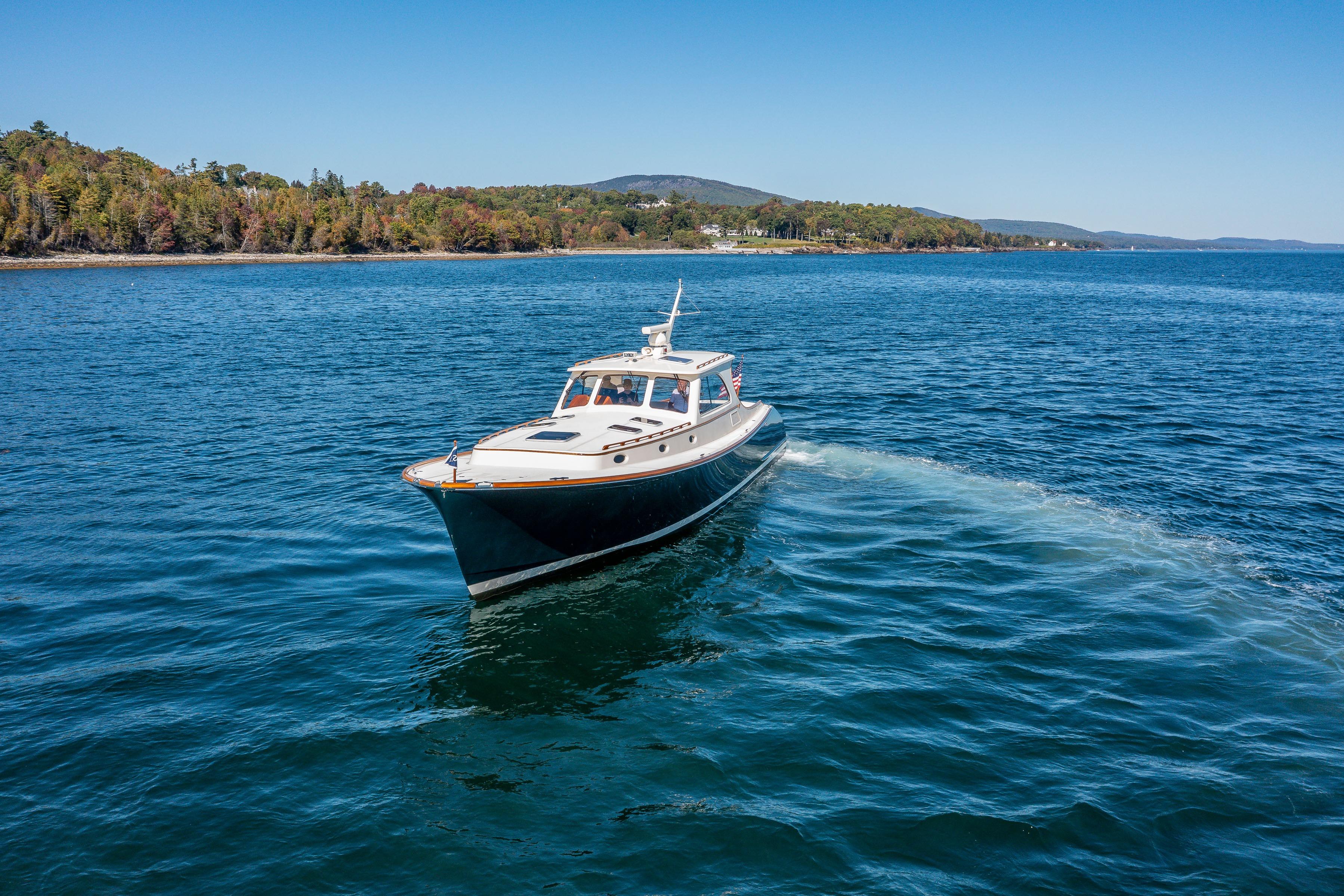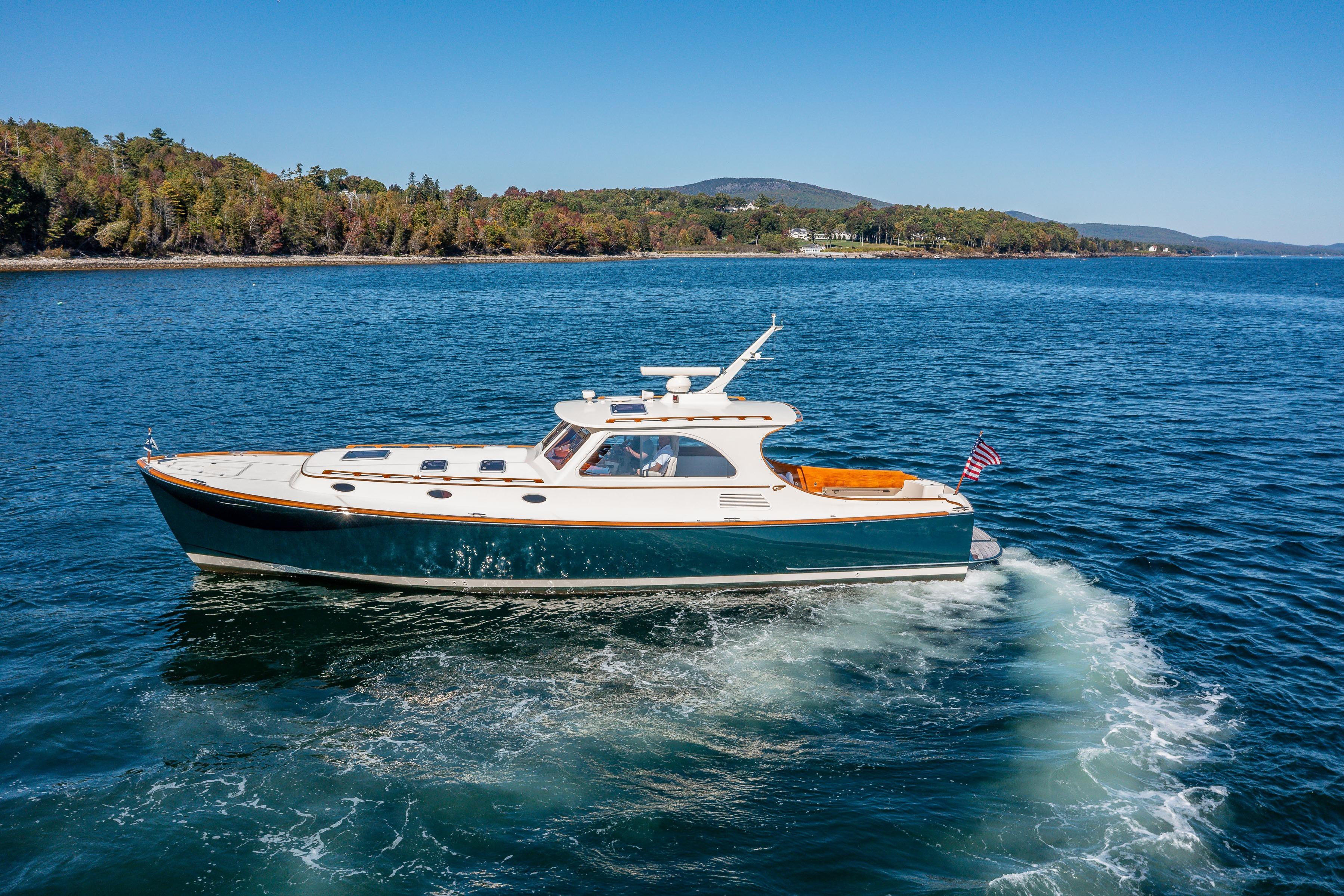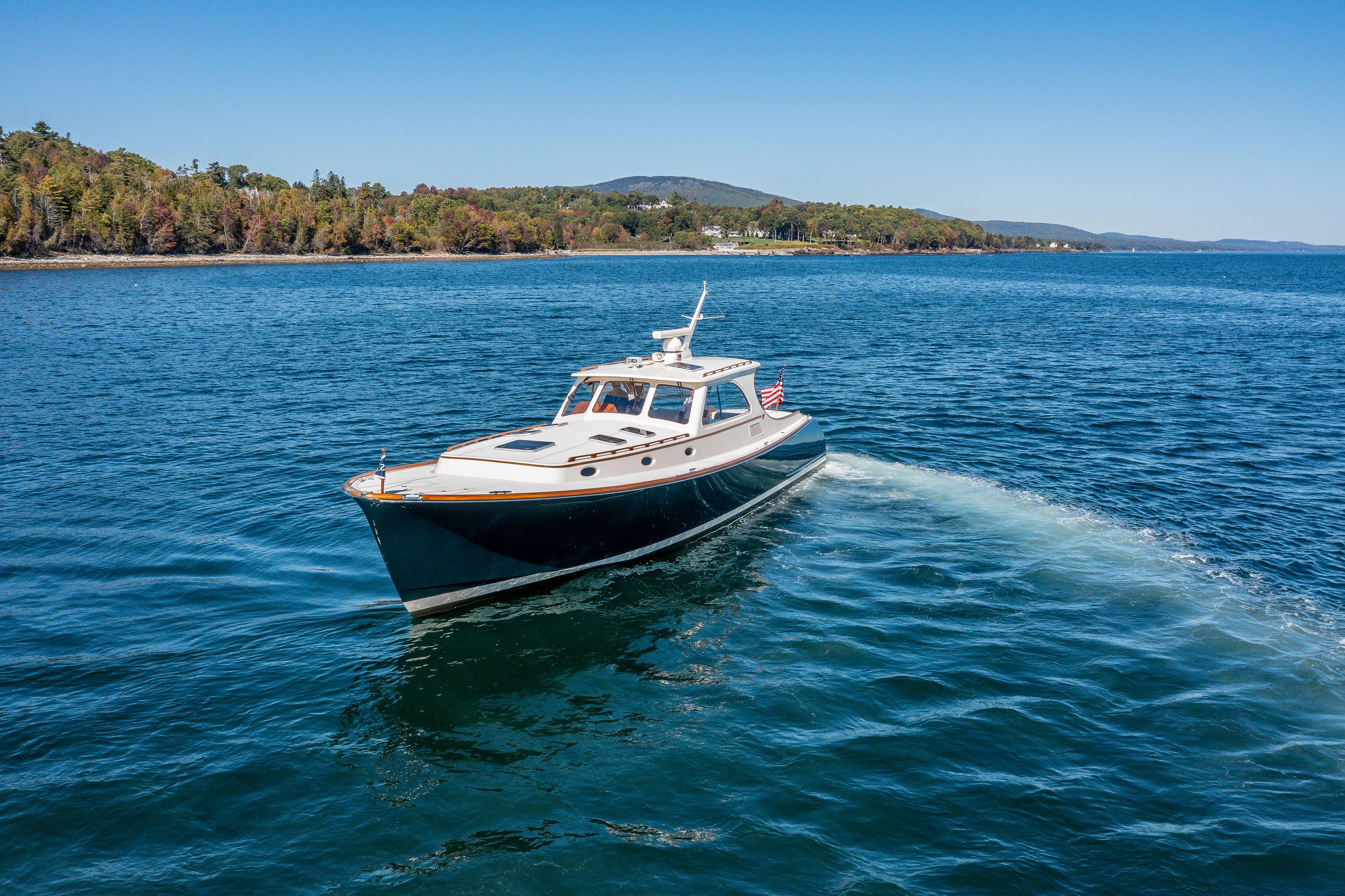 - Tapered, varnished teak toe rail with Hinckley profile and varnished teak trim.
