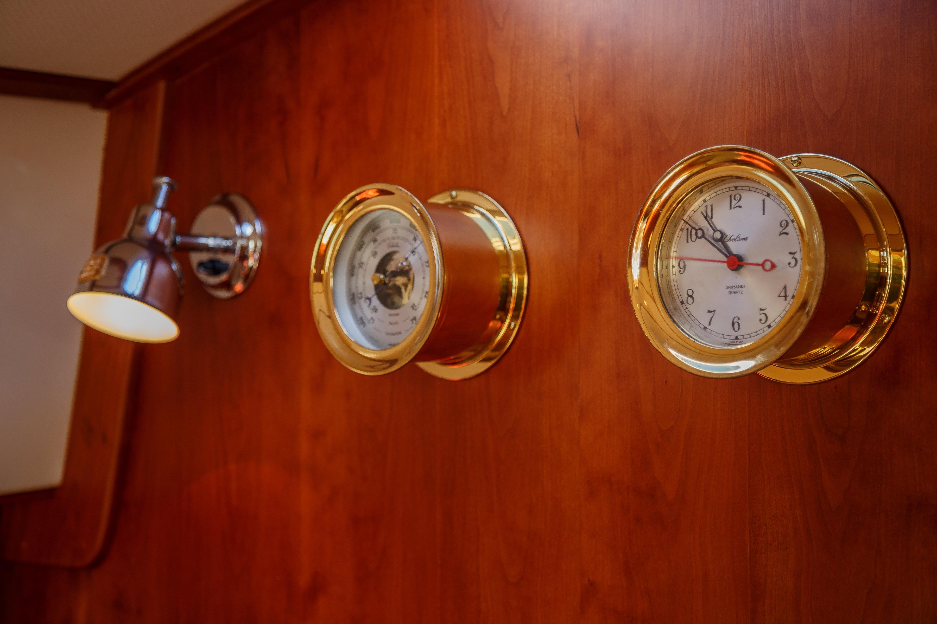 - 40,000 BTU Marineair reverse-cycle air conditioner services pilothouse, galley, dinettes, head, shower, and forward cabin.