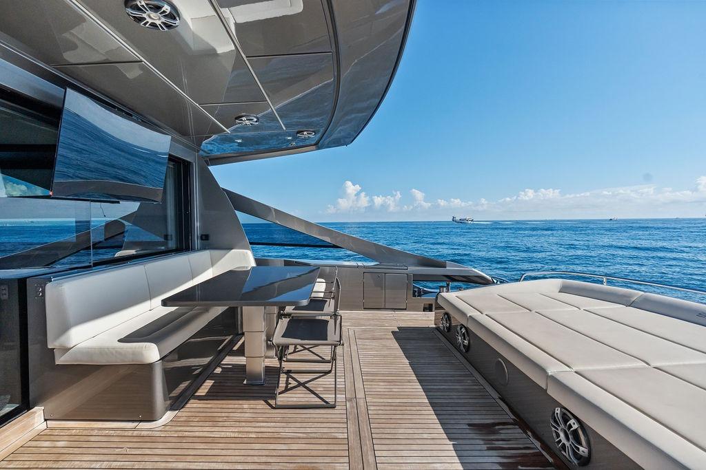 Outside, expansive sunpads, a panoramic sunroof, and a seamless connection to the sea create the ultimate open-air experience. The hydraulic swim platform transforms into a private beach club, making every destination feel like your own personal retreat.