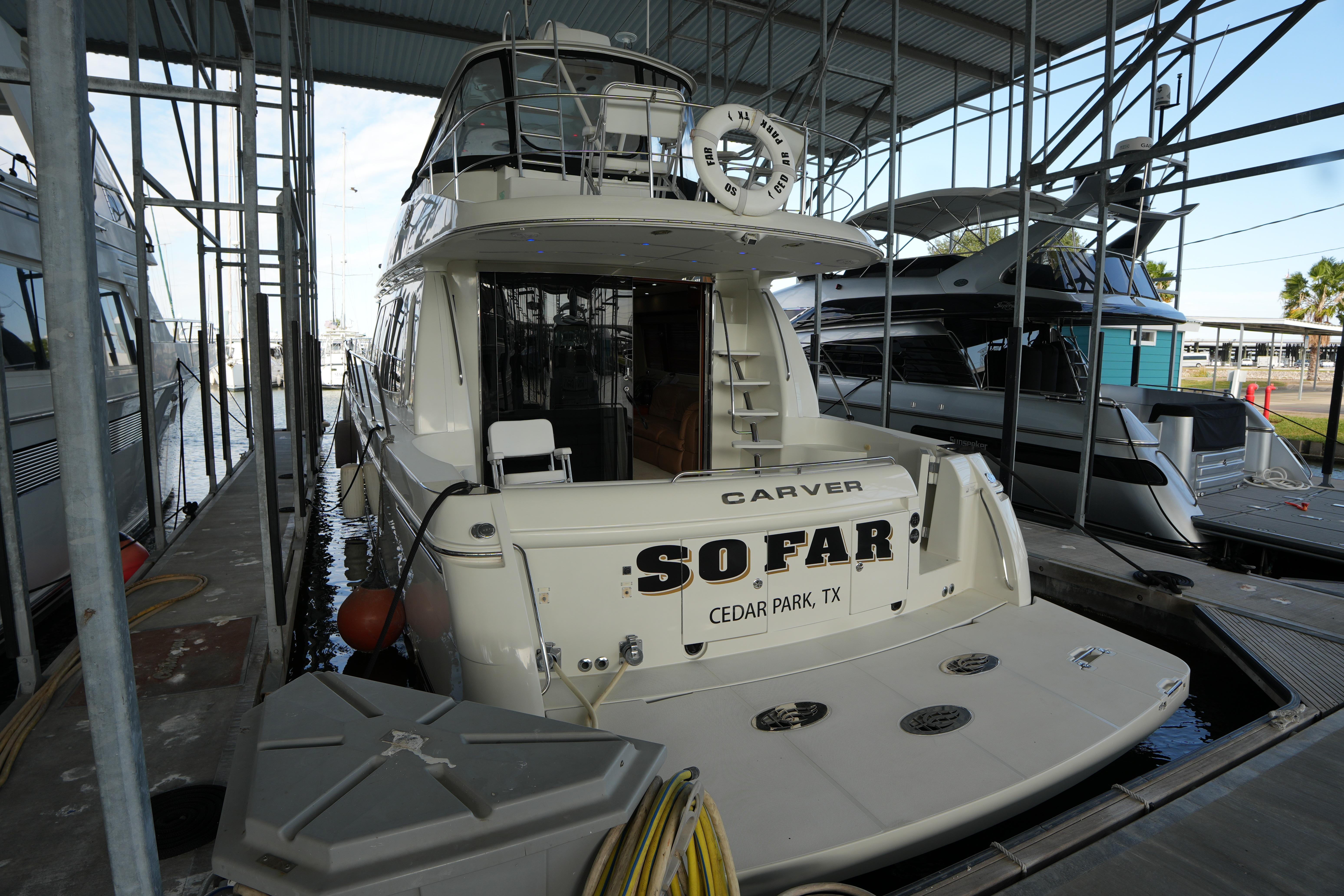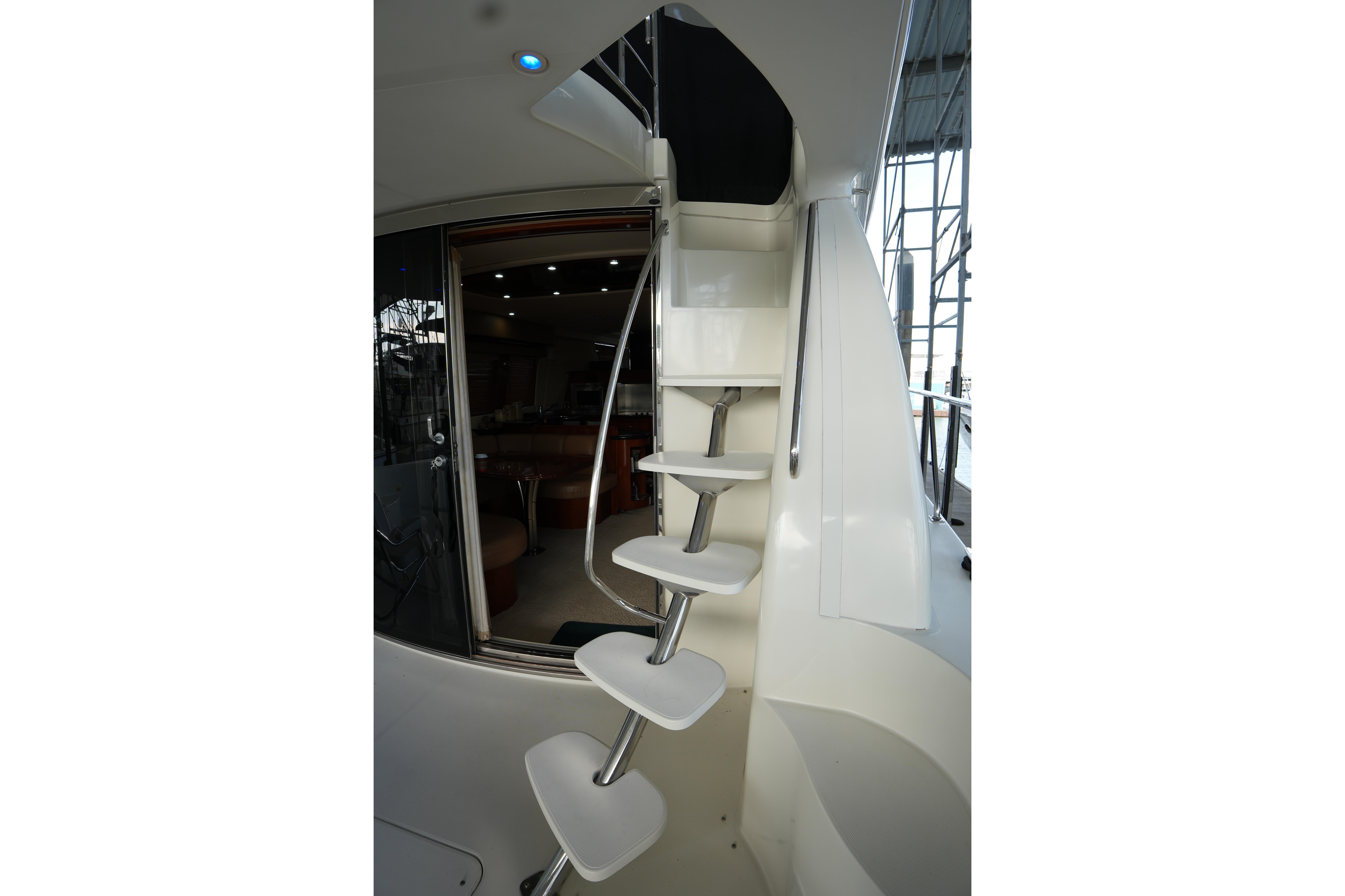 - Aft deck with stainless steel hand railing, throw ring, American flag, and stairs to flybridge hard top