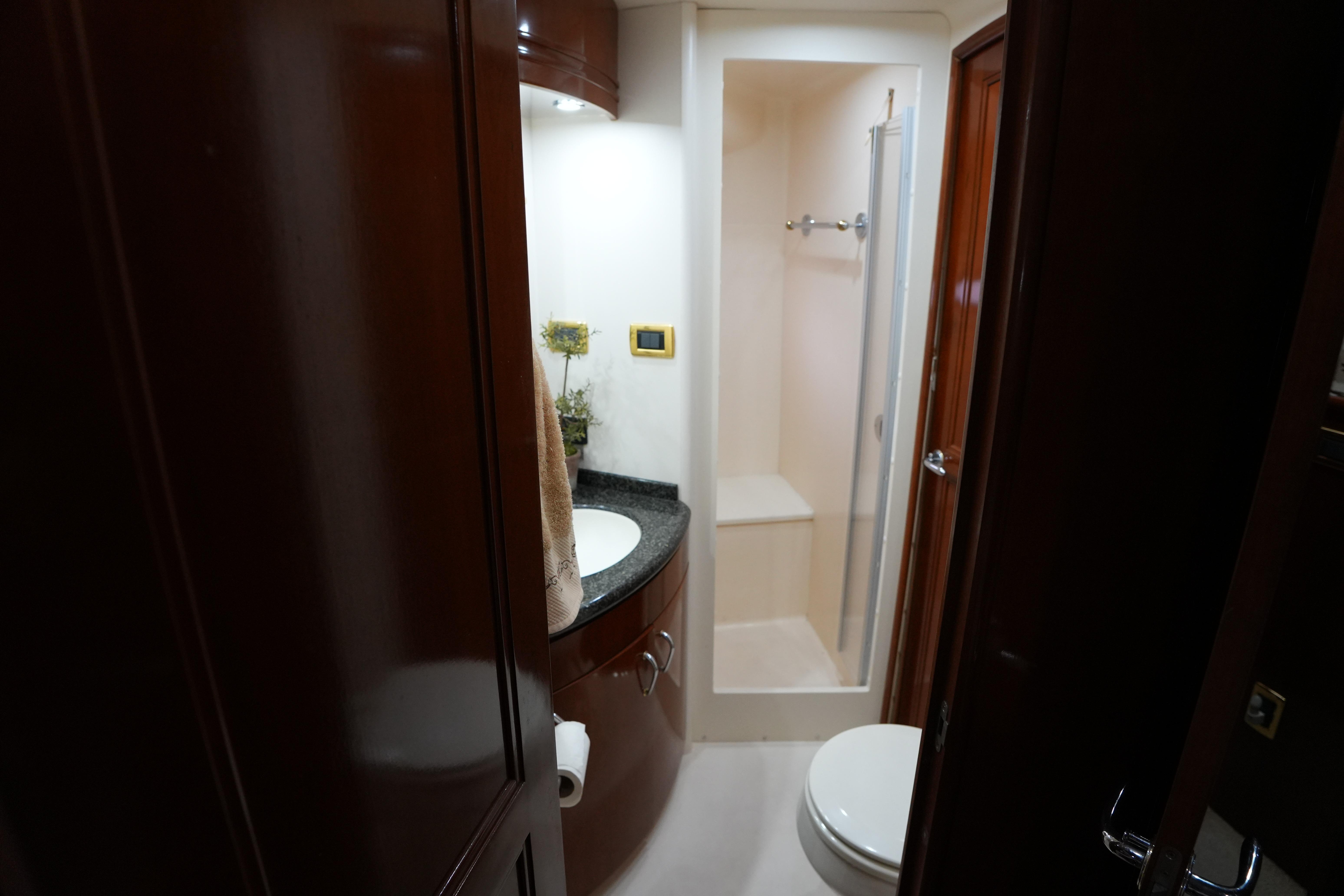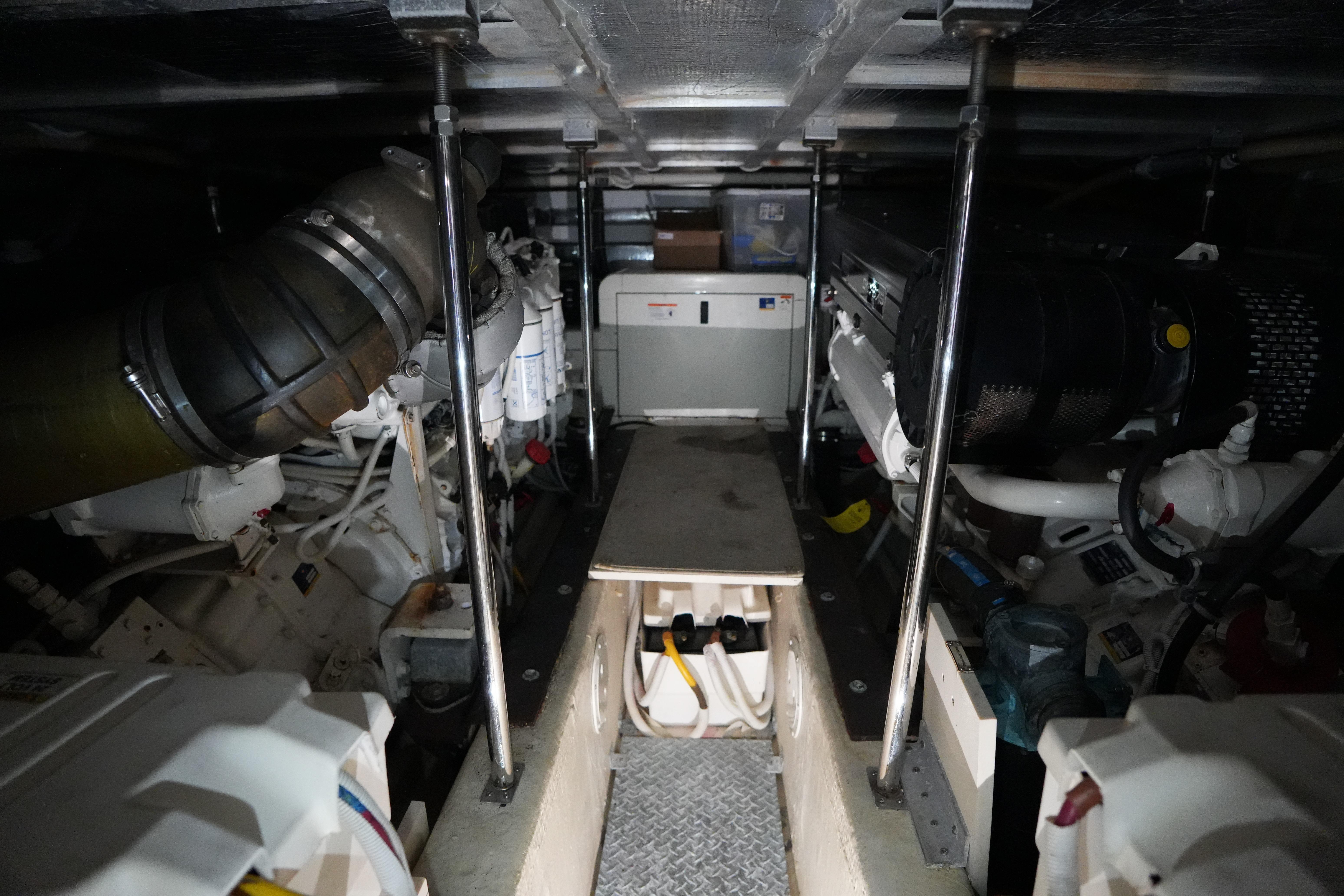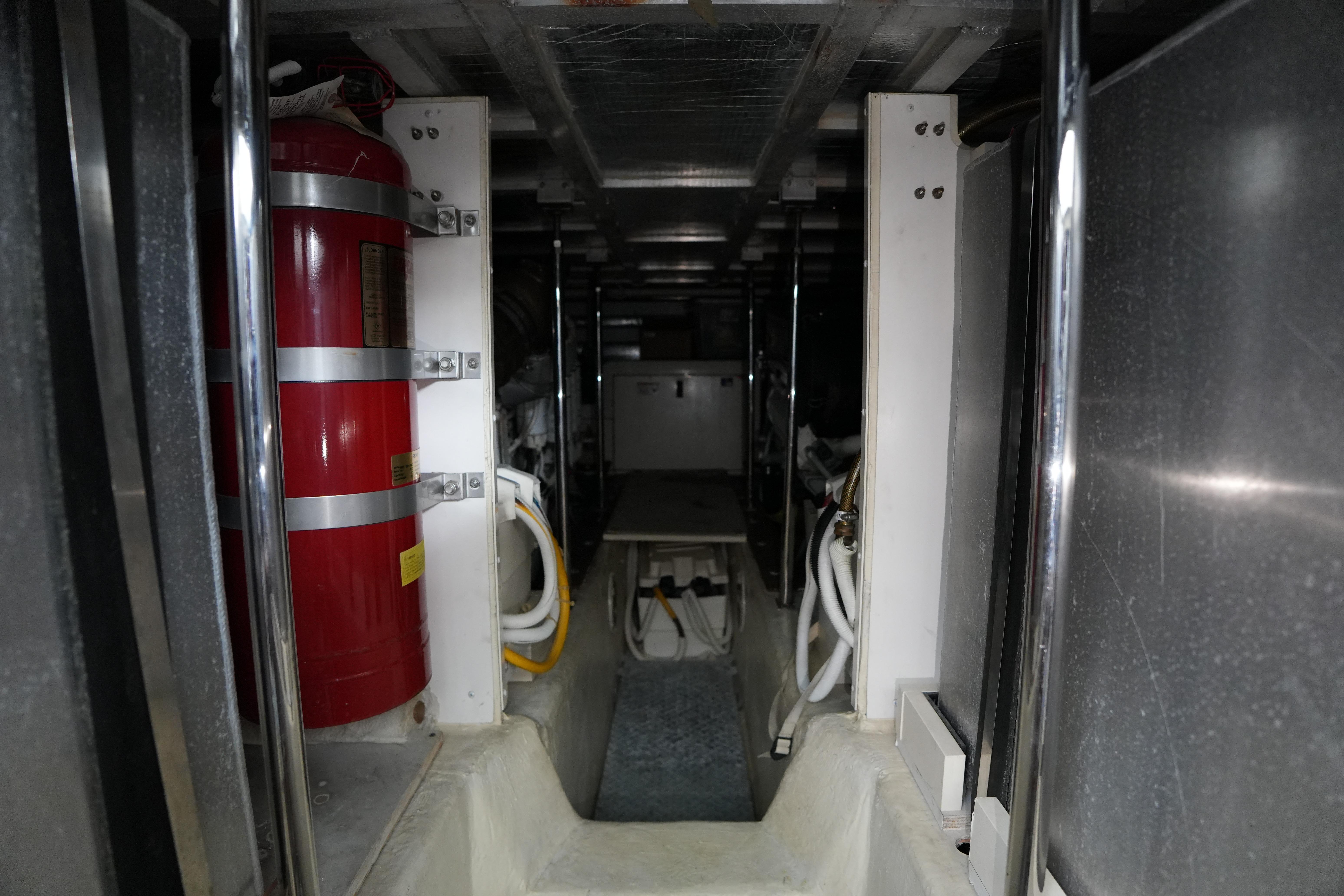- Large swim platform with 50amp service, washdown station, storage lockers, stainless steel swim ladder, and door to cockpit