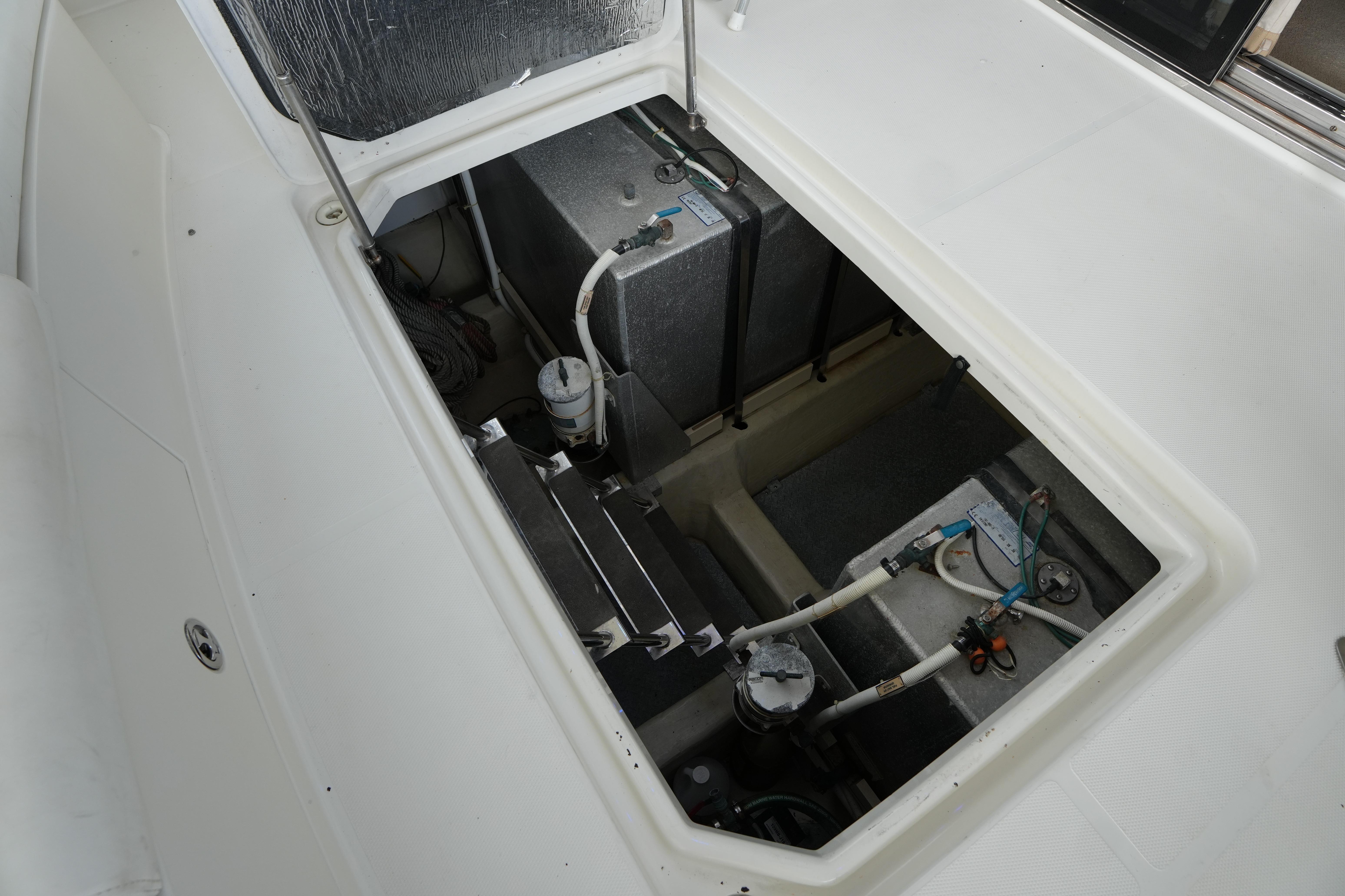 - Hardtop and full isinglass enclosure, overhead lighting, and deck hatch