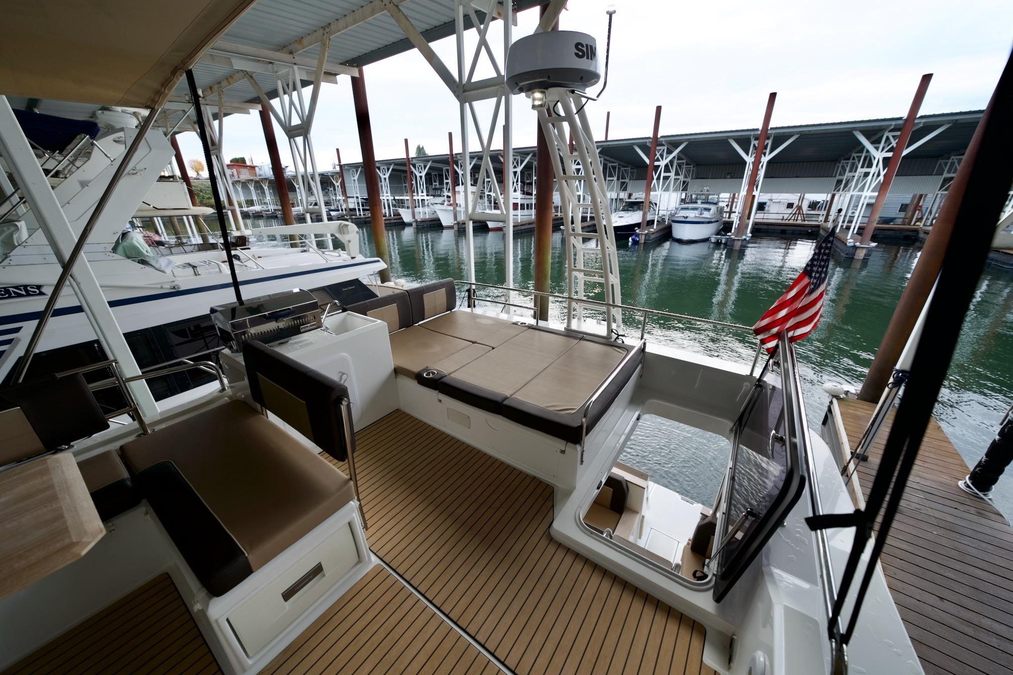 Why the Delphia D12 FlyLounge Will Redefine Your Journeys:- Spacious, Sun-Kissed Flybridge Haven: Command the waves from your private upper deck lounge, perfect for sunset cocktails or al fresco dining. With panoramic views and intuitive helm controls, every voyage feels like a first-class retreat.