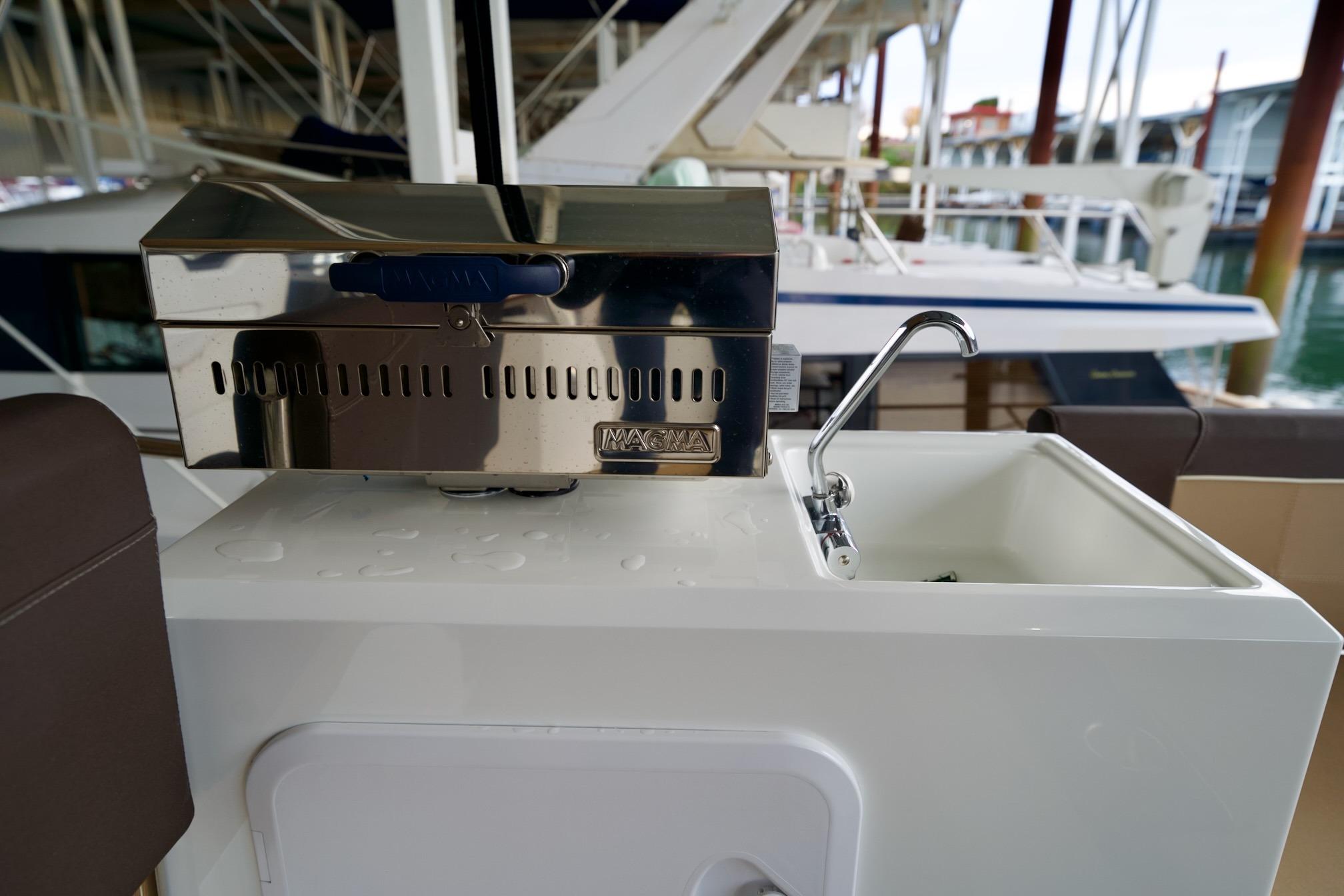 - Luxurious Interiors for Seamless Living: Step into a bright, airy salon flooded with natural light through expansive plexiglass windows. Choose from customizable premium materials and colors to match your vision. 2 cabins accommodate 4 guests in plush berths, with 1.90m headroom ensuring everyone moves freely. The fully equipped galley – featuring a 3-burner cooktop, oven, and ample storage – makes meal prep a joy, even underway.