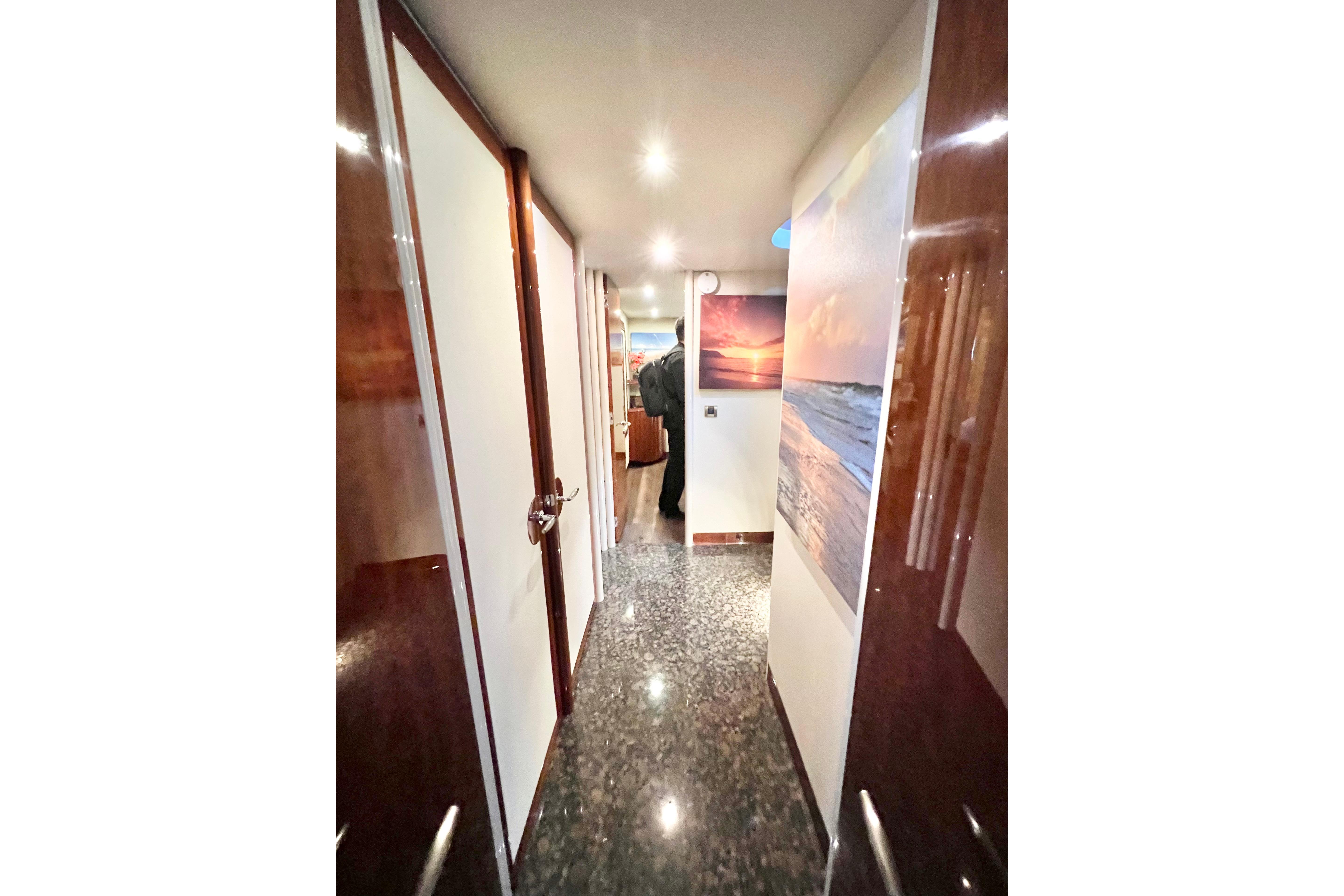 - Stairway to main salon has polished stainless steel handrail
