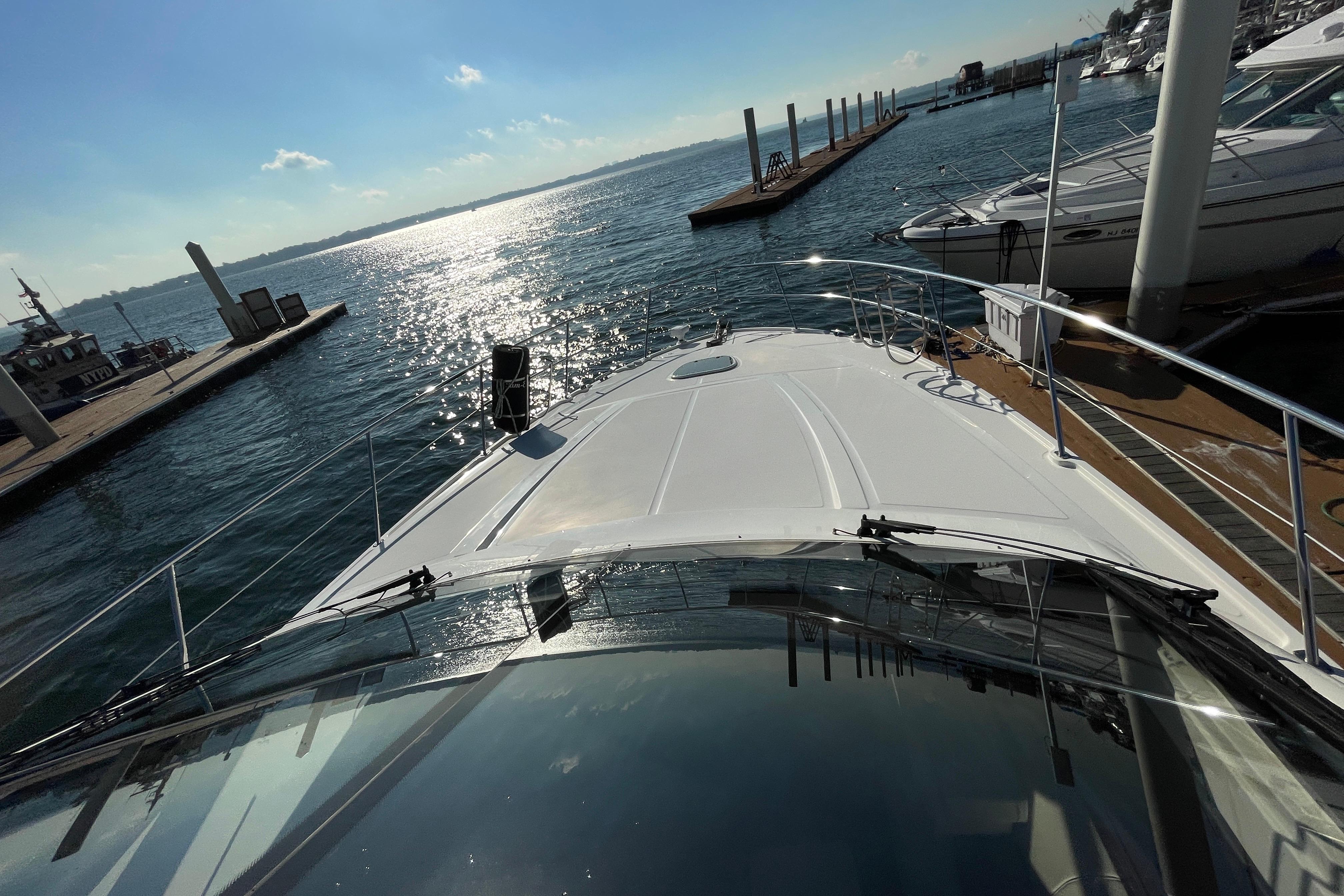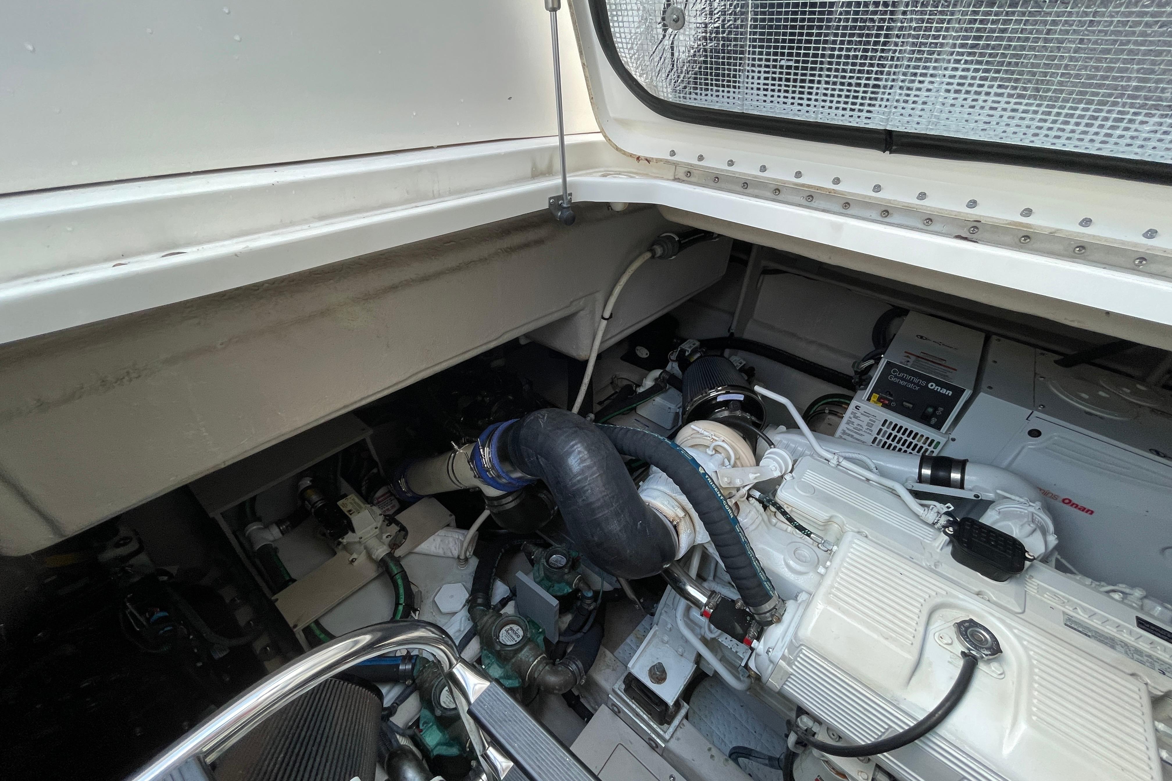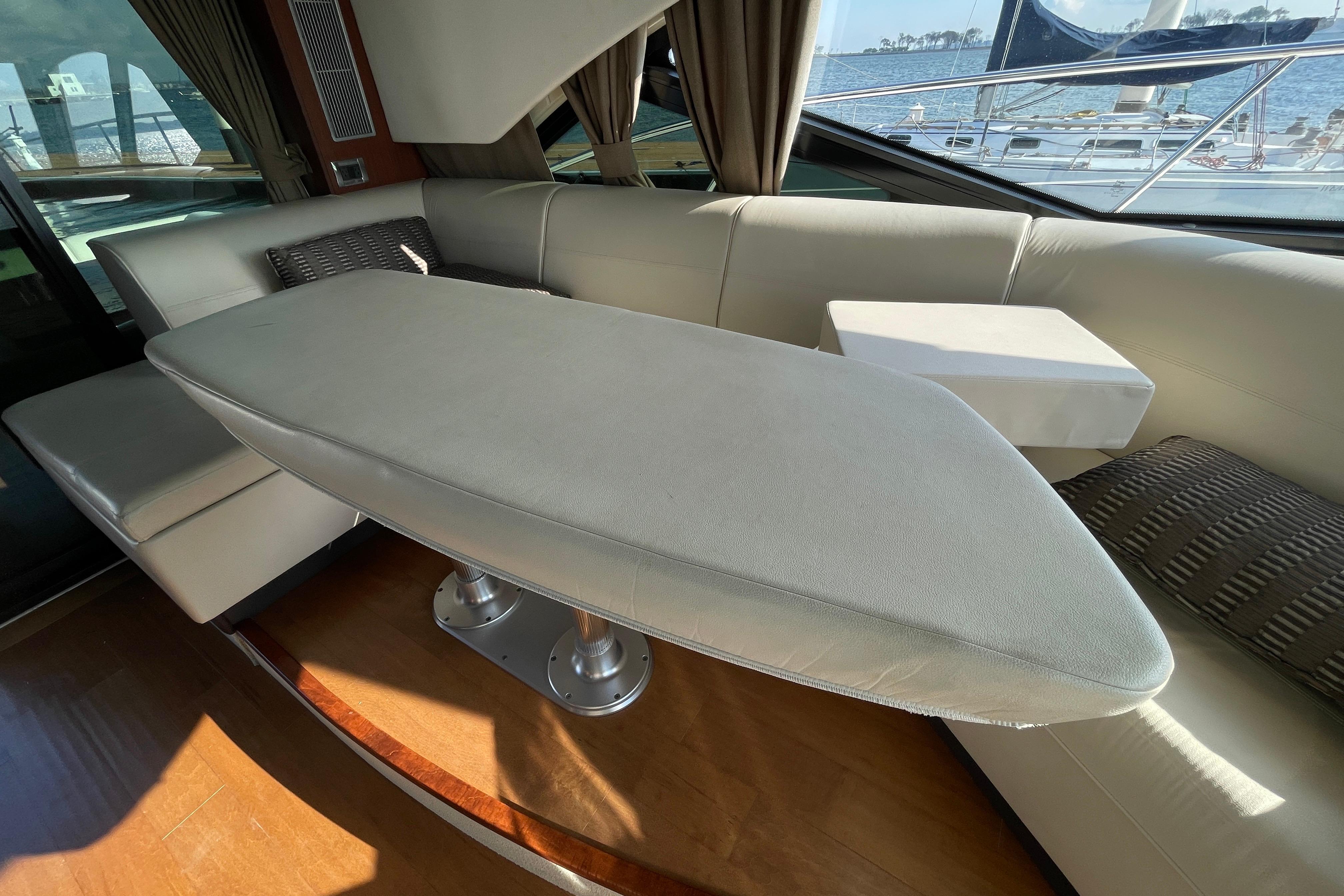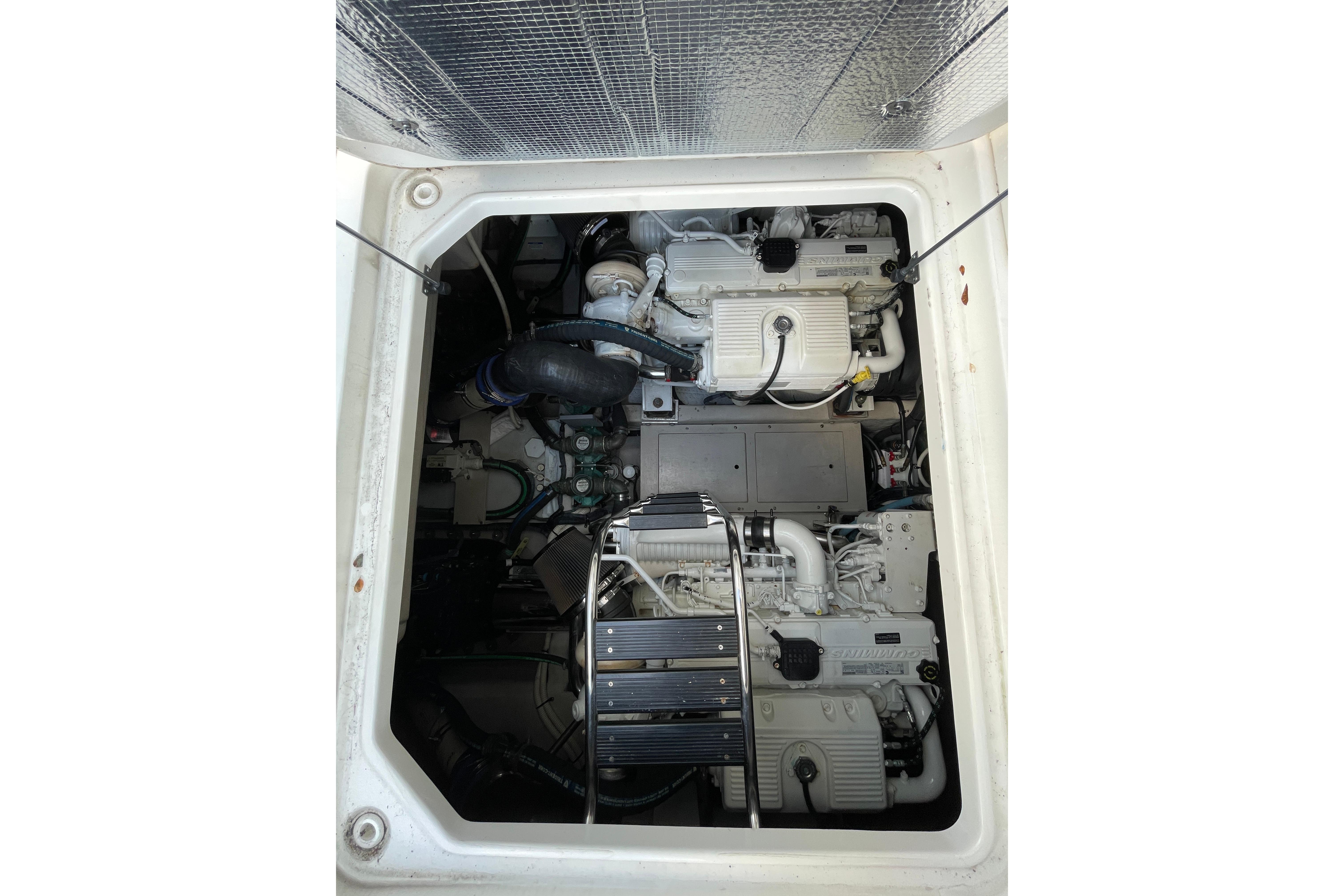 The twin Cummins diesels deliver a confident and efficient ride, while the advanced Raymarine electronics package — featuring GPS, radar, and autopilot — ensures smooth navigation. Two stern-facing video cameras make docking effortless, even in tight quarters. Every aspect of this vessel reflects thoughtful ownership and professional upkeep.