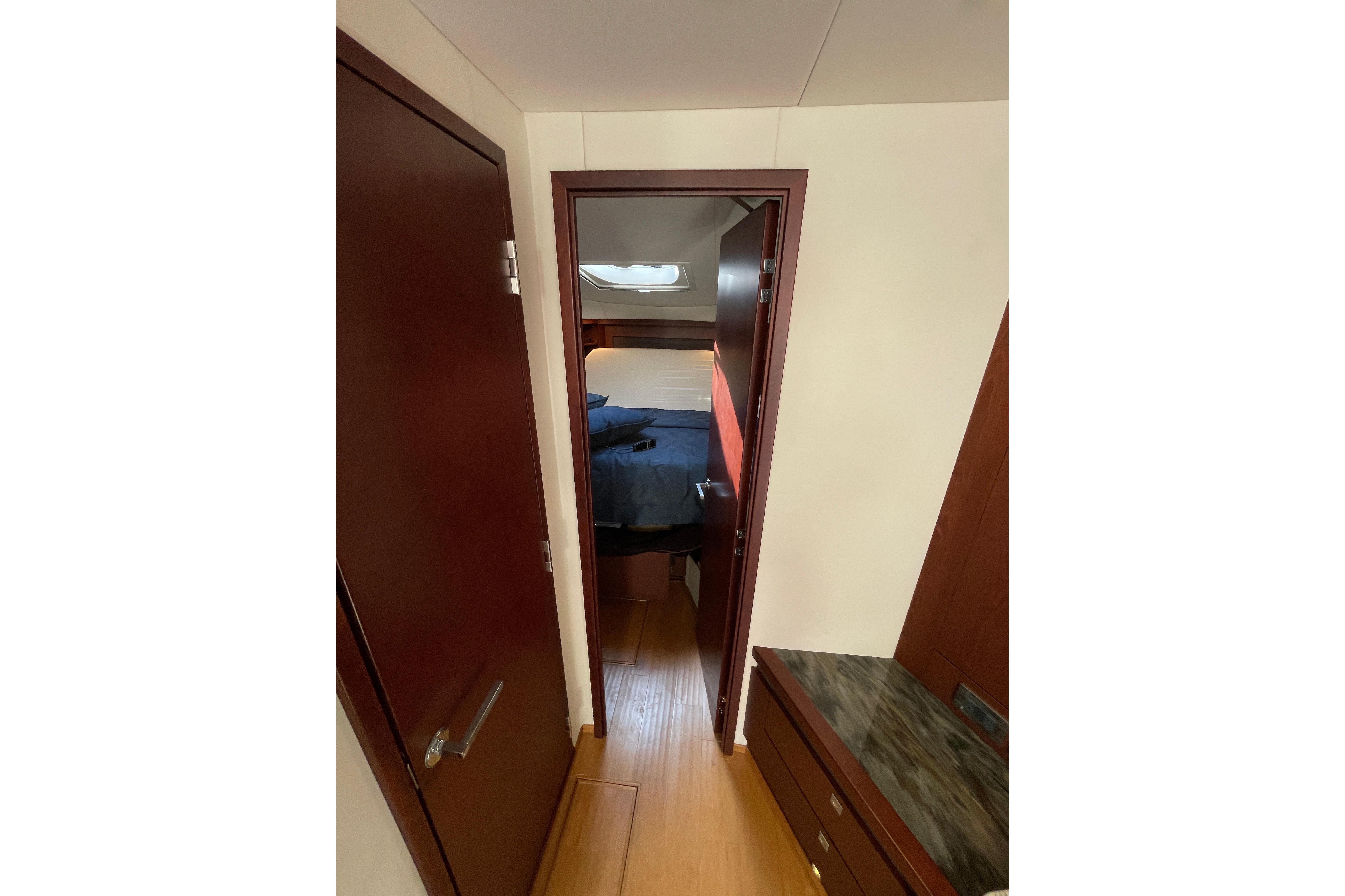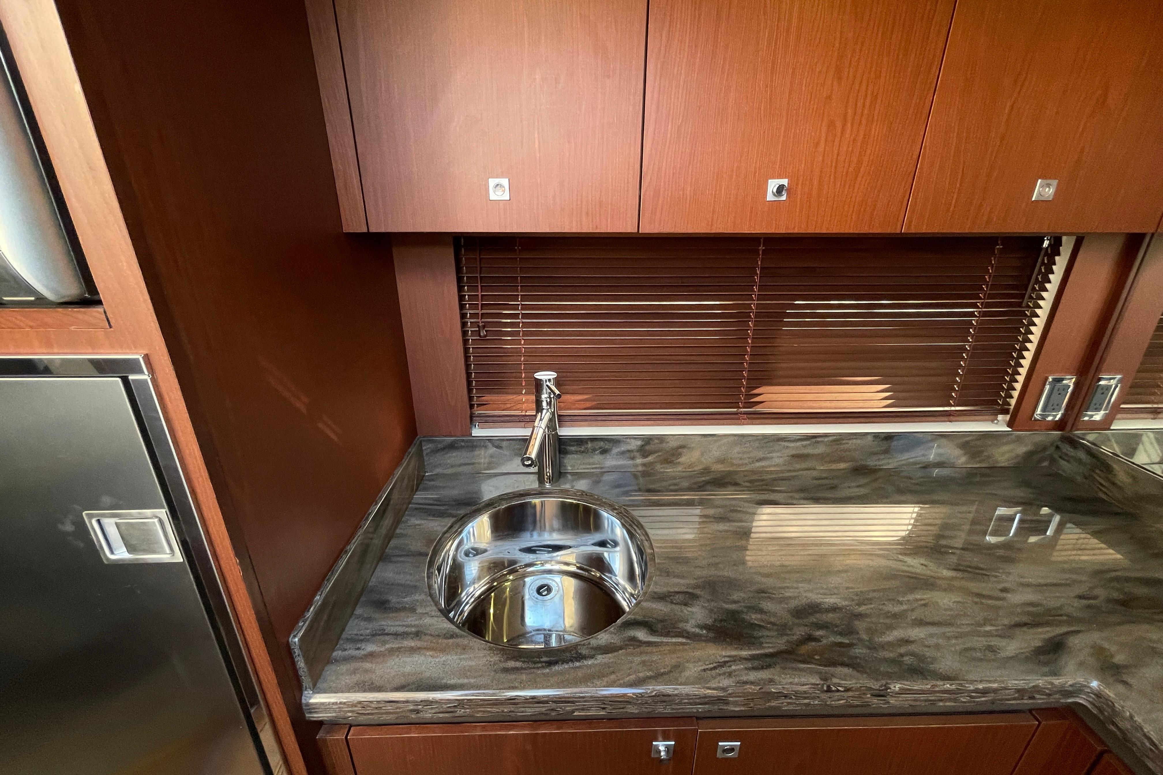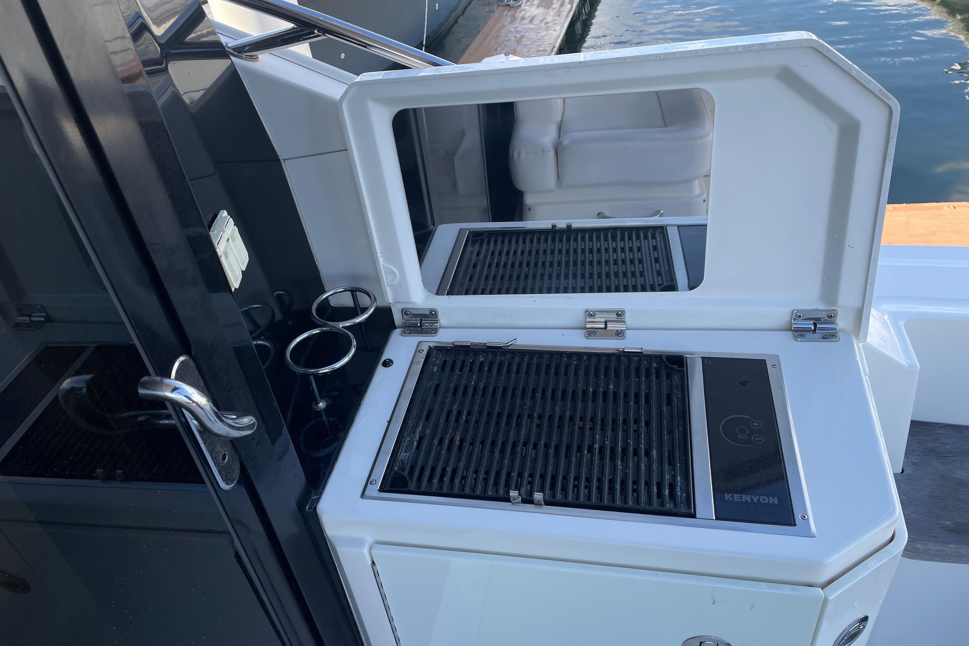 The Sundancer’s salon and galley are beautifully designed for entertaining and extended cruising. Natural light floods the interior through large windows and a power sunroof, giving the entire main deck a bright, open feeling.
