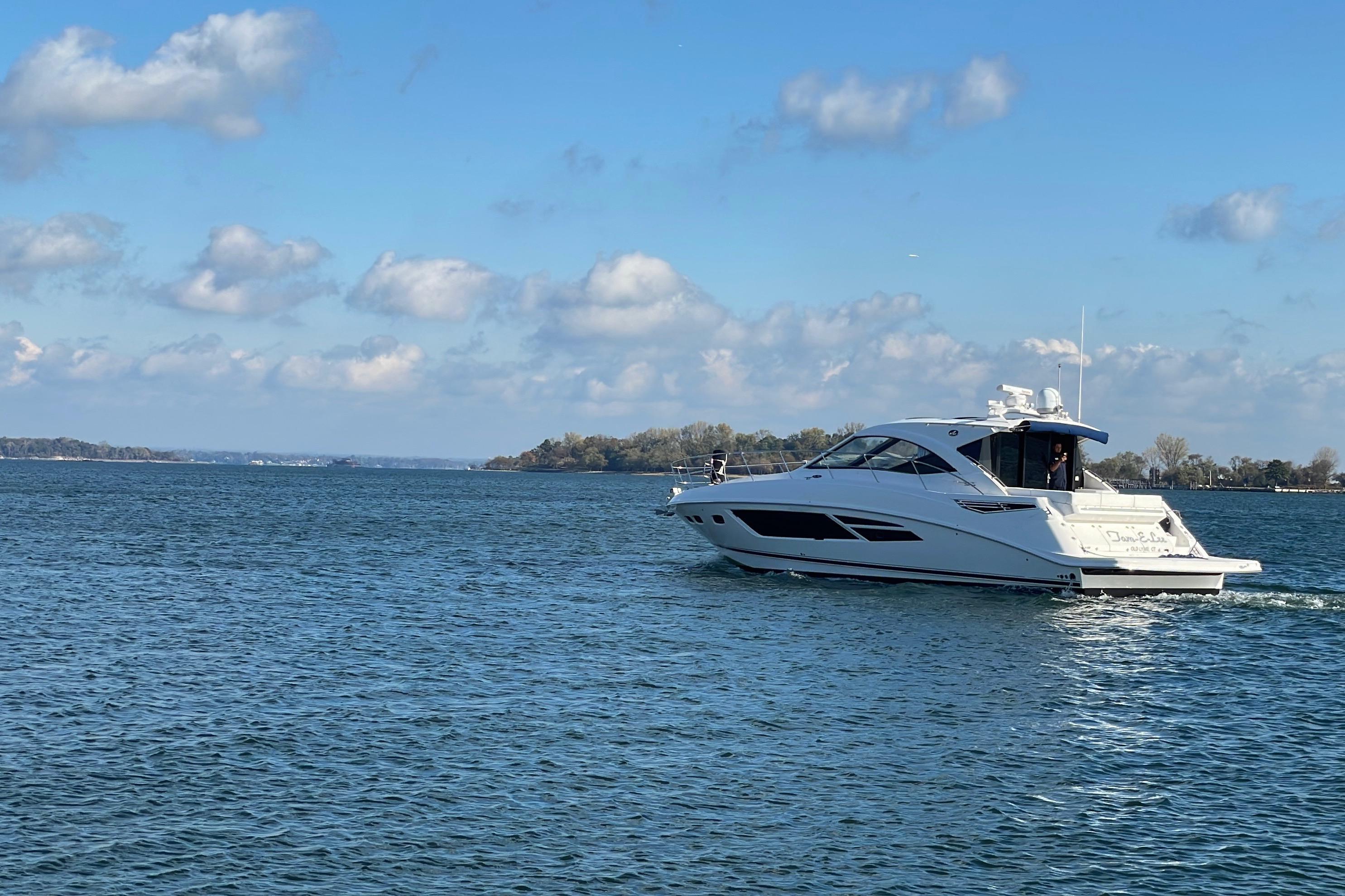 Sea Ray’s 510 Sundancer is known for its superb ride and handling characteristics. This yacht tracks confidently through a range of conditions, delivering both comfort and power. The 600HP Cummins engines provide strong acceleration and efficient cruising, while the Raymarine system gives captains total command from the helm.