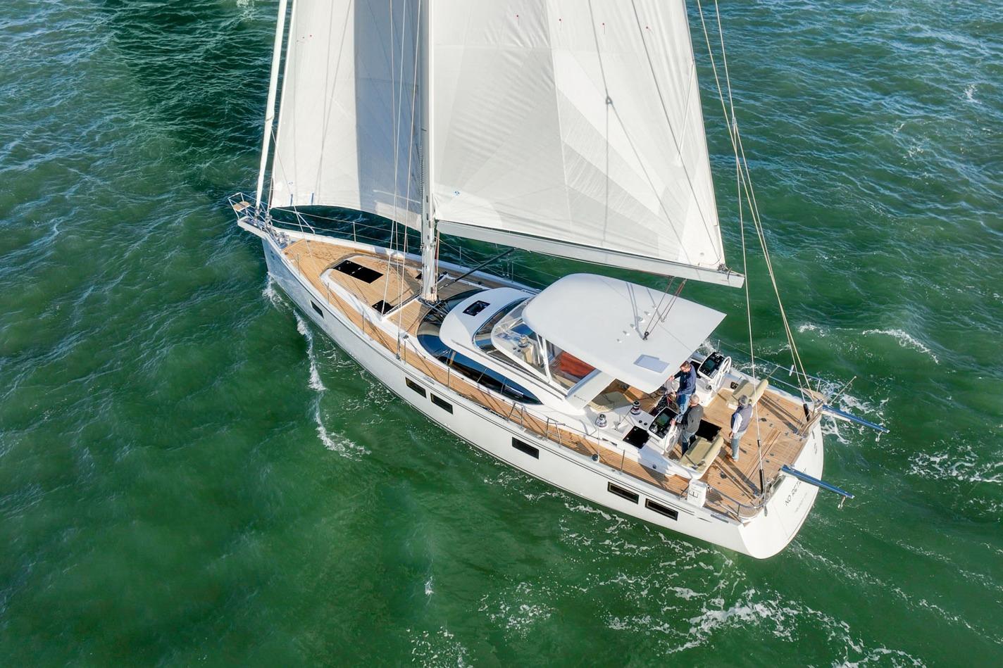 - North Sails furling mainsail, self-tacking jib, and genoa
