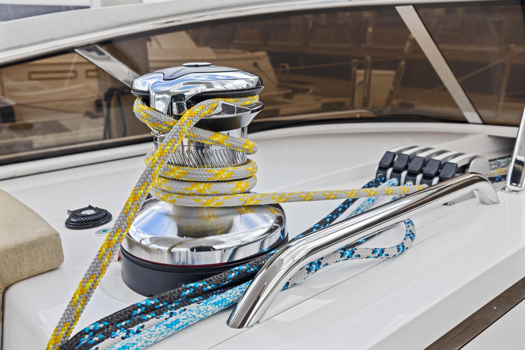 - Harken 60 Rewind electric primary winches – push-button trimming of genoa, jib, and mainsheet from the helms or winches