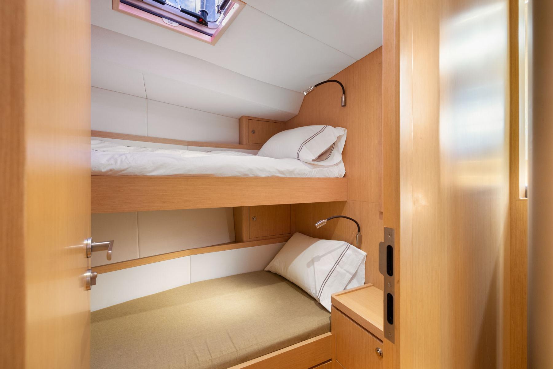 - Over/under single berths with memory foam mattresses