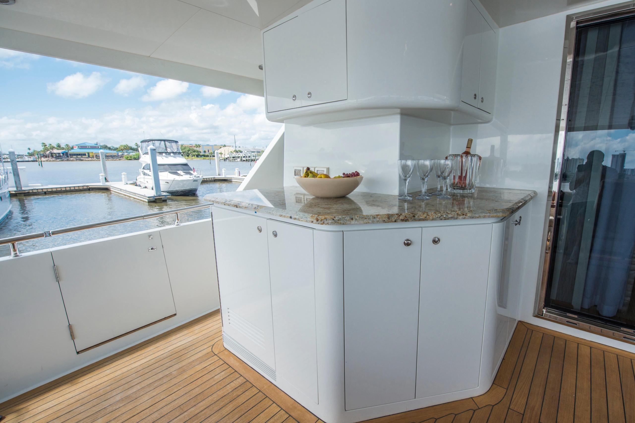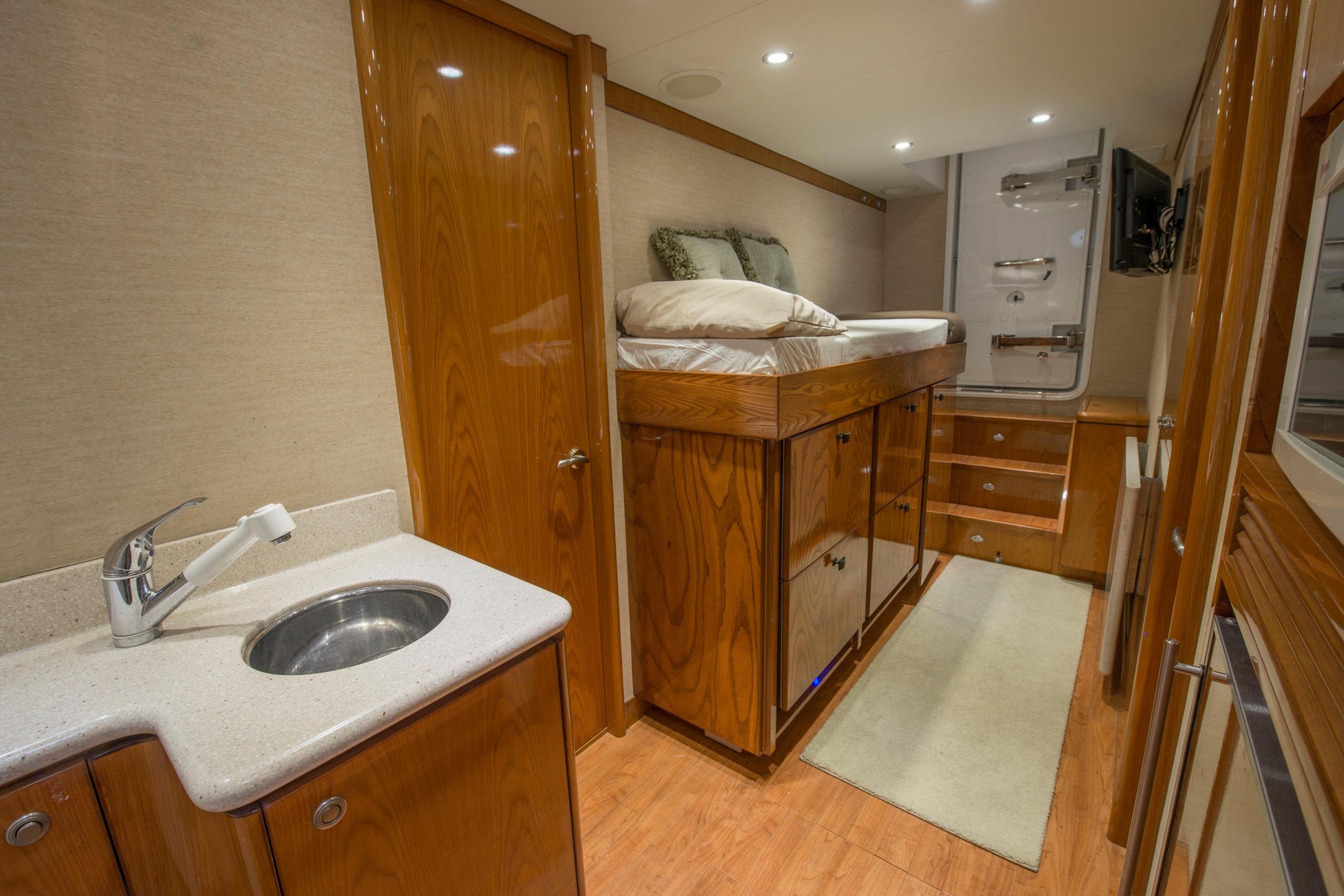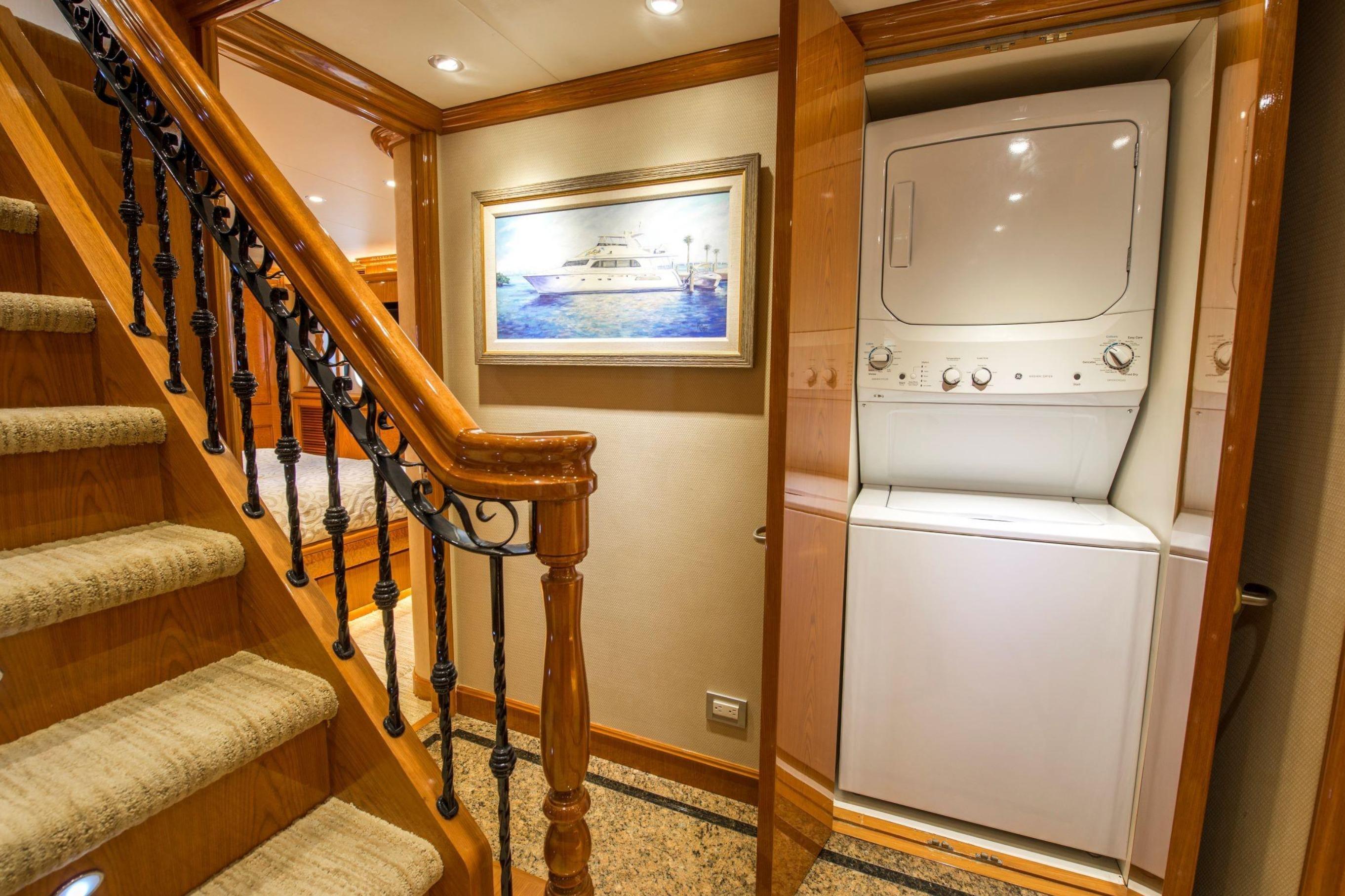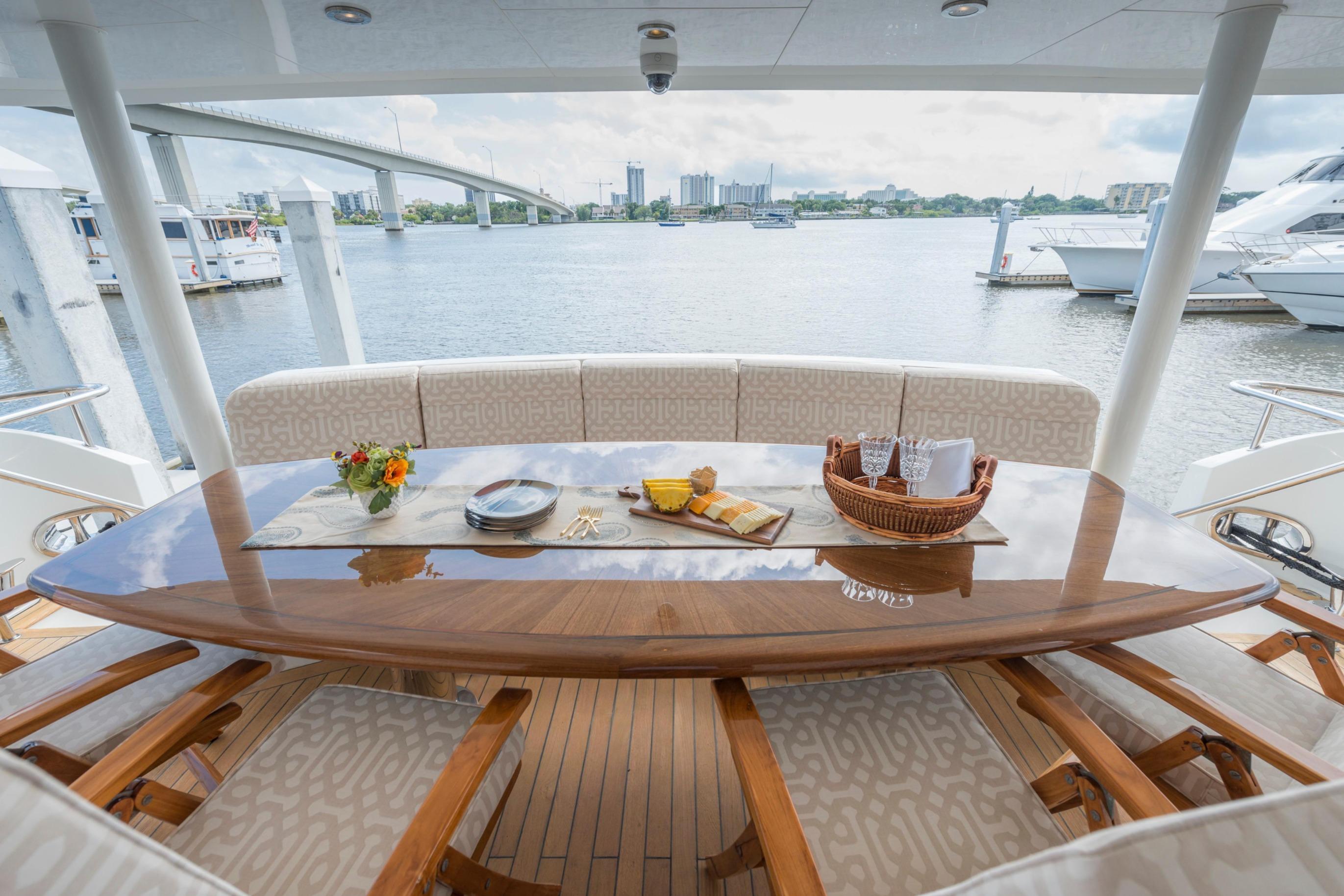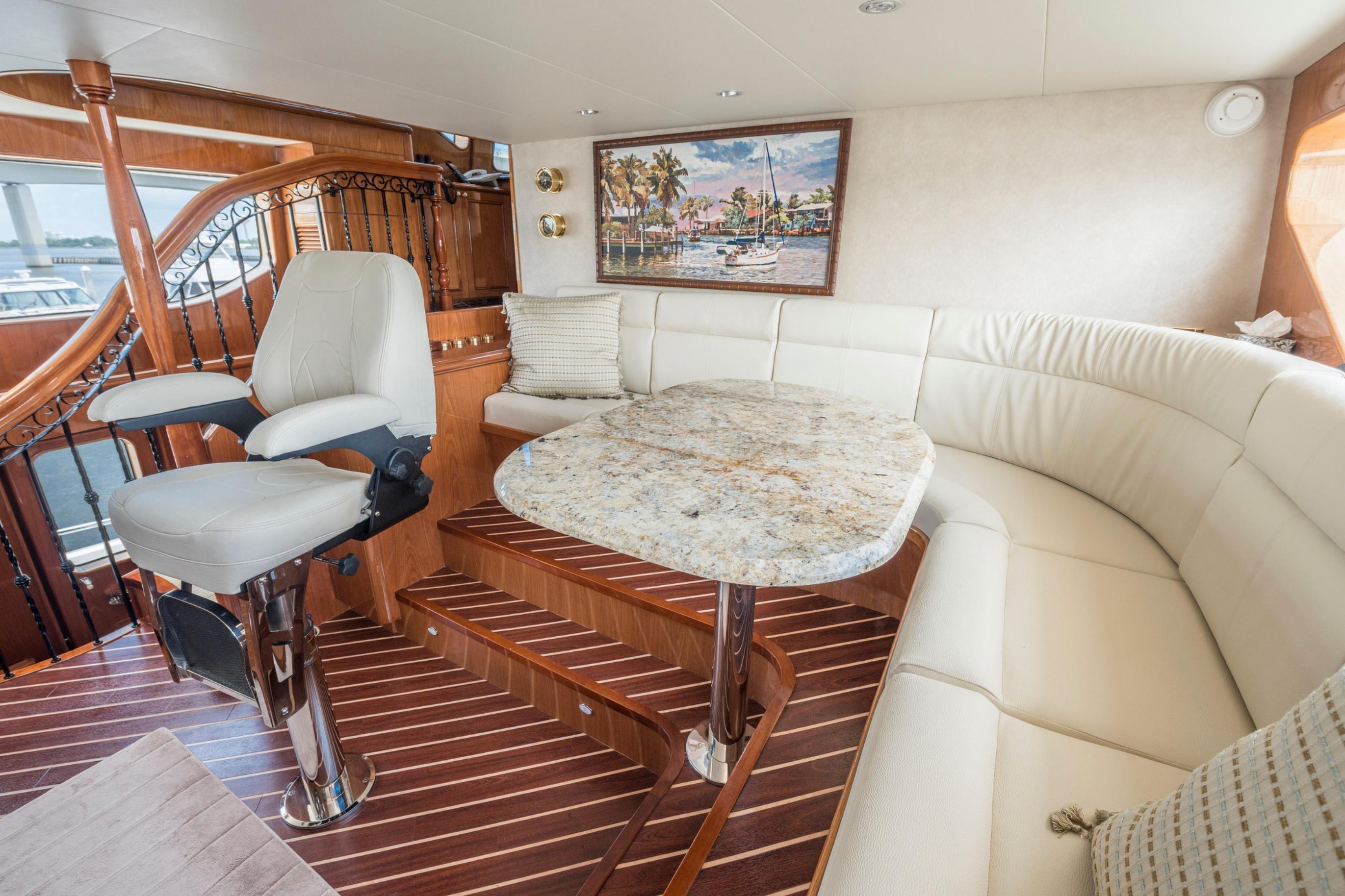 Twin Caterpillar C32 diesels (1,652 HP each, total 3,304 HP) power FOOTLOOSE to a thrilling 26-knot top speed and efficient 18-knot cruise. Her 5,300-gallon fuel tanks yield a 1,267-nm range, ideal for transoceanic runs or island-hopping. Quantum zero-speed stabilizers ensure silky rides and reliability. Upgraded Garmin electronics suite includes Four Garmin 8617's, radar, autopilot, and AIS for effortless command from the raised pilothouse or flybridge helm.