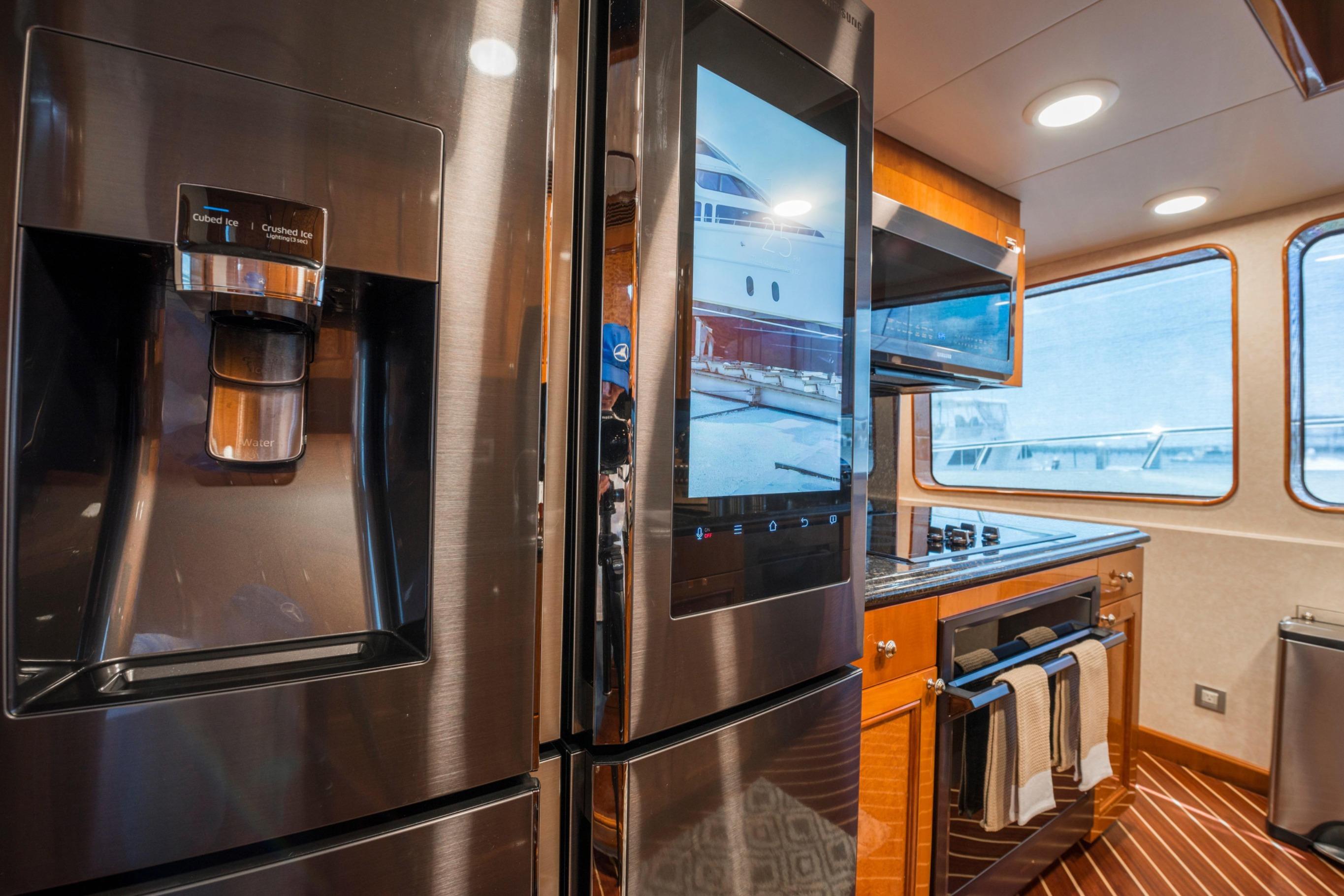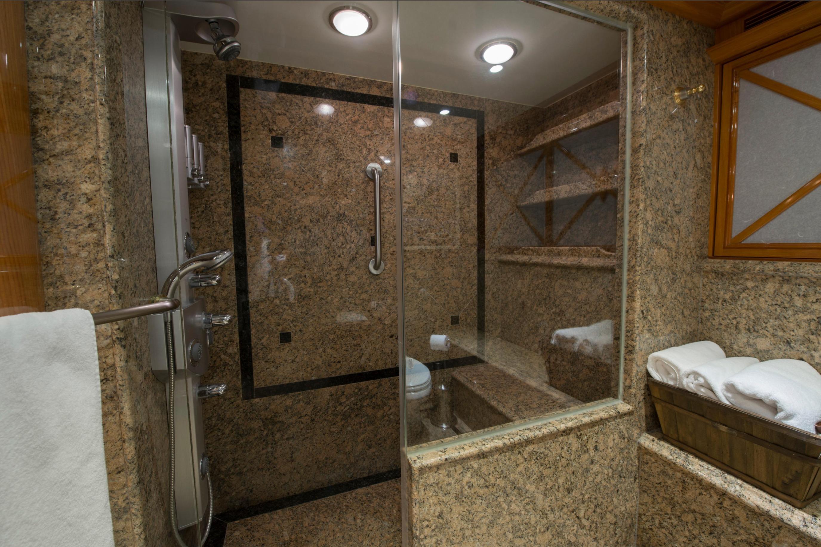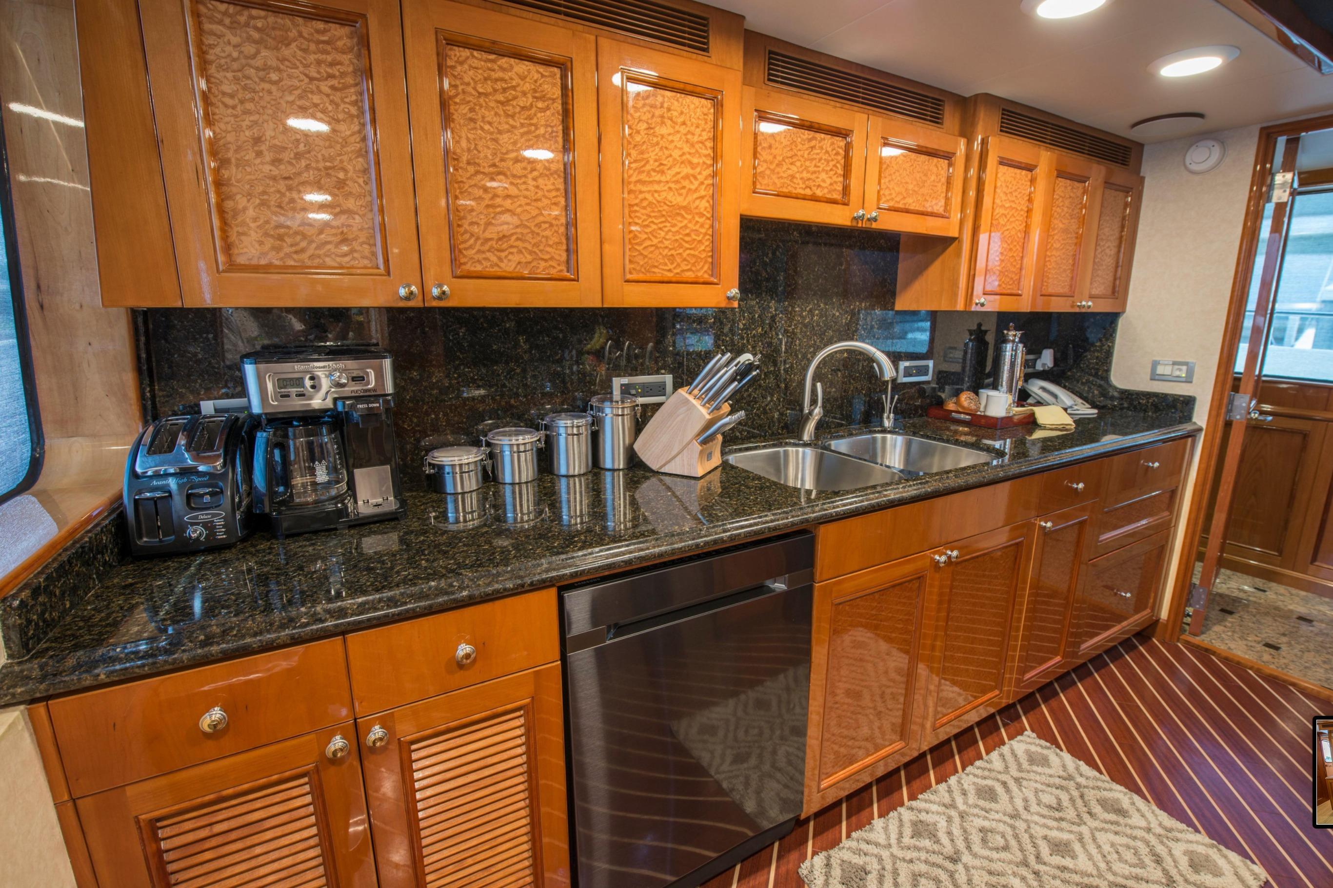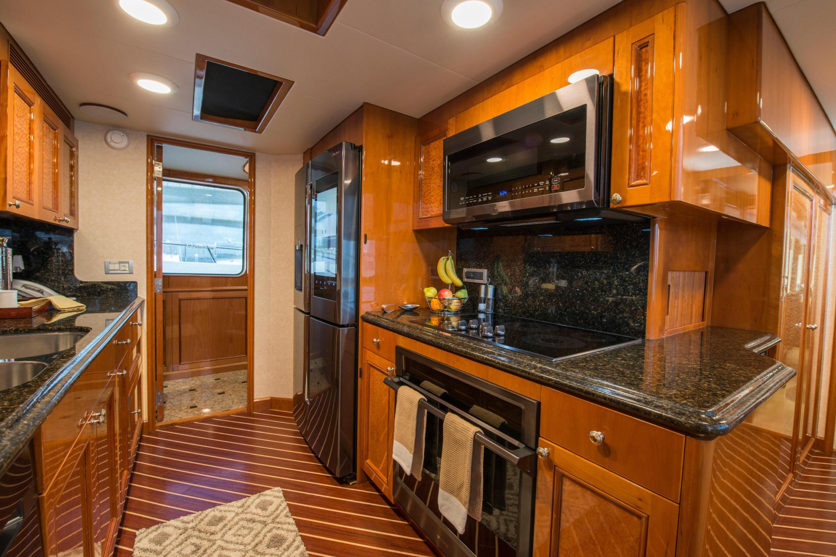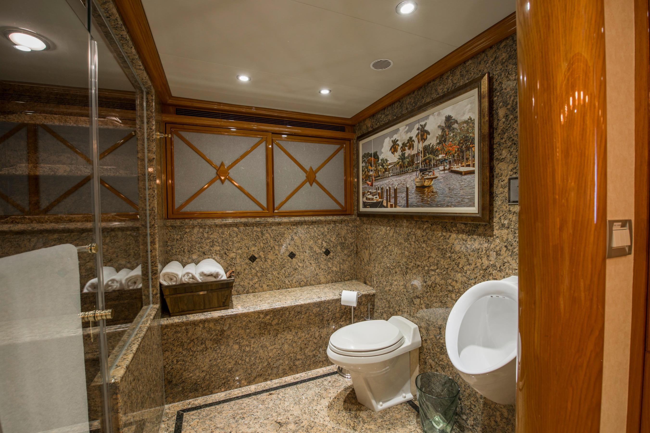 Twin Caterpillar C32 diesels (1,652 HP each, total 3,304 HP) power FOOTLOOSE to a thrilling 26-knot top speed and efficient 18-knot cruise. Her 5,300-gallon fuel tanks yield a 1,267-nm range, ideal for transoceanic runs or island-hopping. Quantum zero-speed stabilizers ensure silky rides and reliability. Upgraded Garmin electronics suite includes Four Garmin 8617's, radar, autopilot, and AIS for effortless command from the raised pilothouse or flybridge helm.