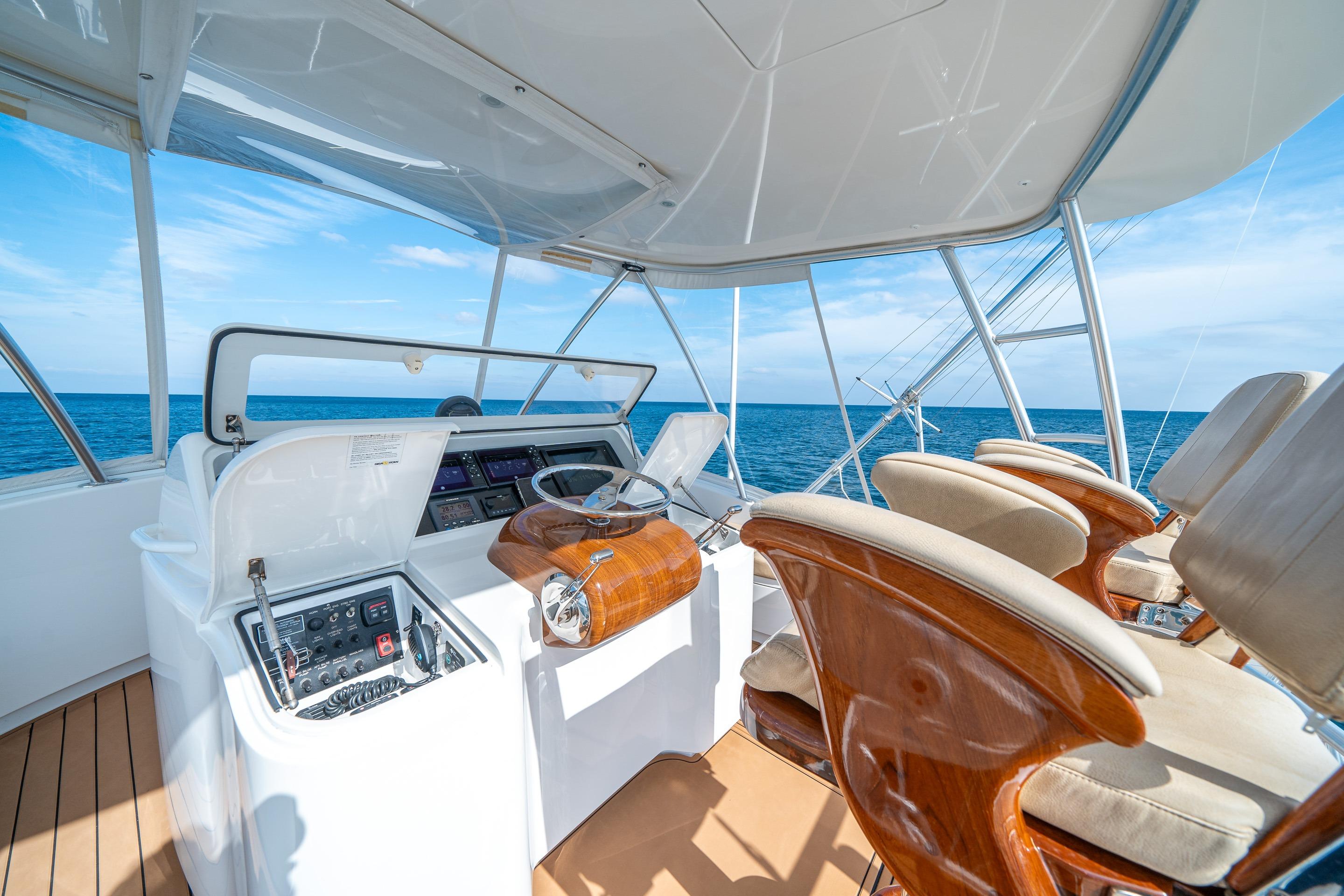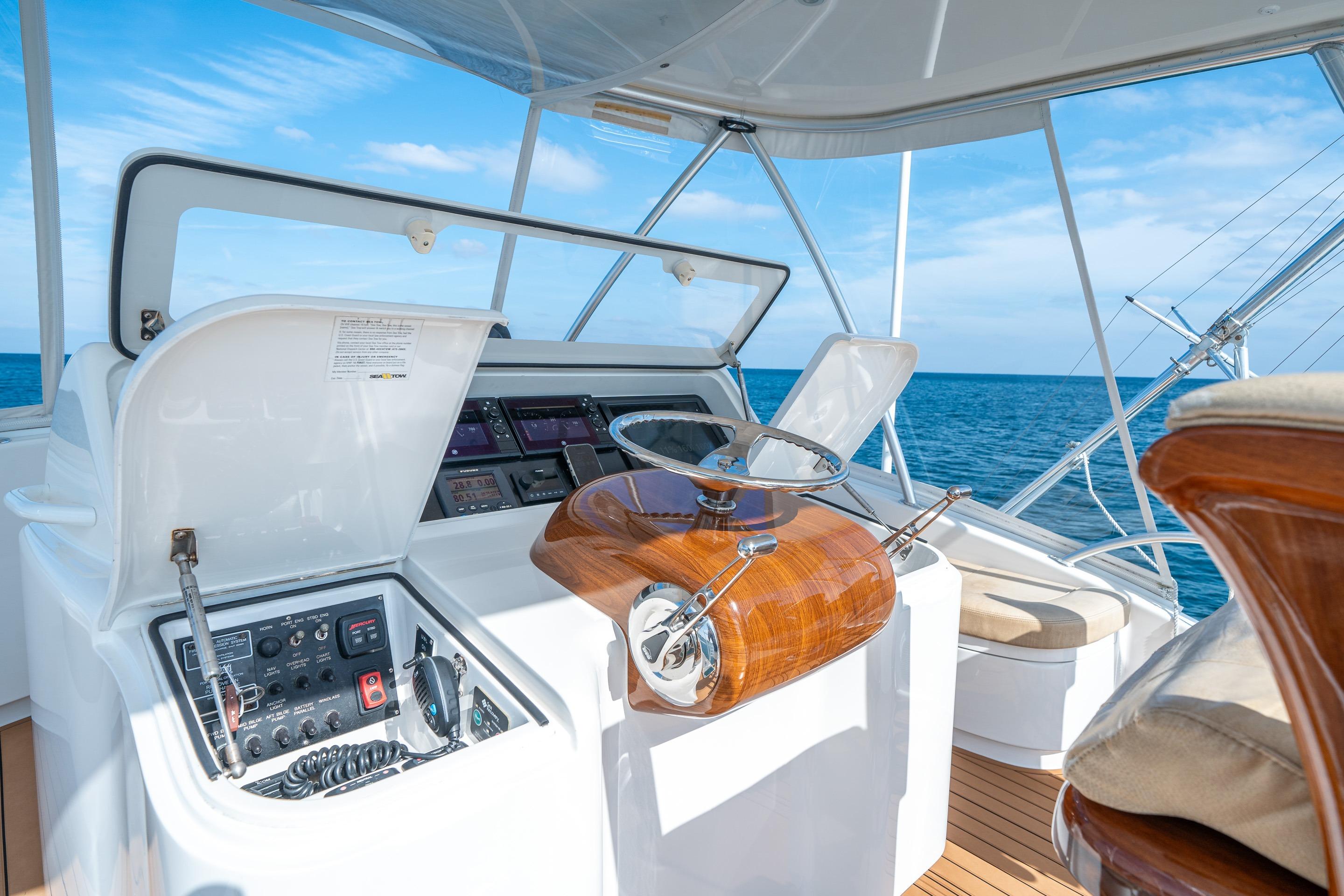 - Teak finish fiberglass helm pod
