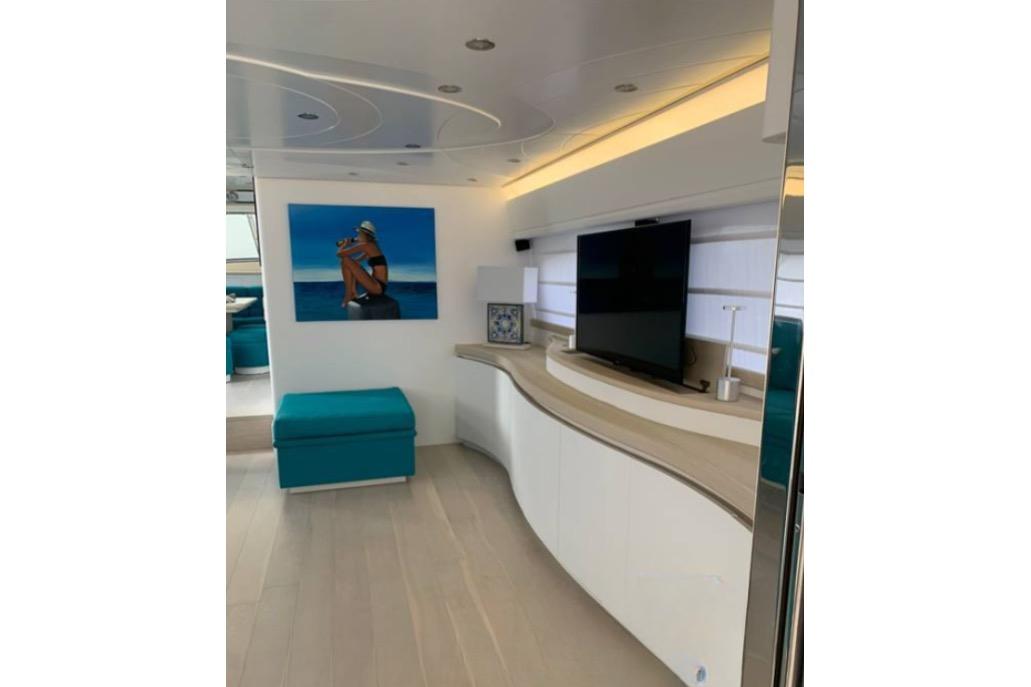 La zona ospiti comprende 4 cabine: una cabina armatoriale a centro barca con bagno privato, una cabina VIP a prua, due cabine ospiti ciascuna con servizi dedicati, oltre a due cabine equipaggio con ingresso indipendente.