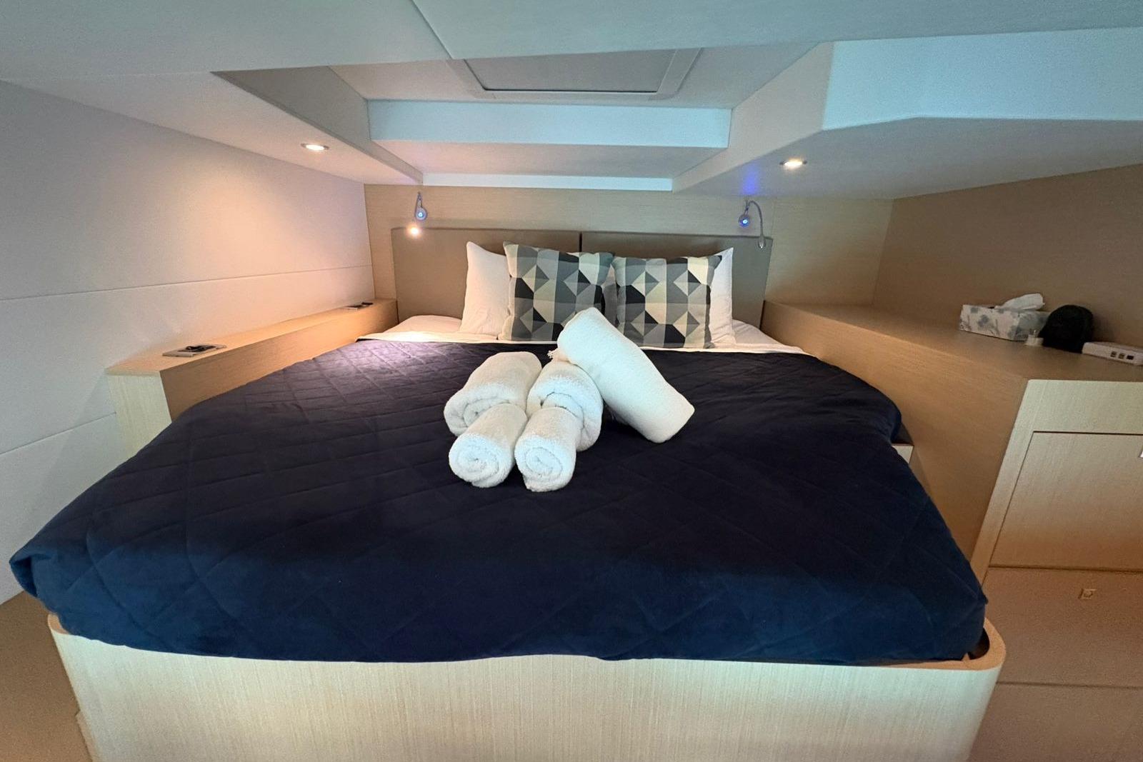Spacious master suite and multiple guest cabins with ensuite heads