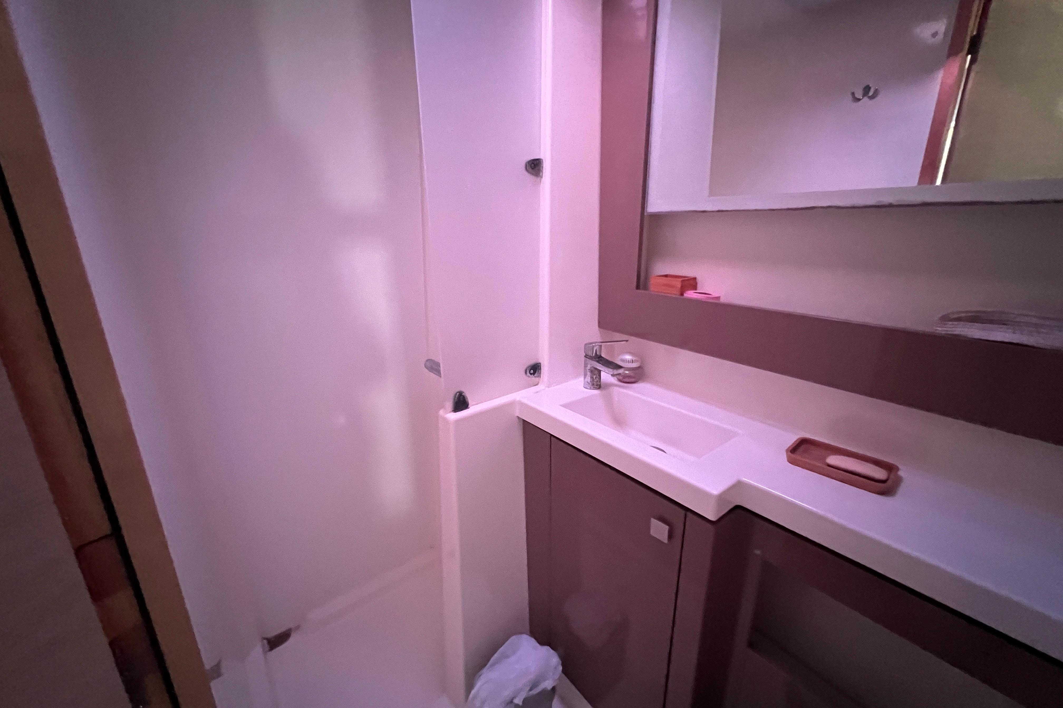 - Shower separated via a Plexiglas panel