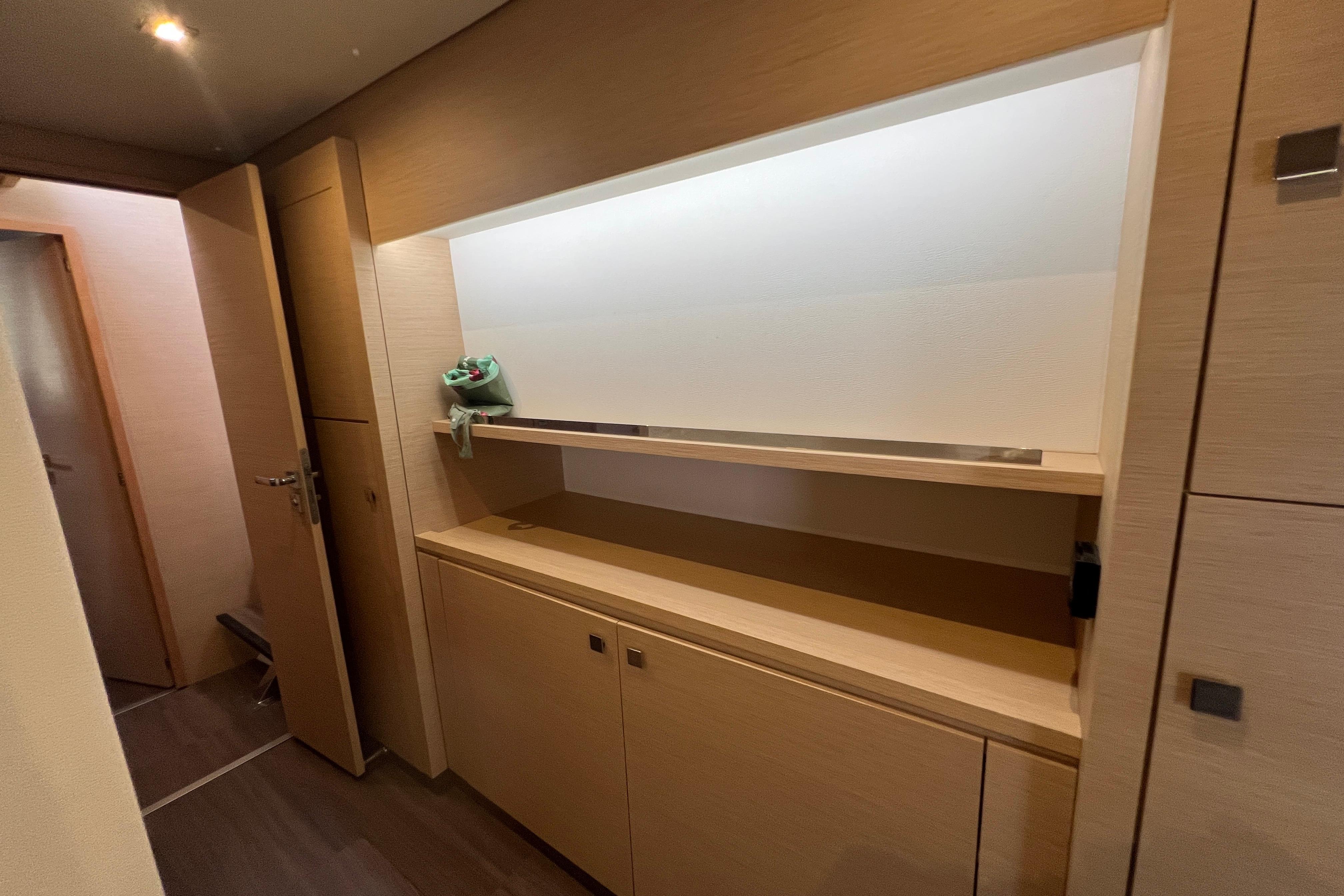 - 1 large storage cupboard on the starboard side of the entrance