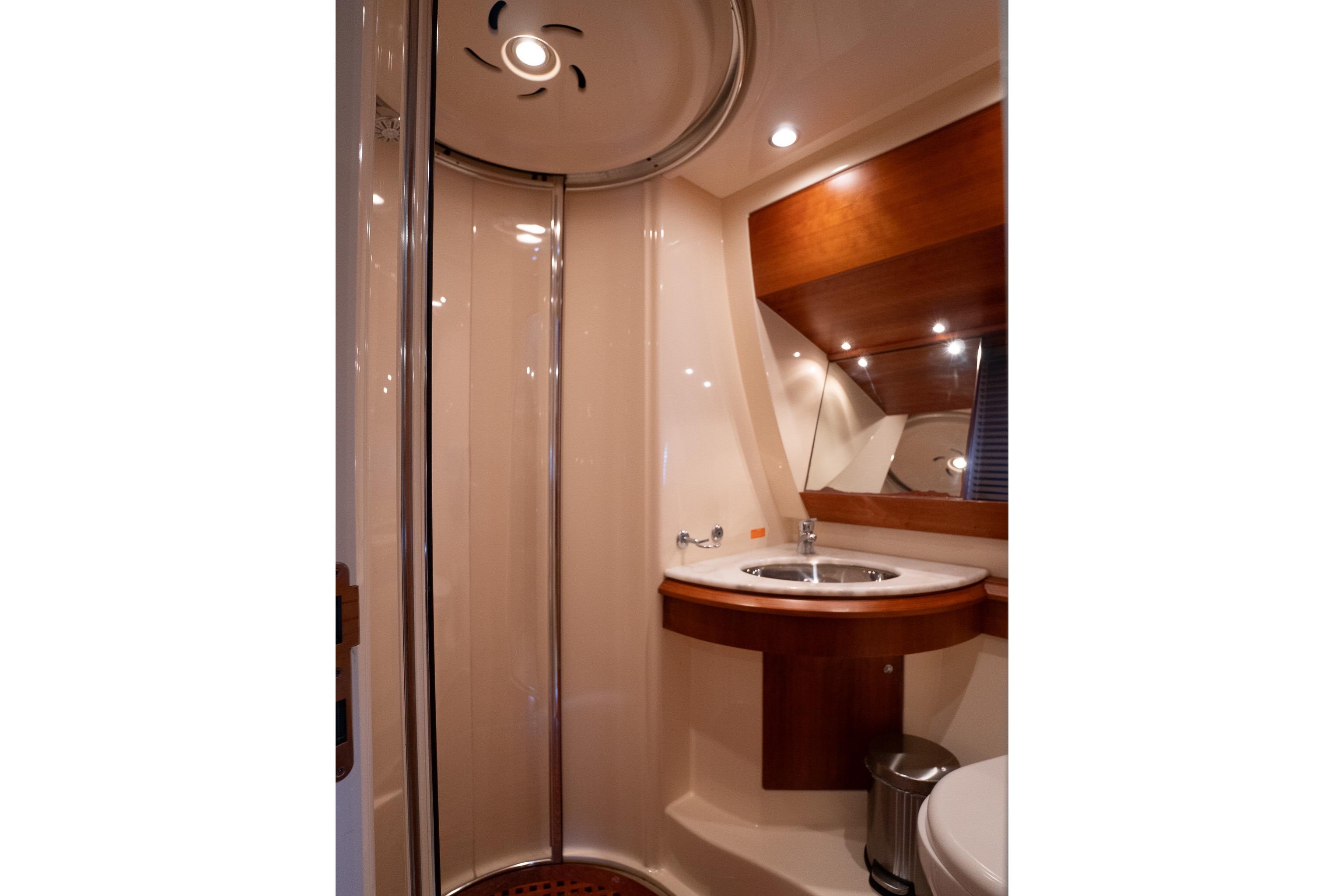 The flybridge is expansive and social, offering ample seating, lounging space, a wet bar, and sweeping views—your open-air lounge at anchor or underway. Inside, Azimut’s signature salon windows illuminate a warm, elegant interior with three staterooms, two heads, and an additional bonus/crew space for flexible guest or storage needs. Whether relaxing with family or entertaining guests, this 50 Fly carries the presence and comfort of a much larger yacht.