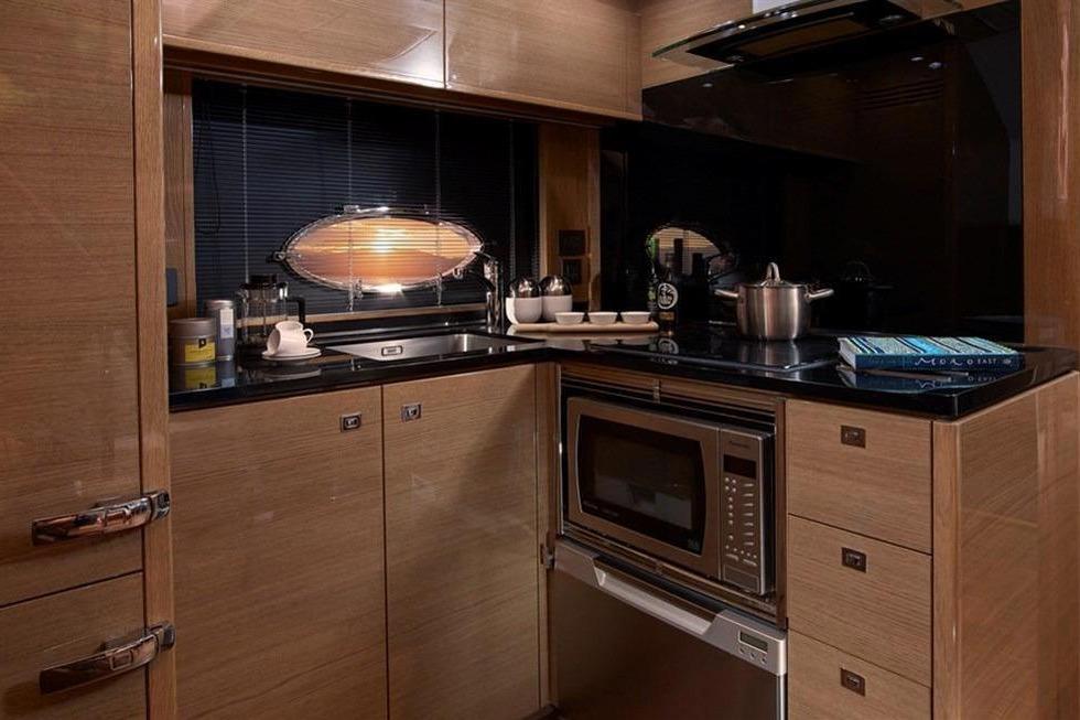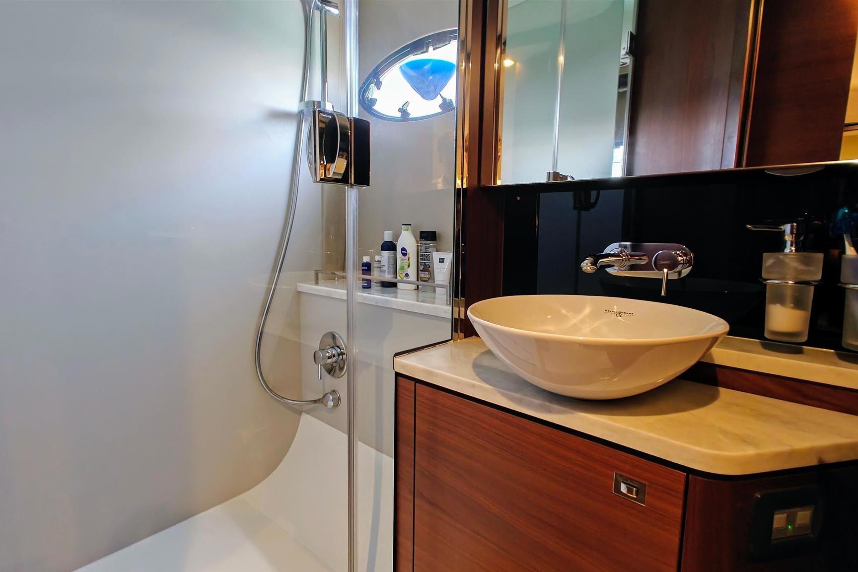 - Transom gate leading to bathing platform with optional electro-hydraulic raise/lower mechanism, foldaway swimming ladder and hot and cold shower
