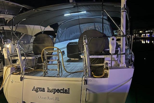 Easy to sail, the balanced helm you can drive finger touch. Sail controls all come back just in front of helm. I like calling it the sail control zone, makes it simple to sail with 1-2 crew, while rest of the crew are lounging comfortably in the action but not in the way when tacking and jibing. Another cool feature is the innovative aft terrace, down great swim platform, and getting into dingy or dock with ease. But when transom up super seaworthy safe feeling. Every detail and function has been considered to enhance life aboard and the cruising experience.