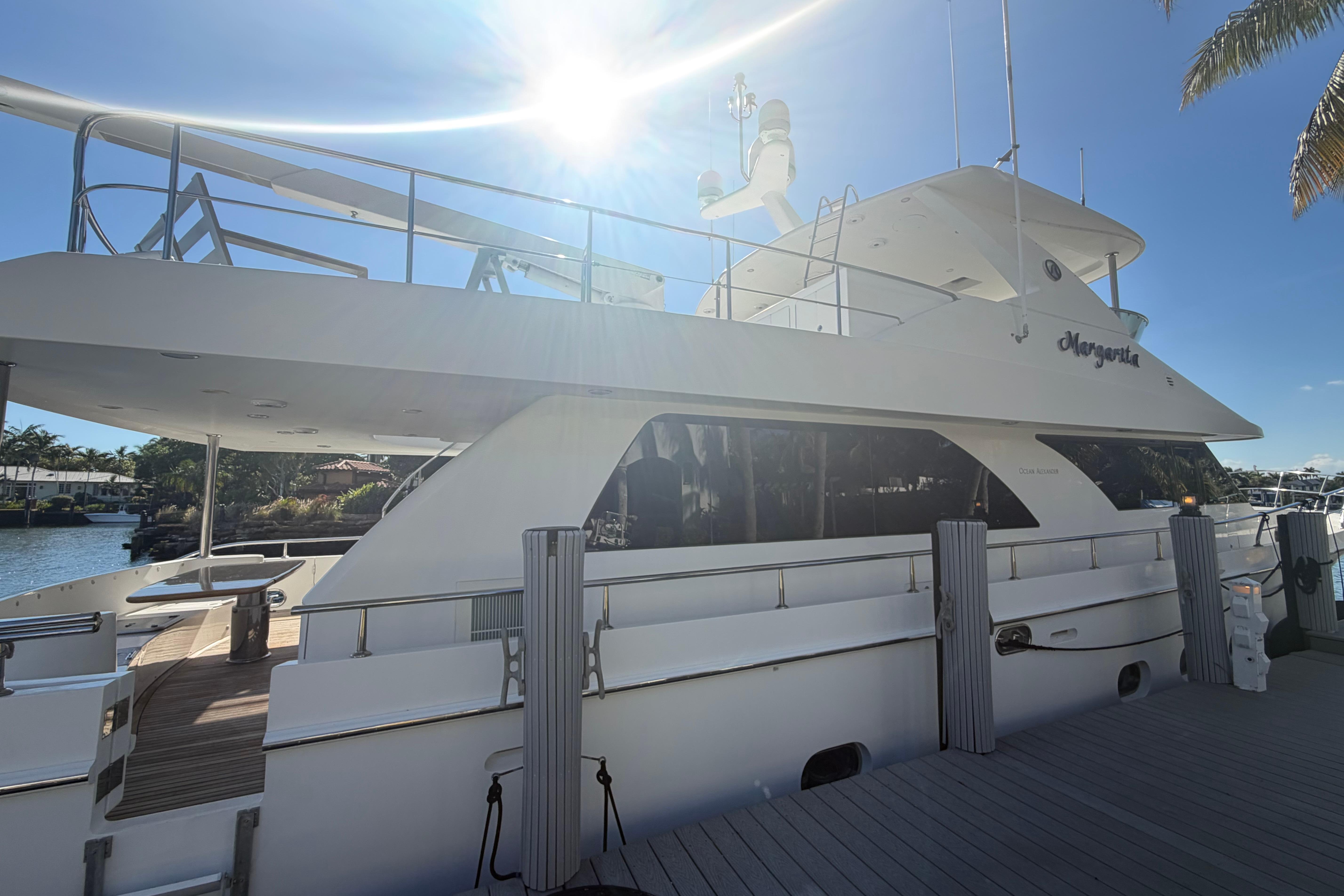 Introducing the stunning 2010 Ocean Alexander 74 Motoryacht, a remarkable motor yacht that combines elegance with performance. With an impressive overall length of 77 feet, this vessel showcases s semi-displacement hull crafted from durable fiberglass, ensuring both stability and style on the water. Powered by twin MTU inboard engines, each delivering 1500 horsepower, the Margarita promises exhilarating performance and reliability. The yacht features a sophisticated 4-blade stainless steel propeller, enhancing maneuverability and efficiency. Accommodating up to four cabins, this yacht is perfect for extended voyages or entertaining guests in comfort. The thoughtful design includes essential features that elevate the onboard experience, making it a true gem for any boating enthusiast. Whether you're cruising along the coast or enjoying a sunset at anchor, the Ocean Alexander 74 Motoryacht is ready to deliver unforgettable moments on the water.