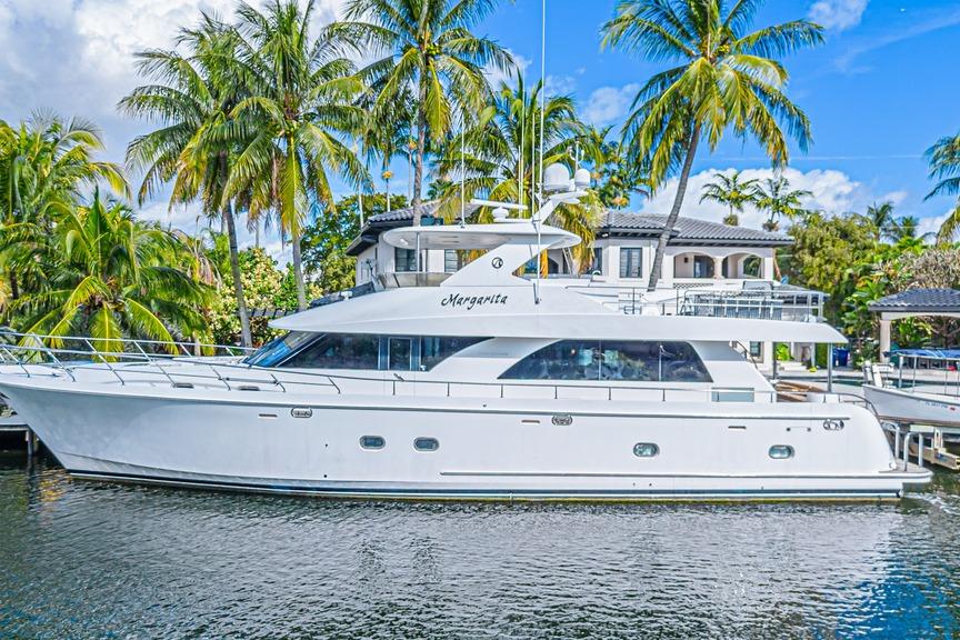 Constructed with a GRP hull and superstructure and finished with elegant teak decks, Margarita delivers both performance and style. She is powered by twin MTU 10V 2000 M94 diesel engines producing 1,500 hp each, allowing her to cruise comfortably at 19 knots and reach a top speed of 24 knots. Freshwater capacity is approximately 350 gallons.