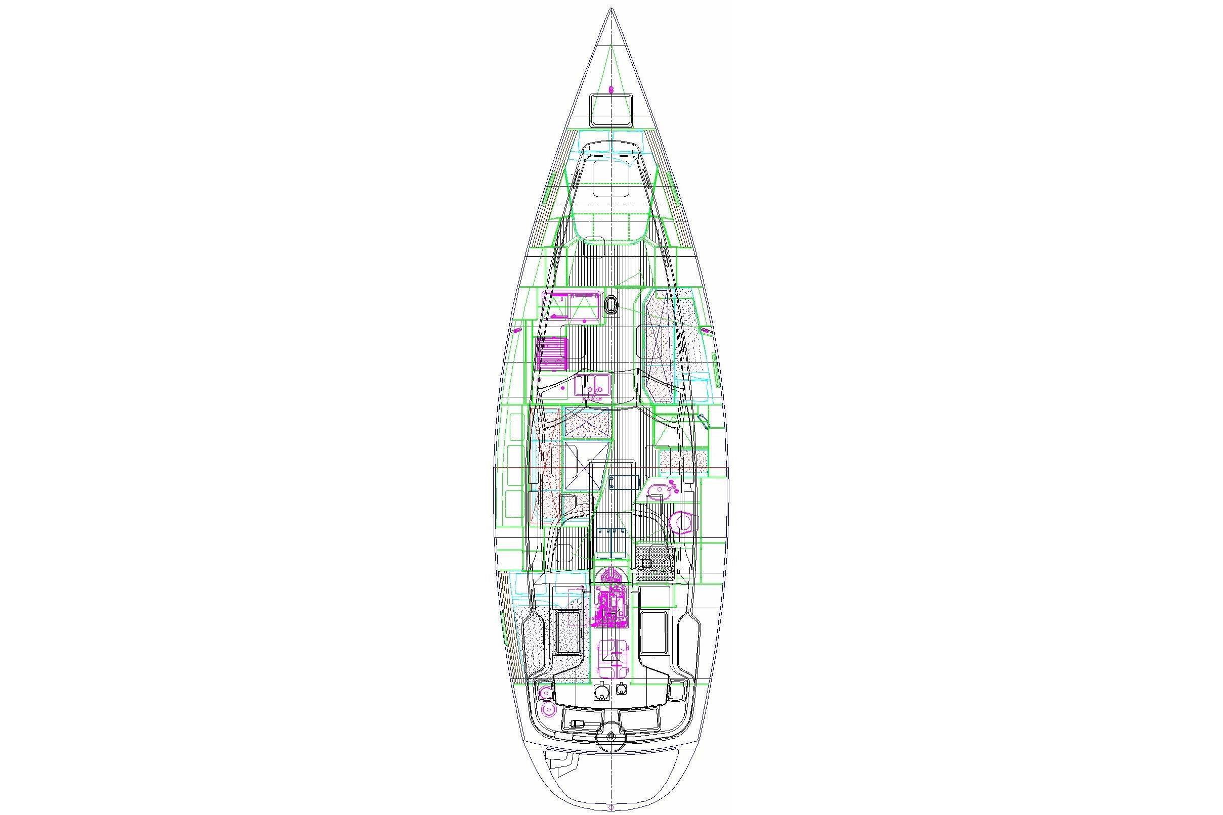 - Cockpit seat hatches for access to large sail locker, lazarette and propane locker