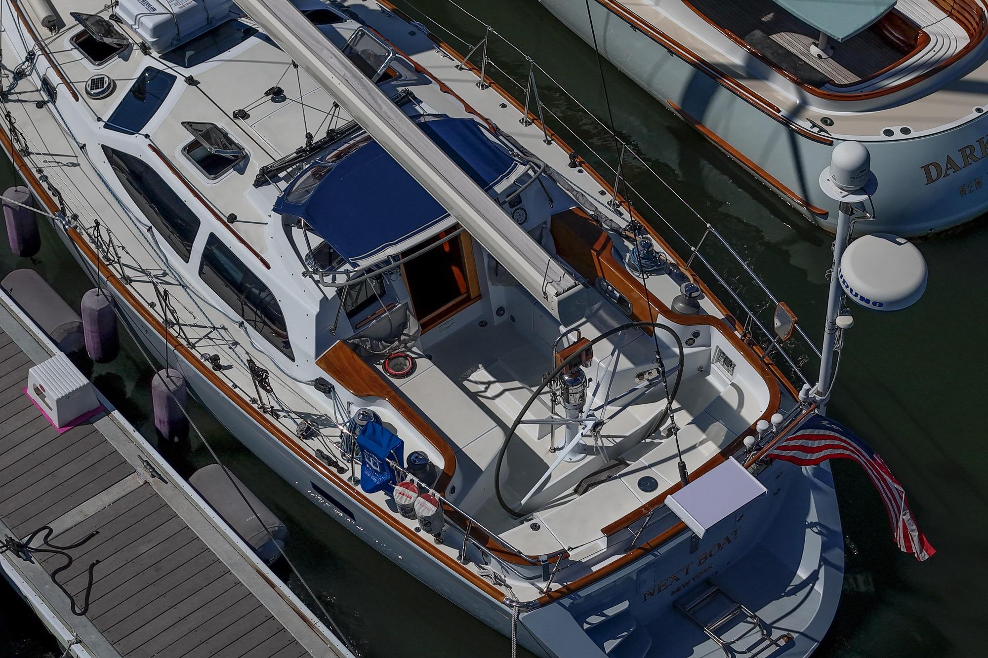 The Ocean Series 45 was designed by Chuck Paine and Tom Morris as an extension of Chuck’s Bermuda Series designs and was inspired by the successful Ocean Series 48. Originally commissioned for a repeat customer who wanted a boat like the 48 but planned on sailing and racing either singlehanded or double handed, the 45 is very similar to the 48 but with almost a third less displacement everything is easier from pushing the boat off a dock to handling the loads underway. With a very comfortable two cabin, one head layout, lots of light below and abundant storage she is both comfortable to cruise on and exhilarating to sail.