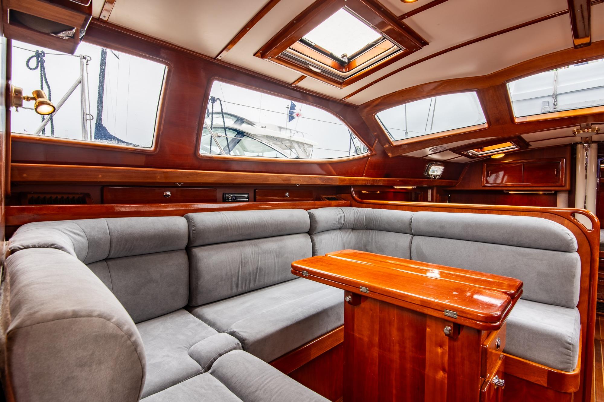 The interior is beautifully finished with a mix of gloss and satin varnished cherry with Alaskan Cedar hull sheathing.