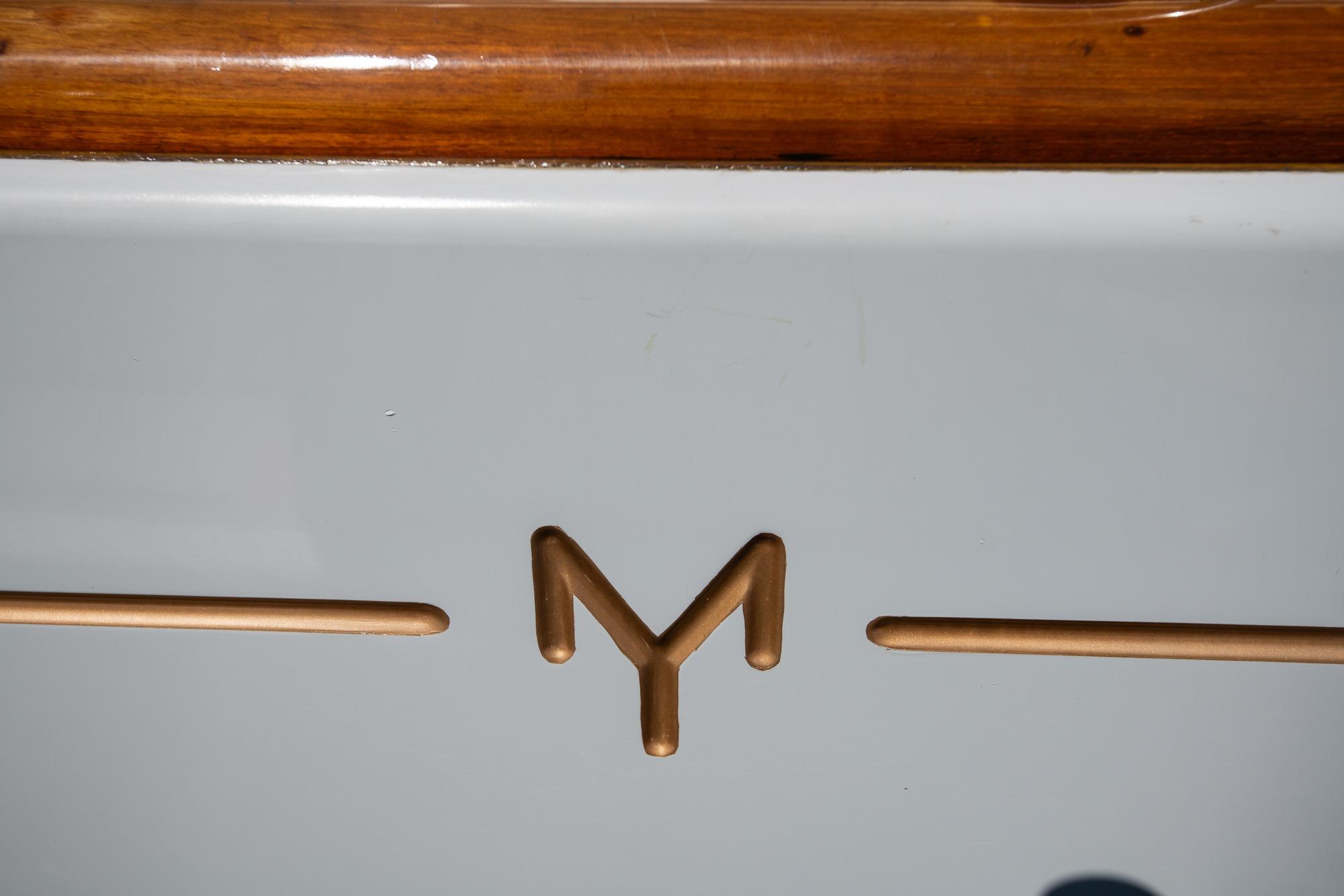 - Hull Awlgripped Kingston Grey with double Aristo Blue boot stripe with gold cove stripe