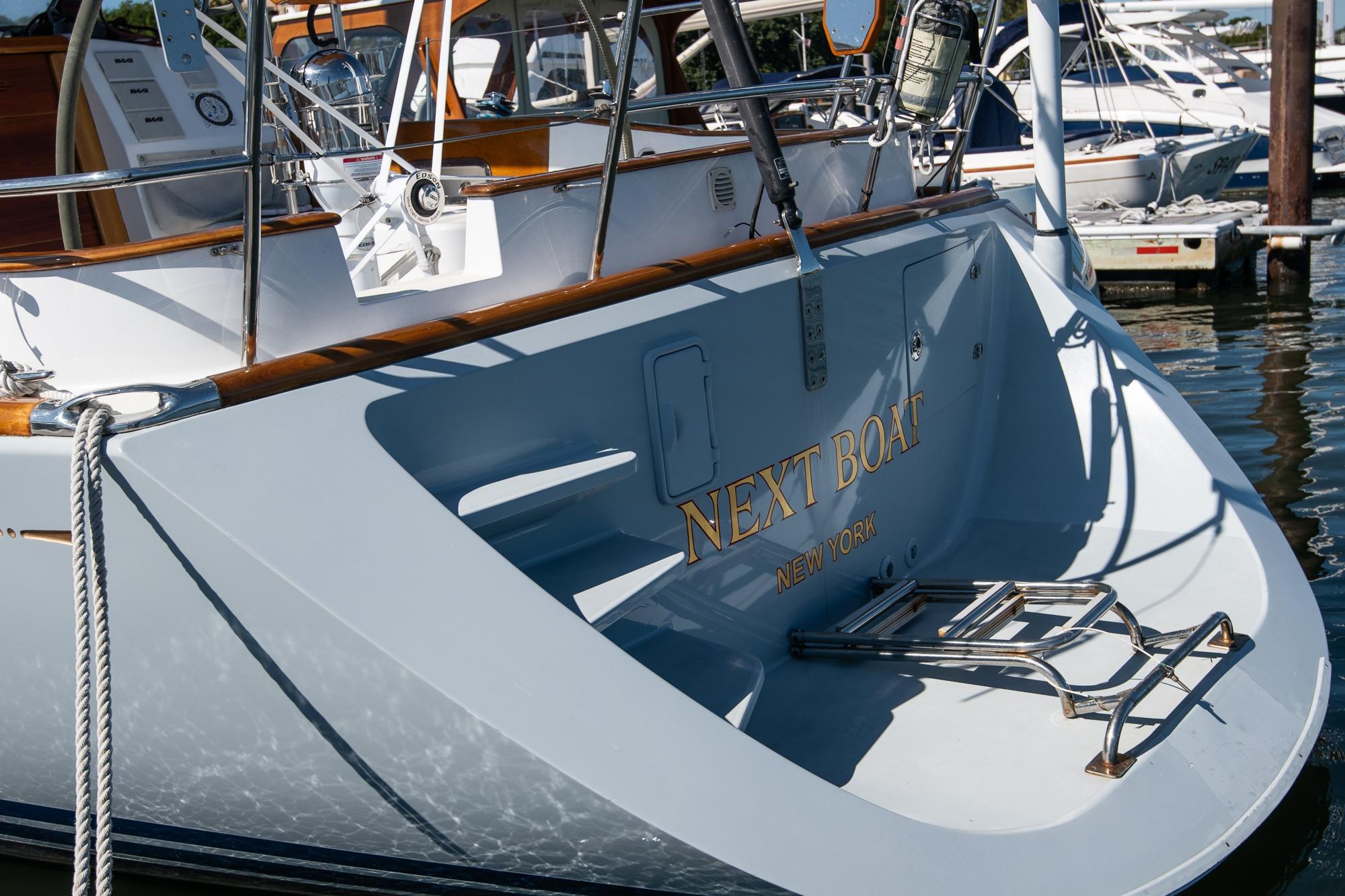 - Reverse transom with boarding ladder and integrated steps up to cockpit