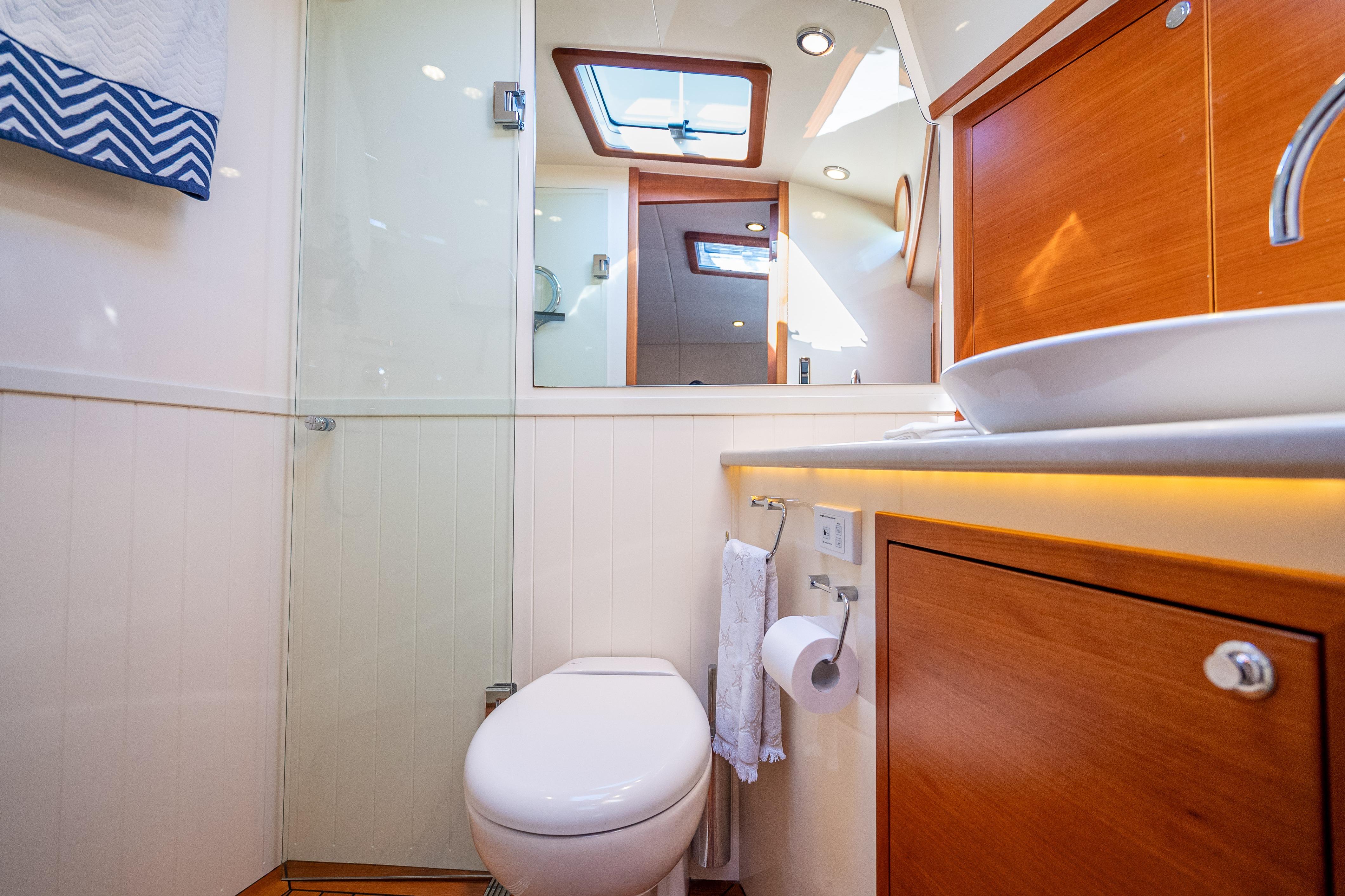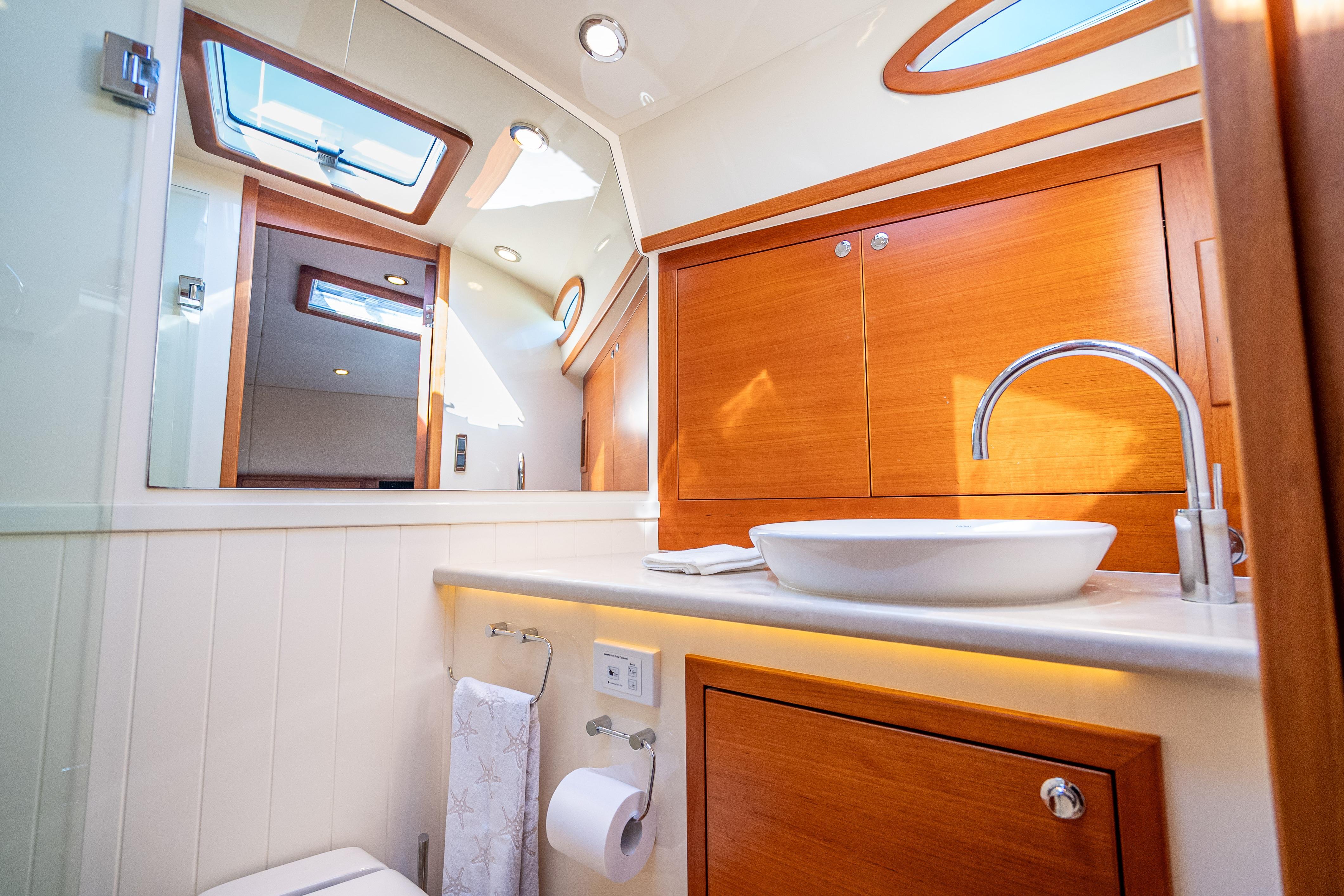 Latest generation E glass, vinyl ester, epoxy resins and stitched multiaxial fabric over Corecell linear foam are used to provide a very strong, but lightweight hull and deck. All bulkheads and fixed furniture are structurally bonded to the hull and deck for superior strength and rigidity like a performance racing yacht. Each model is engineered with proprietary noise silencing materials to provide a tranquil environment while aboard.