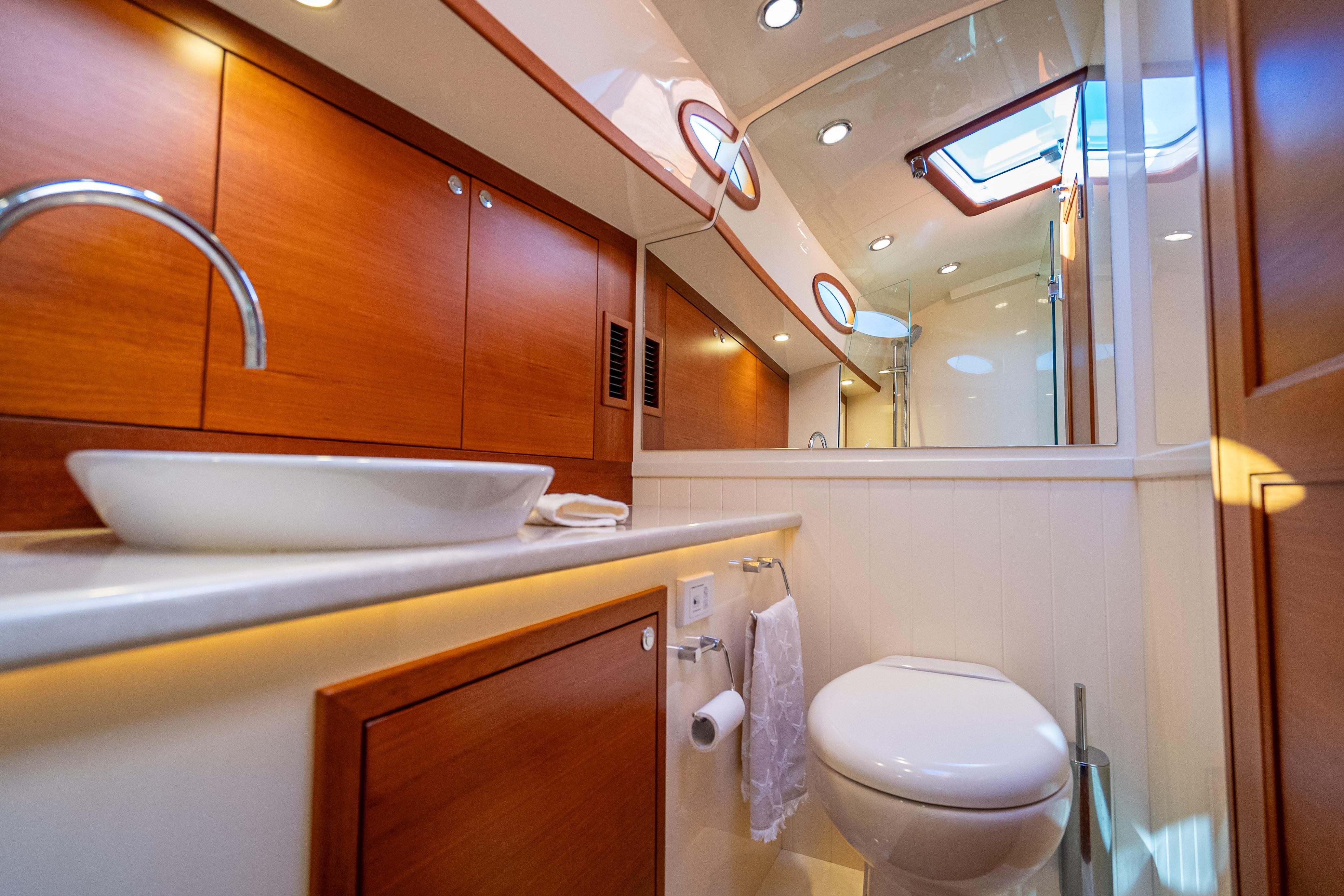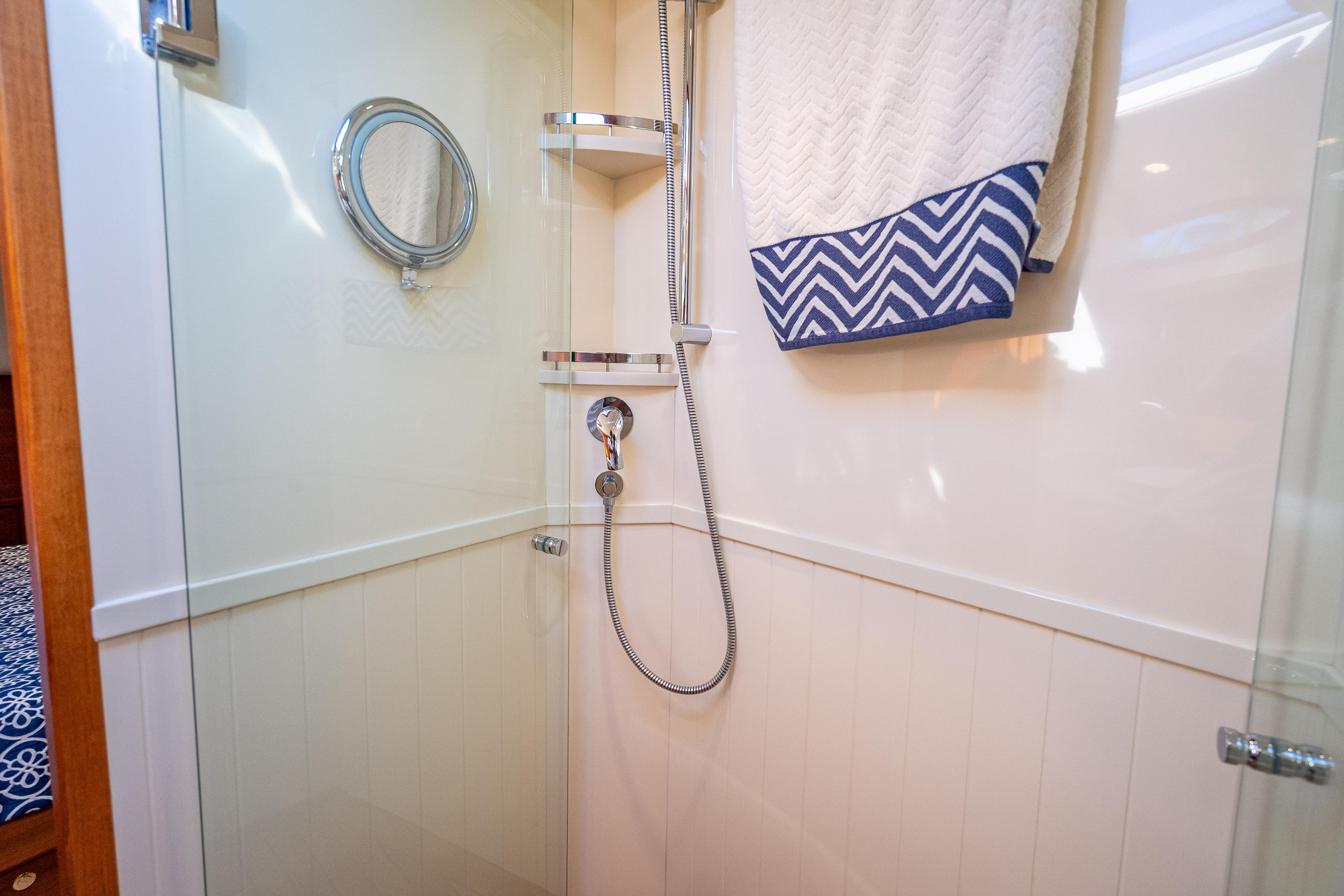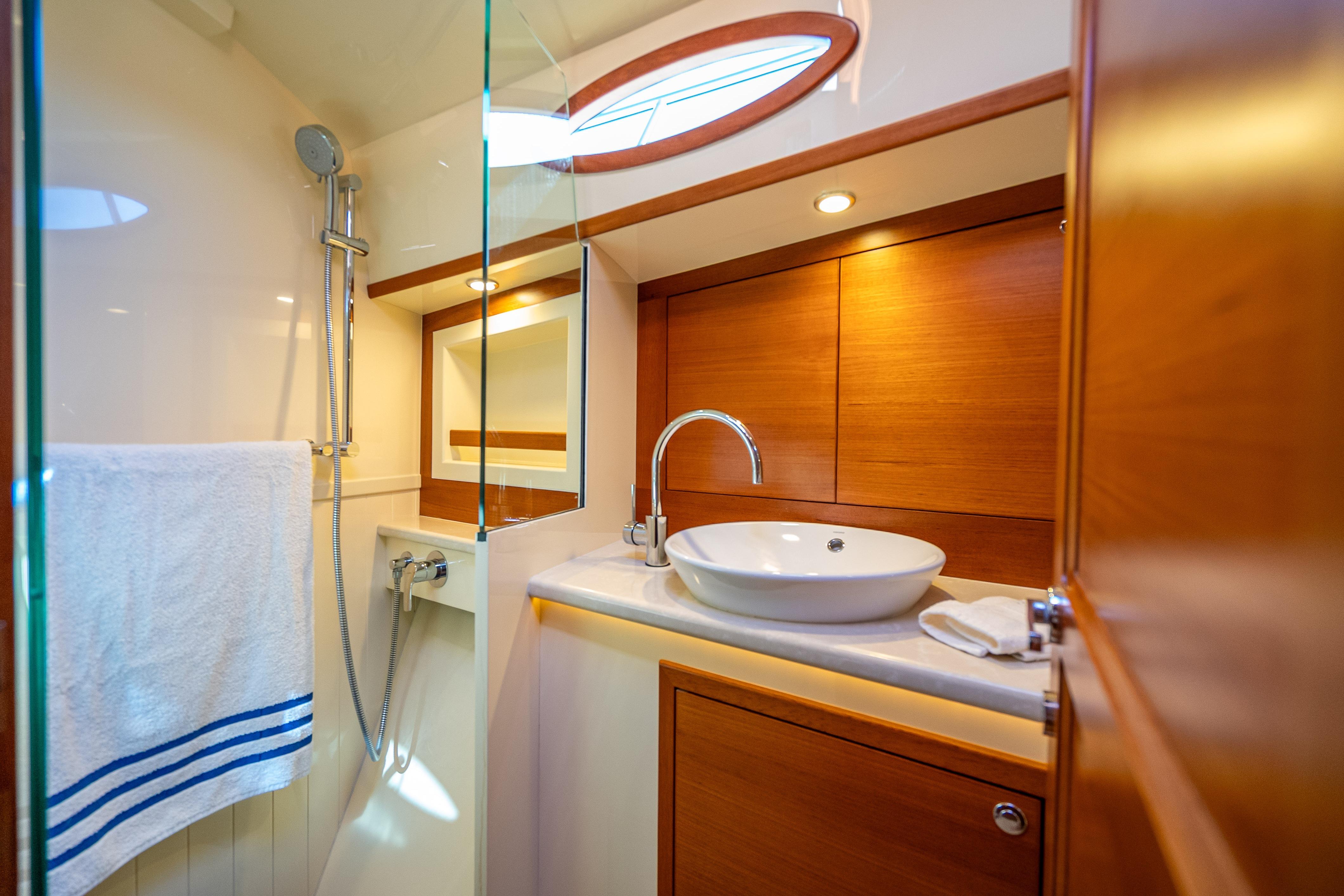 Palm Beach uses Volvo marine engines and world-class standard equipment but will build to client specifications if alternatives are preferred. All engine and ancillary equipment sit atop fully isolated with decoupled engine mounts to reduce noise and vibration. The engine room consists of loaded vinyl acoustic isolation panels, preventing noise from moving outside of the engine room into the boat’s living area. She features an extremely quiet and efficient ride!