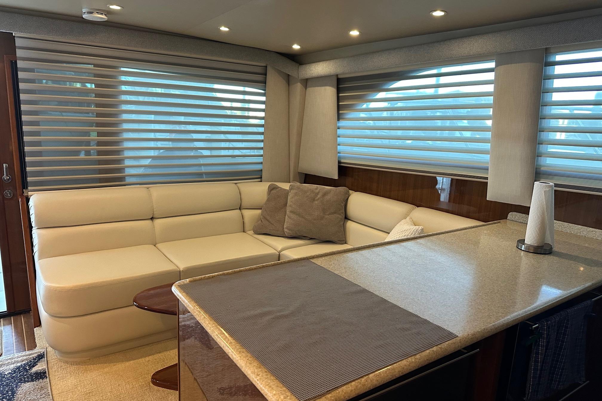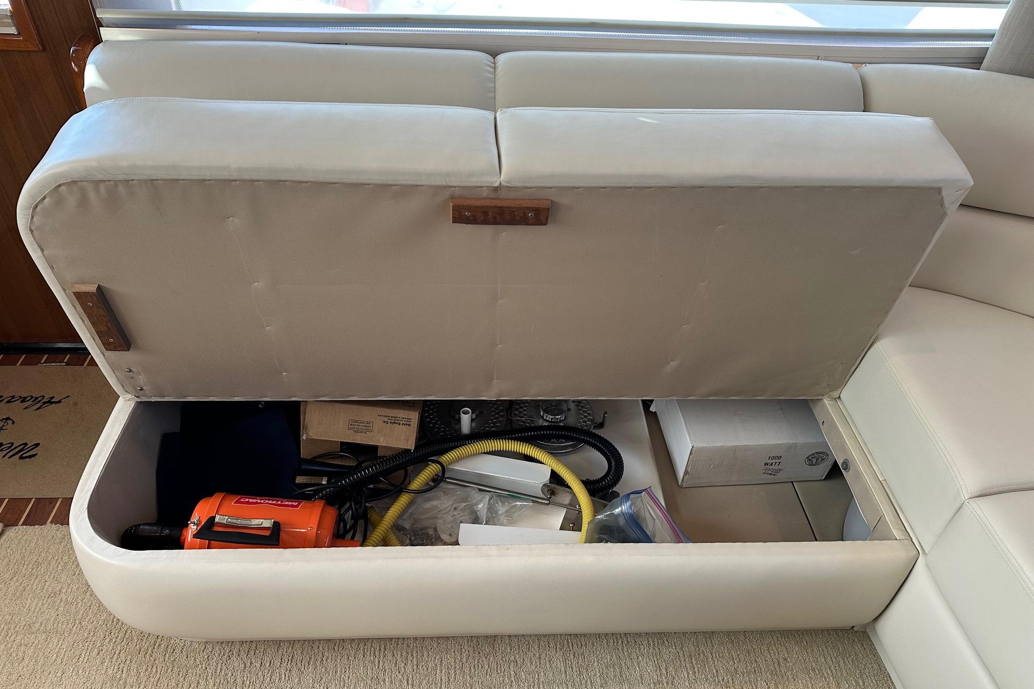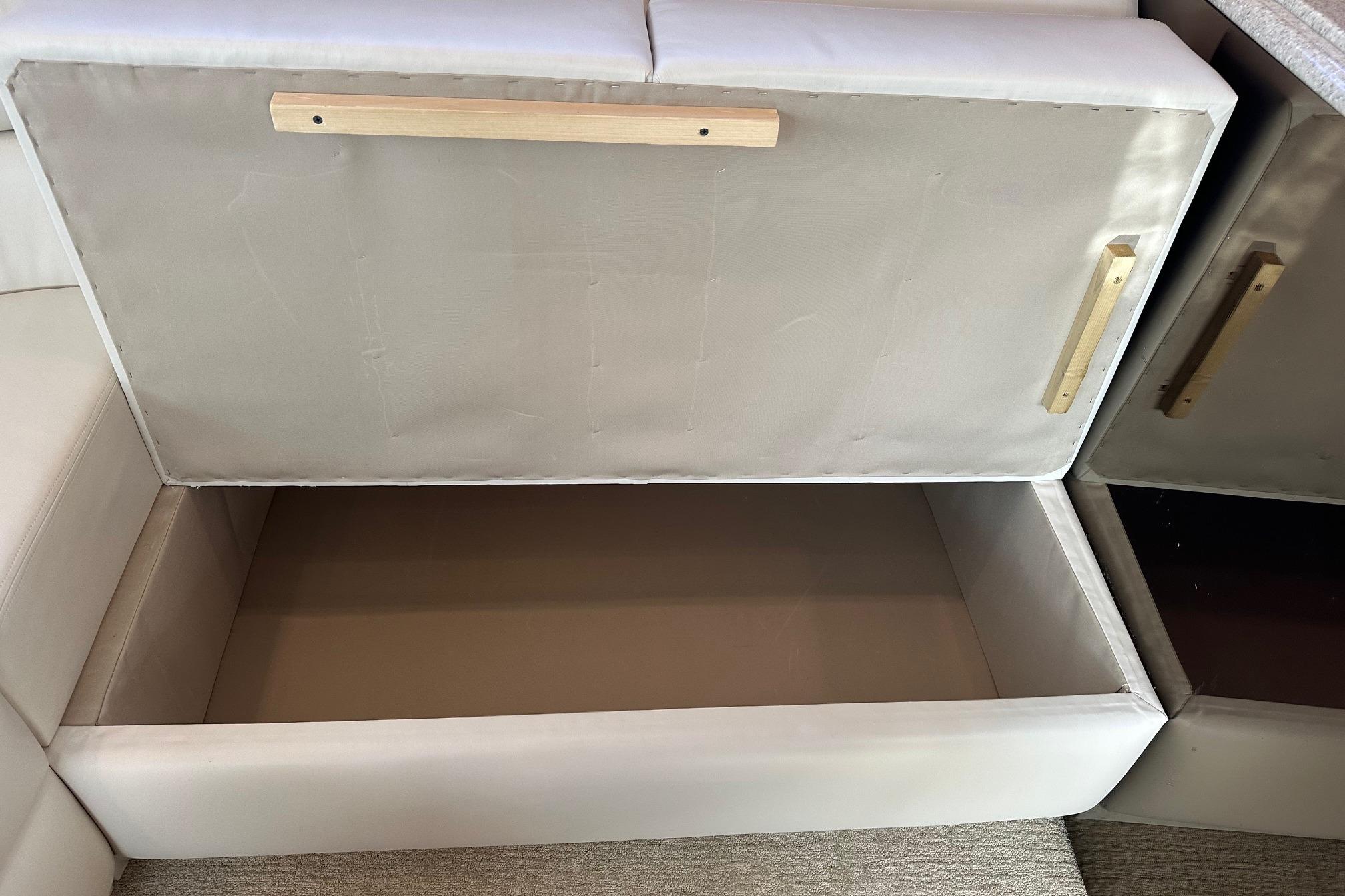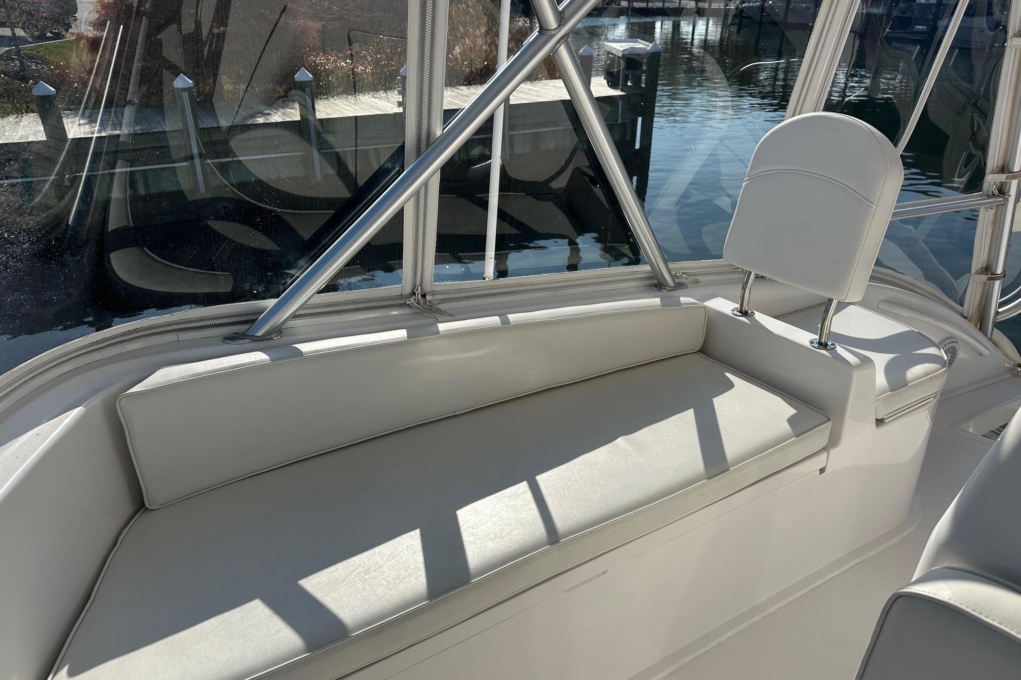 - Forward and starboard seating with storage below and cushions