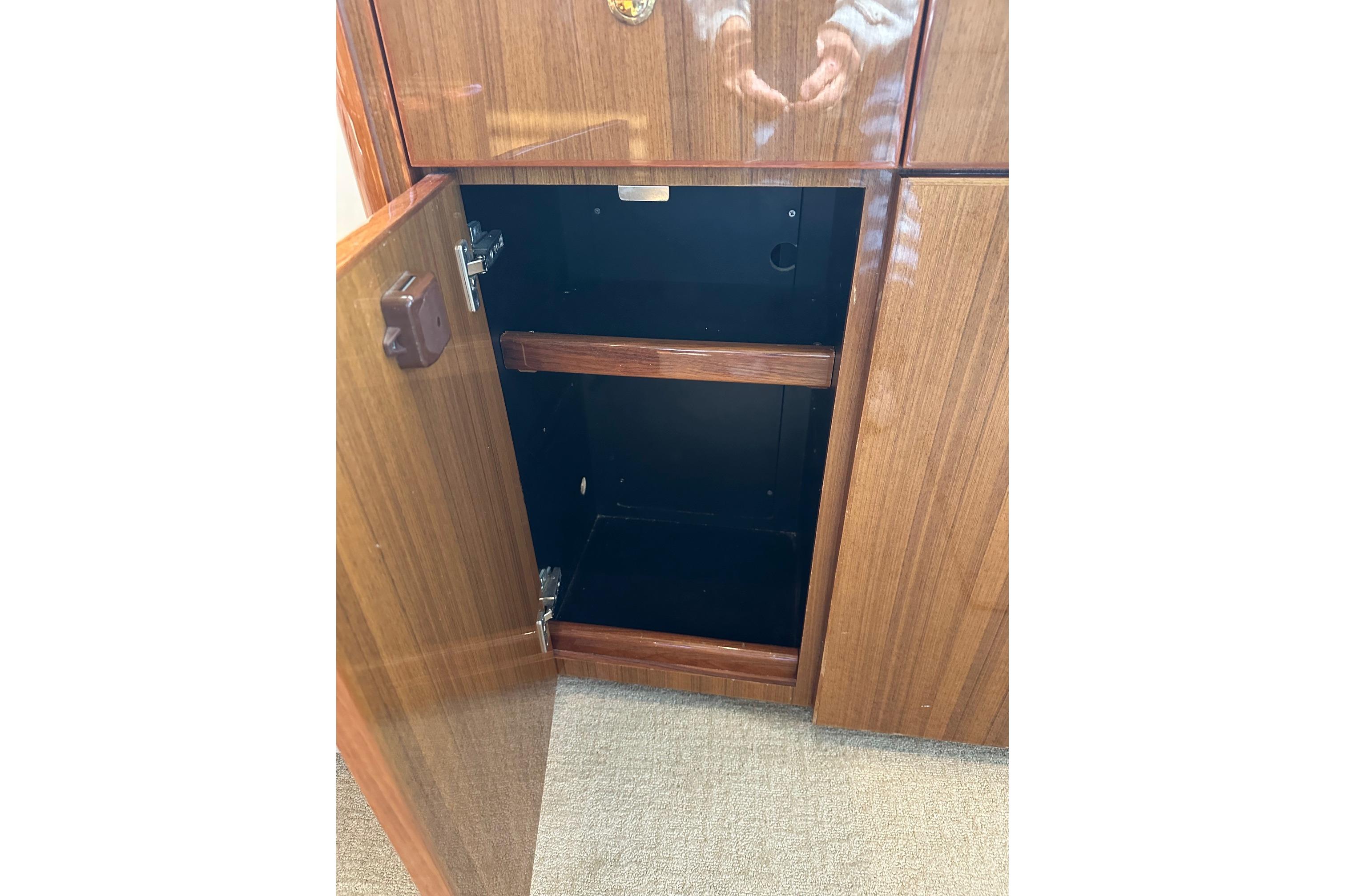 - Custom stowage behind TV with Wine Cooler