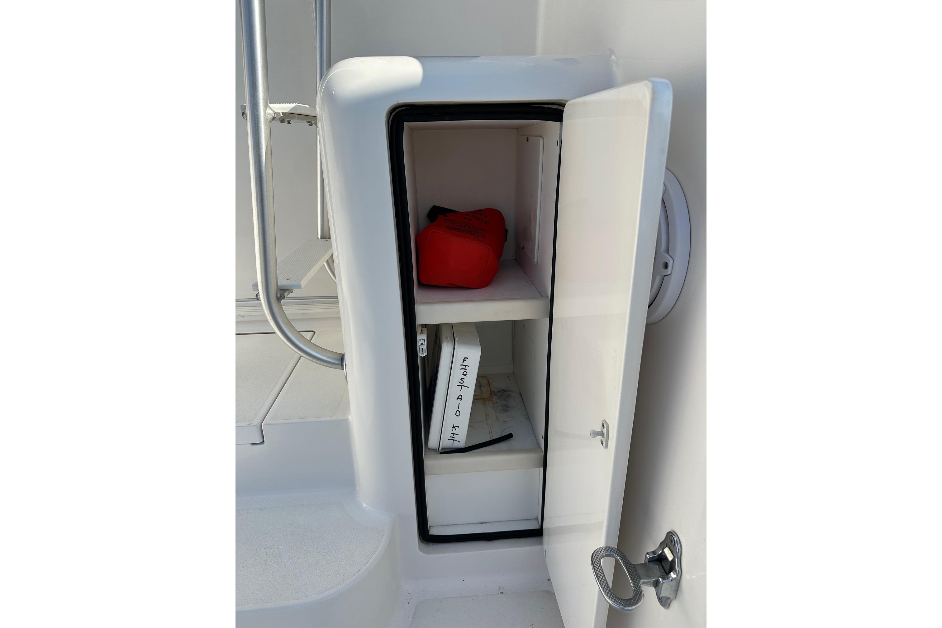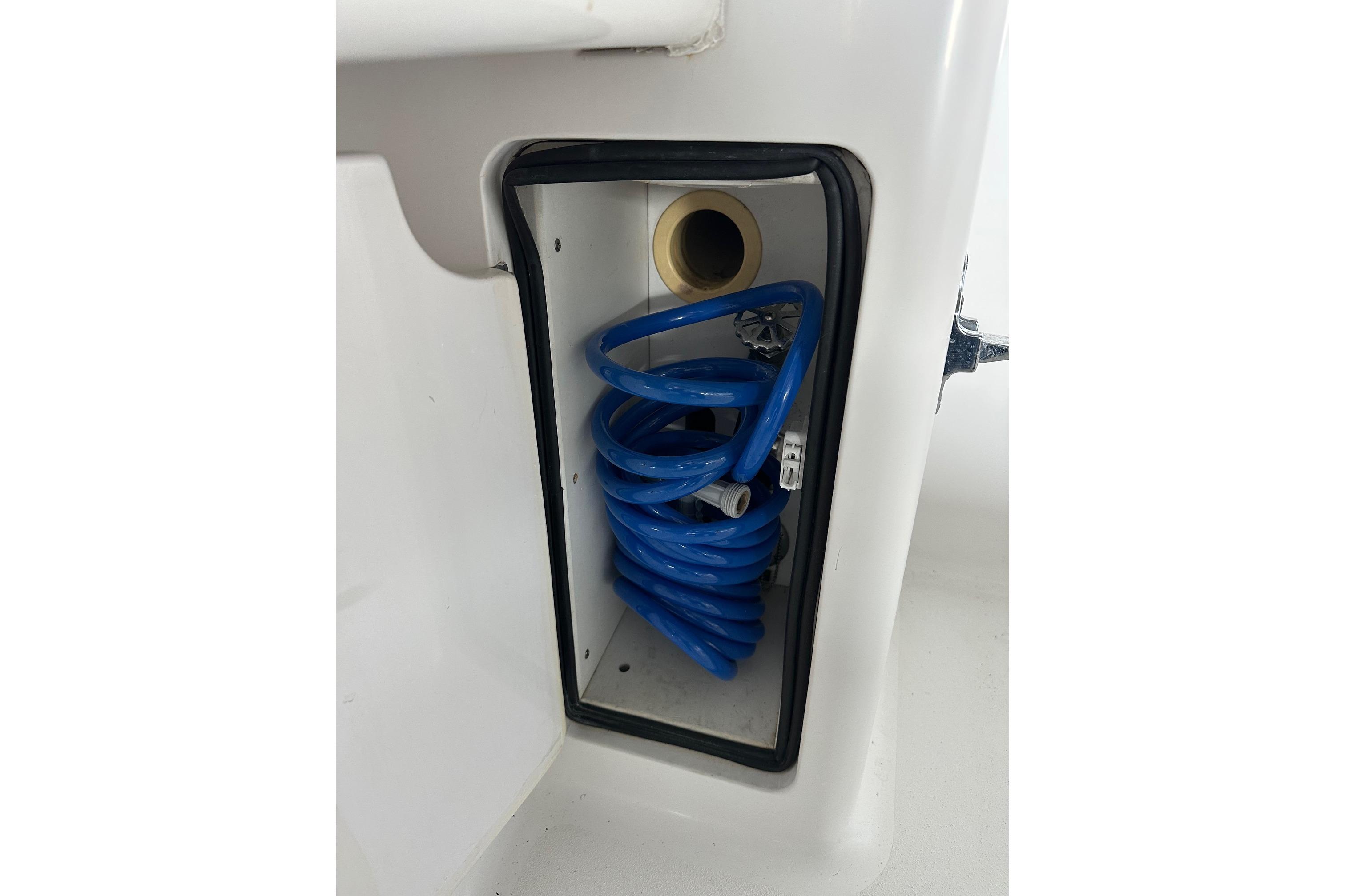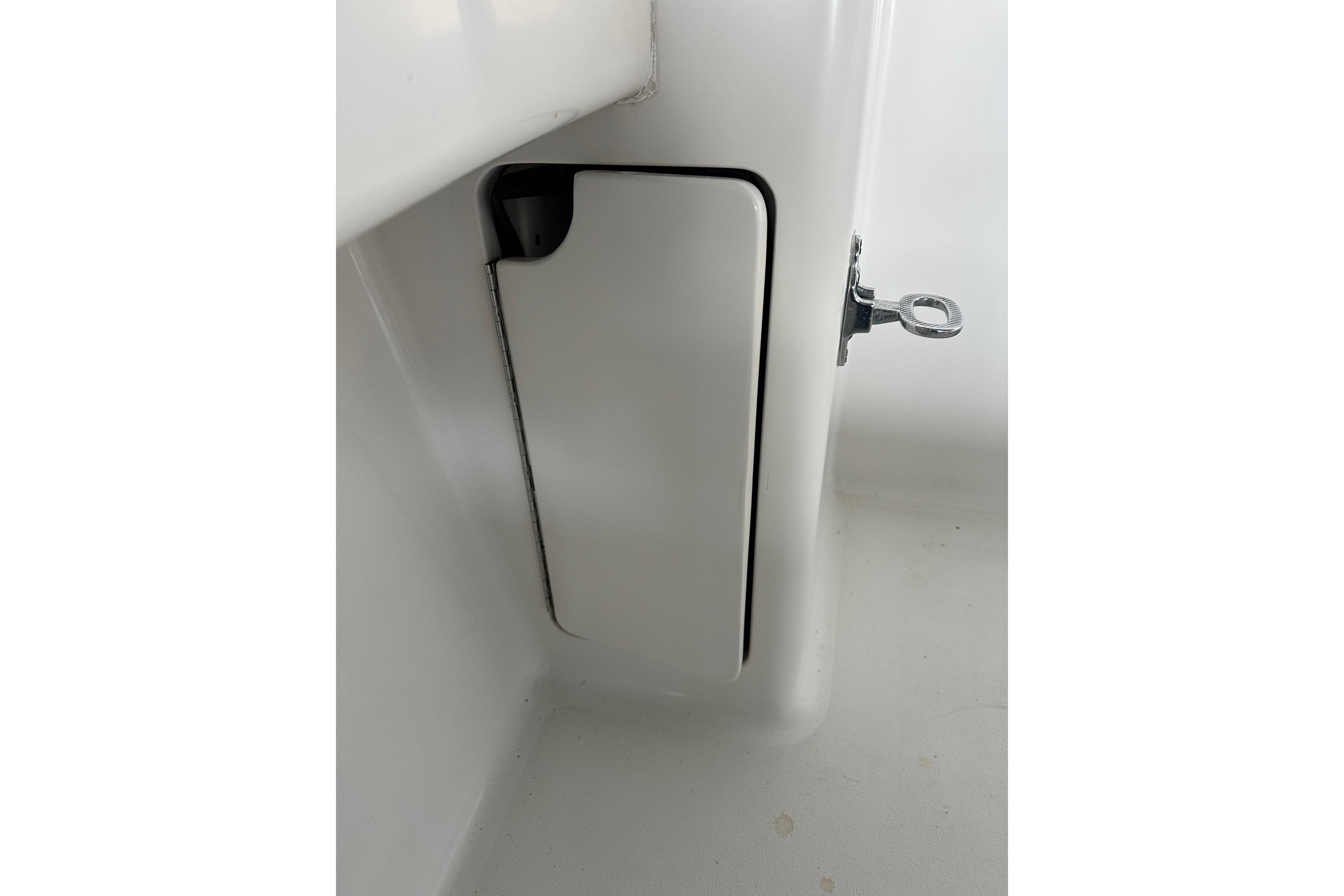 - Gaff and mop storage in recessed under gunwale cabinet