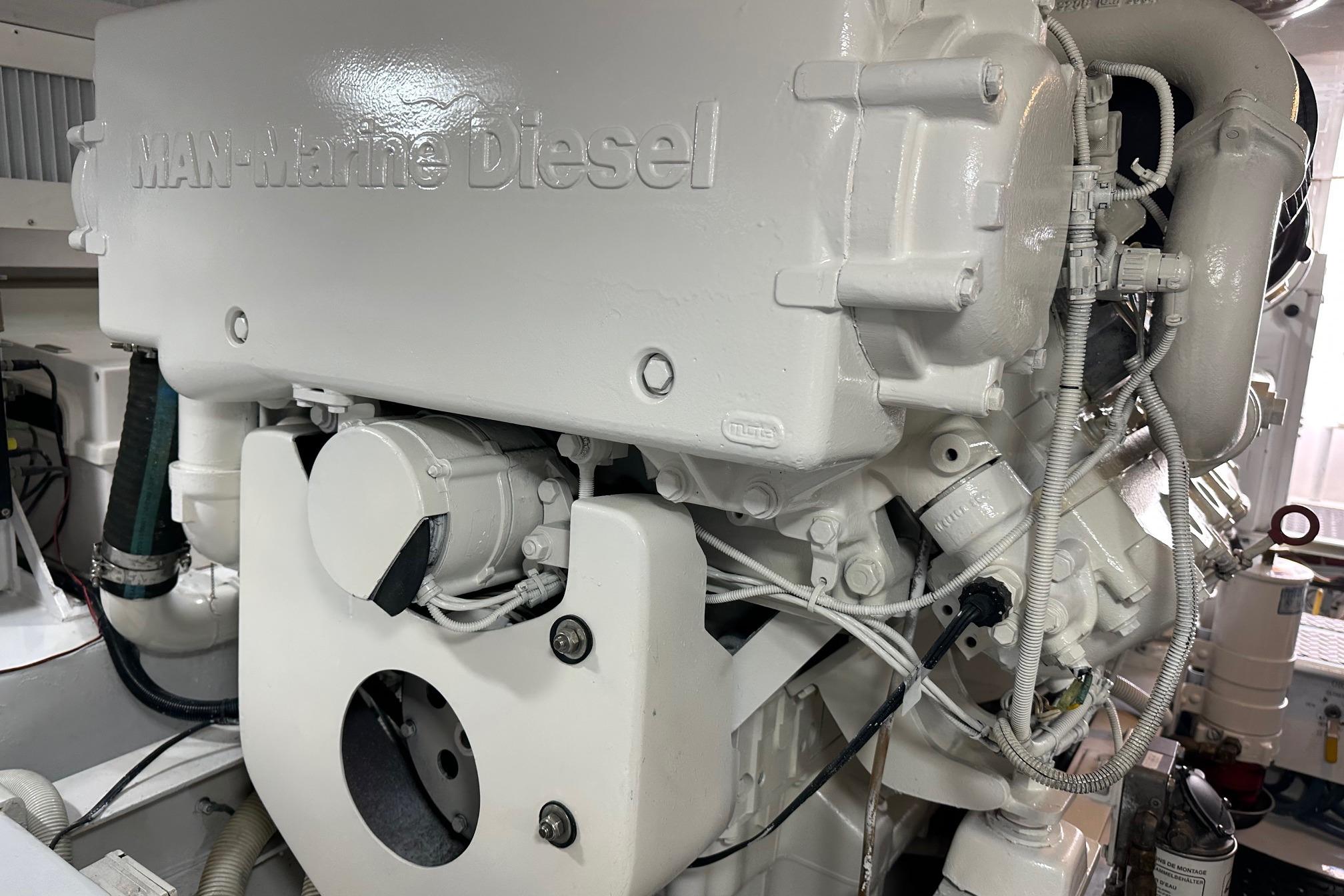 - Twin MAN Common Rail 900hp engines with 2,400 hours