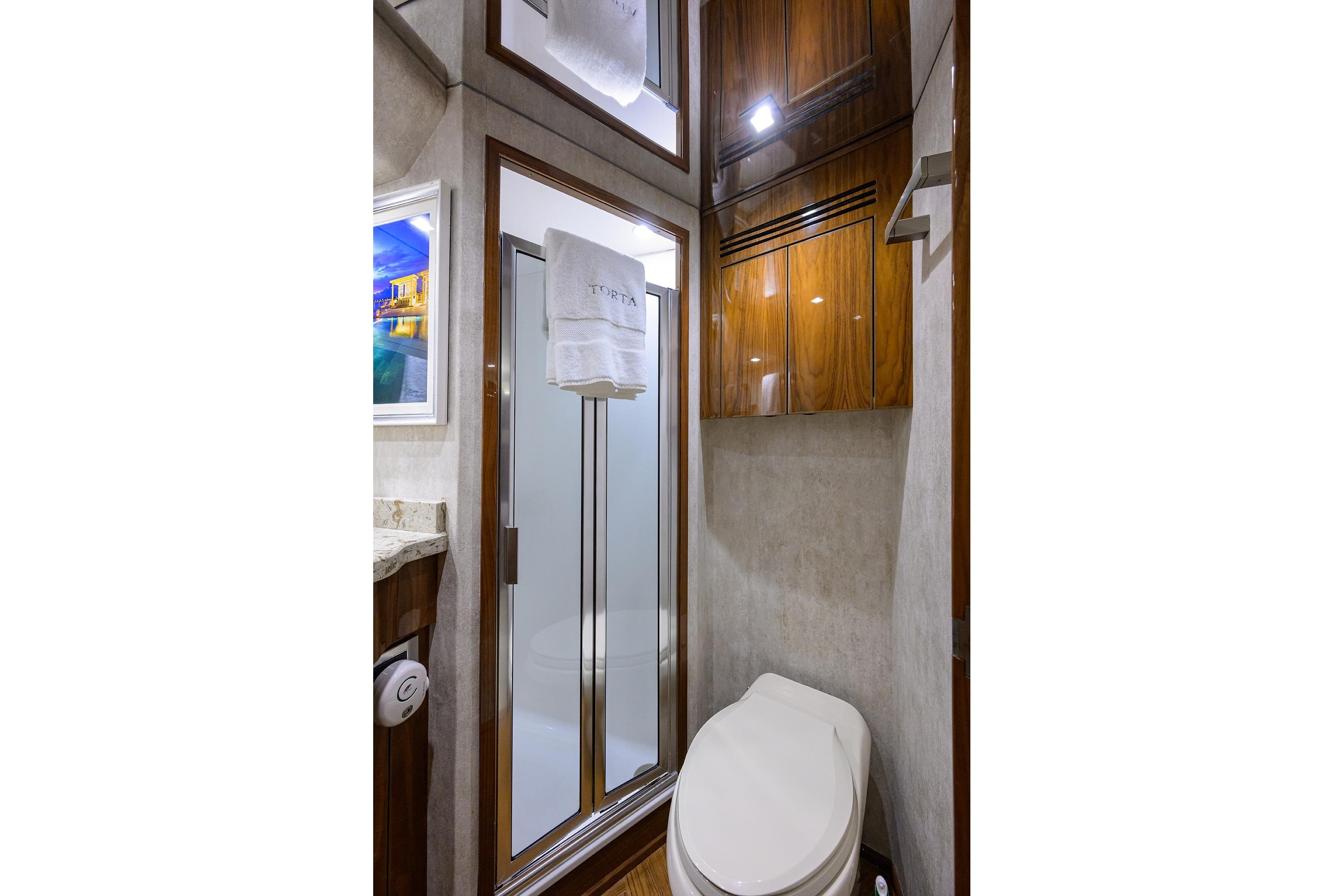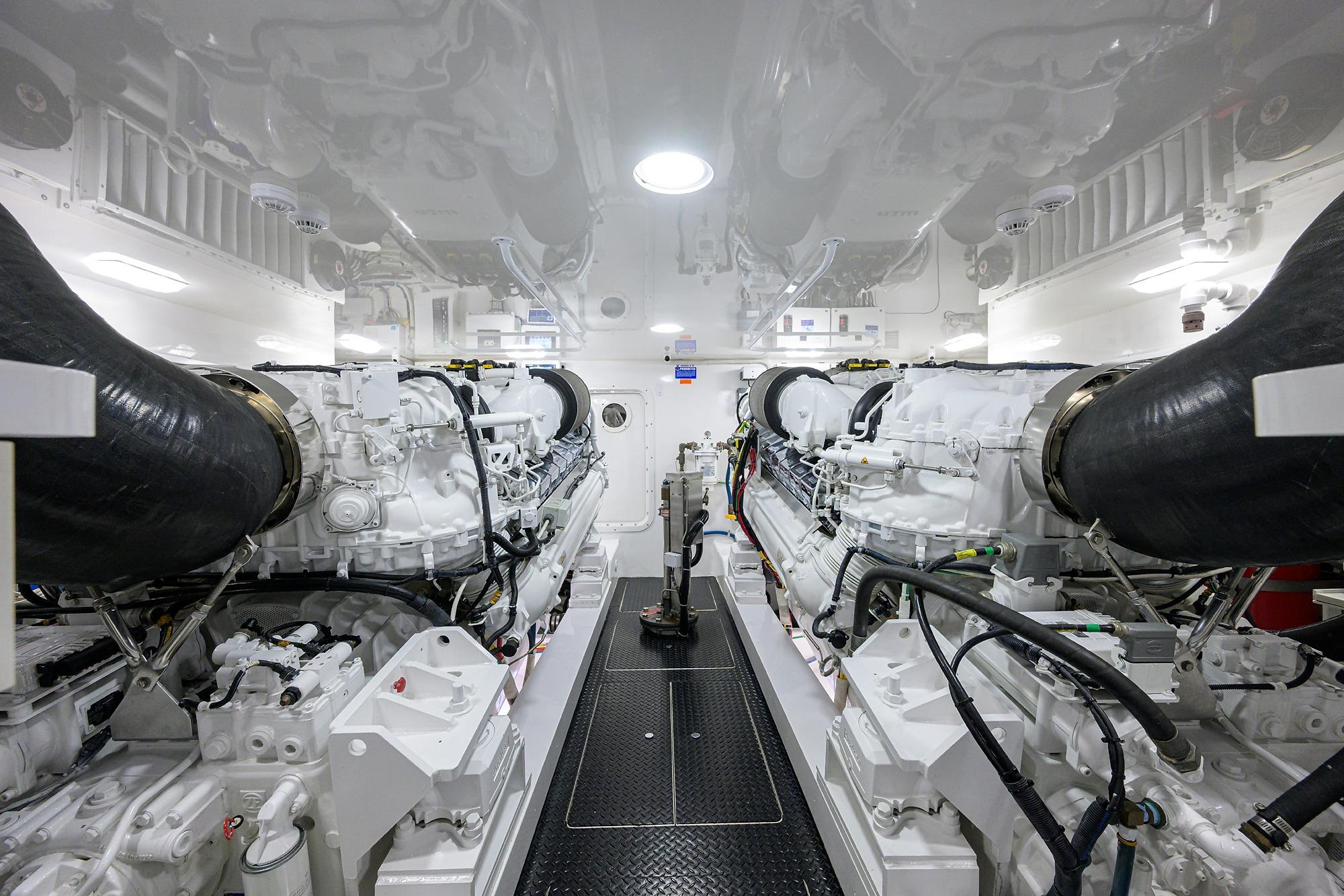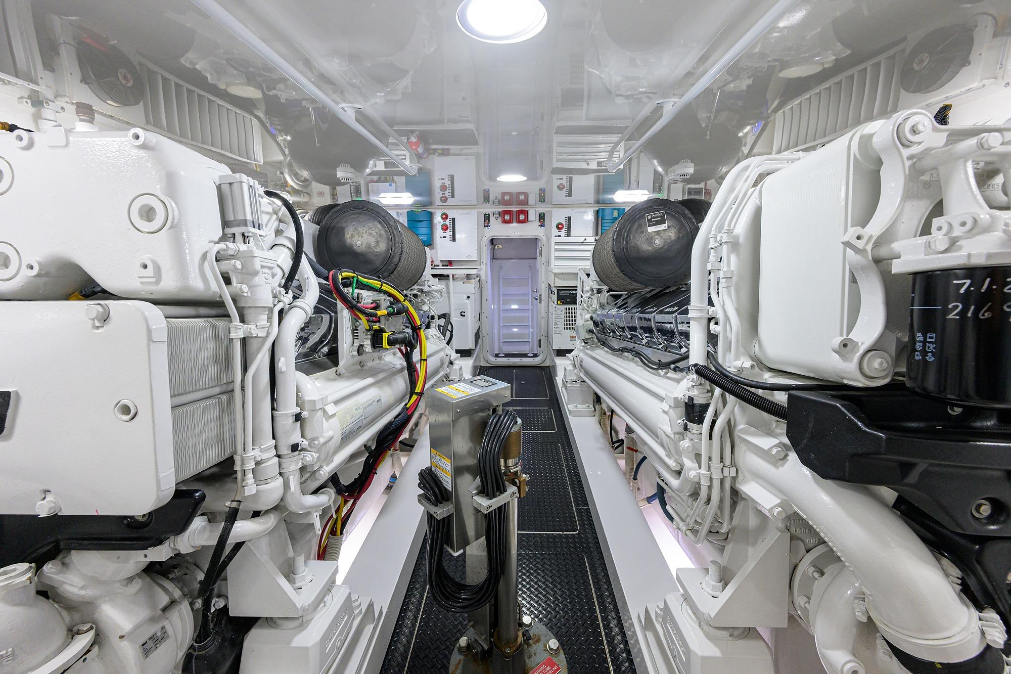 Powered by MTU Series 2000 V16 M96L 2635 MHP engines with 2516 hrs, TORTA delivers the quick acceleration, efficiency, and high-performance speed the 72EB is known for; capable of top-end speeds exceeding 40 knots with a fast, comfortable cruise in the mid-30-knot range.